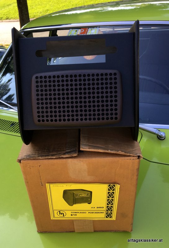 Danach war das Pickerl nur noch Formsache und der Fahrgenuss stand im Vordergrund. Ein feiner etwas skurriler Fund, tat sich auf einer Kleinanzeigenplattform auf: Eine Radiokonsole, die das Armaturenbrett mit der Mittelkonsole verbindet! Staubfrei und originalverpackt im Karton auf dem noch der ursprüngliche Verkaufspreis in Schillingen ausgepreist ist. Sowas muß man sich natürlich auf Lager legen.