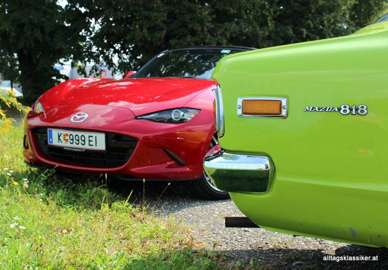 Eines der Saisonhighlights war sicher die erstmalige Teilnahme an der ARBÖ Classic, die ihren Ausgangspunkt in Admont hat. Platz 15 war der Lohn der Arbeit, die bei uns aber nie todernst genommen wird, der Spaß am Fahren in einem Klassiker in wundervoller Landschaft steht bei uns an erster Stelle. Im Zuge von Klassikerveranstaltungen, seien es Rallyes, Treffen oder Messen, trifft man immer den einen oder anderen, der sich auch an reifen japanischen Fahrzeugen erfreut. So auch bei der ARBÖ Classic, wo ich einen sehr wertvollen Kontakt knüpfen konnte. Dadurch kam ich an ein Konvolut an gebrauchten Mazda 818 Teilen und im Jahr darauf zu einem ganzen Auto.