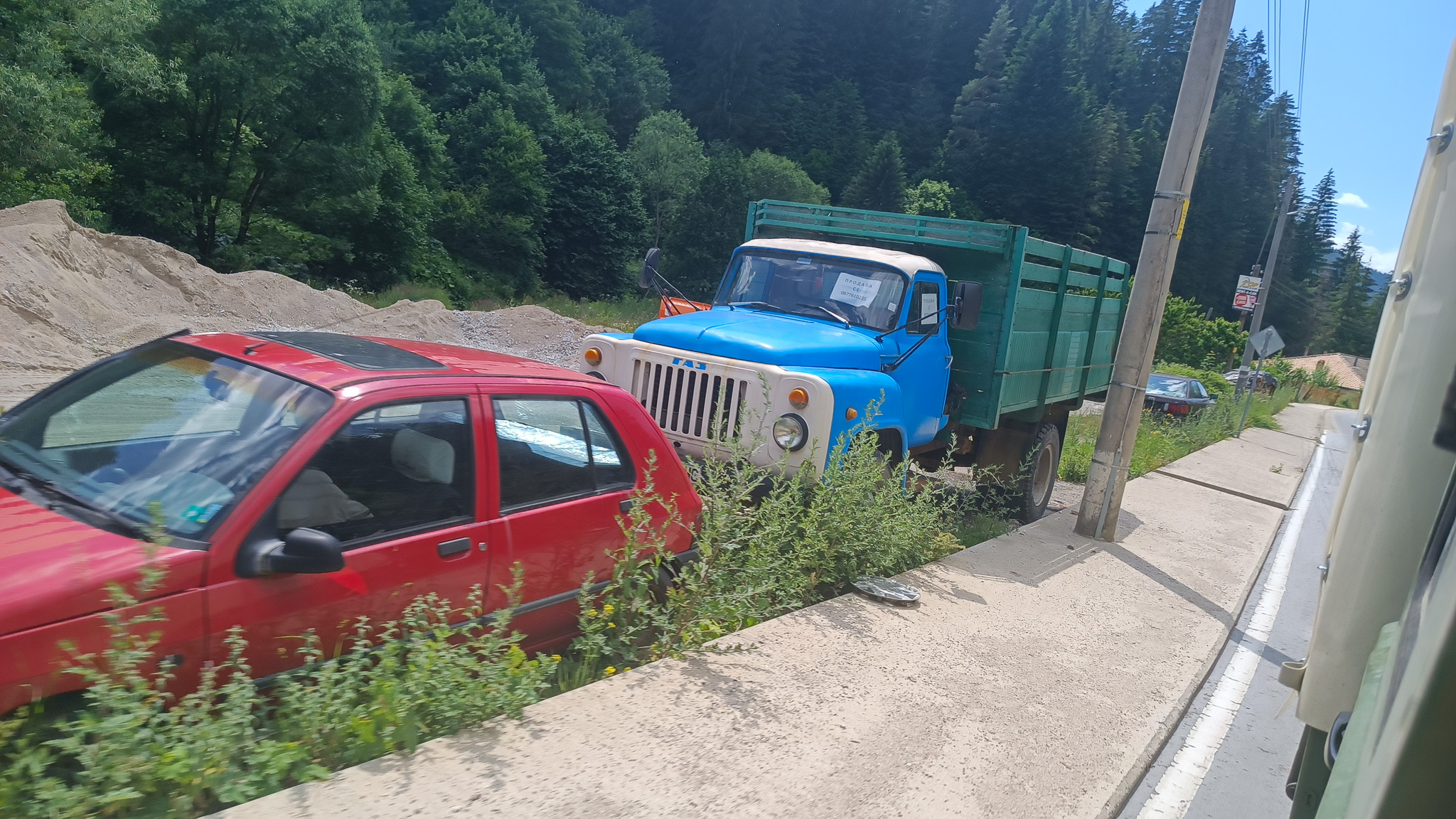 Ich habe mich zurückgehalten, aber jetzt muss ich endlich über die Fahrzeugvielfalt in Bulgarien schreiben. Es zeichnet sich die lange, intensive Freundschaft mit der Sowjetunion überall ab. Man bekommt fast die ganze Palette zu sehen, vor allem bei den LKWs, aber auch Lada und UAZ sieht man täglich.