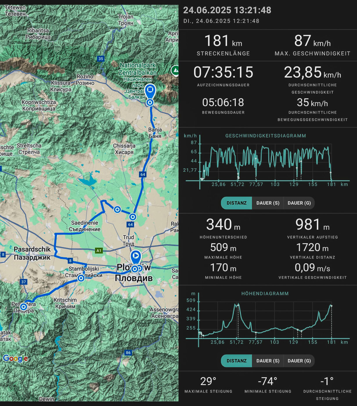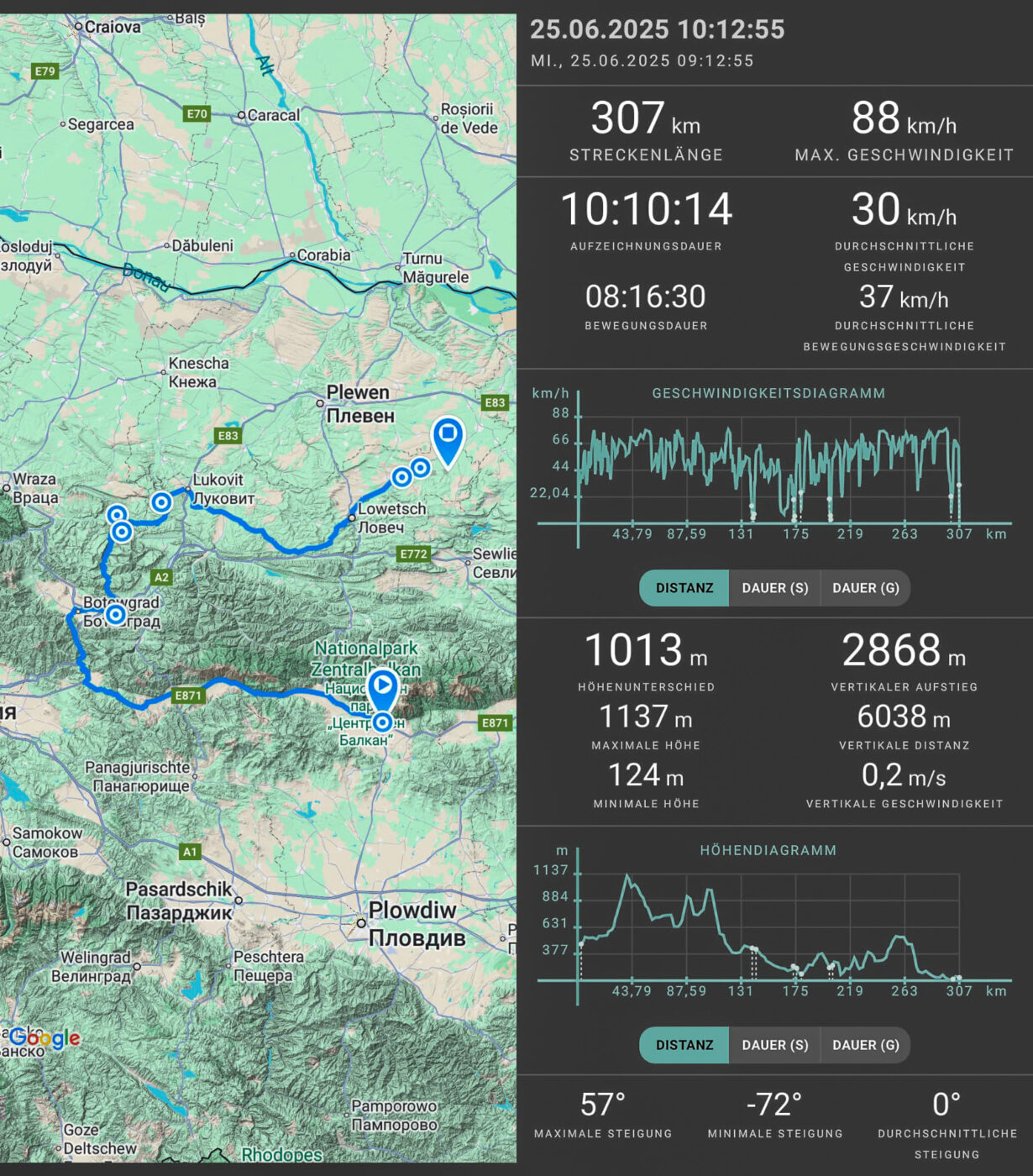 Von dort aus war nun die Frage, wohin es weitergehen sollte. Wir wollten eigentlich noch tiefer ins Gebirge, aber es war kaum möglich, eine Unterkunft für vier Leute in der Wildnis zu finden. Allerdings war das Ziel des nächsten Tages, Assenovgrad, in Reichweite, also haben wir uns gleich etwas Zeit gespart. Ich hätte gerne viel mehr in der Gegend gesehen, aber um Rechtzeitig wieder heimzukommen, Plus zwei Tage Puffer für Notfälle, muss man sowas leider in Kauf nehmen.
