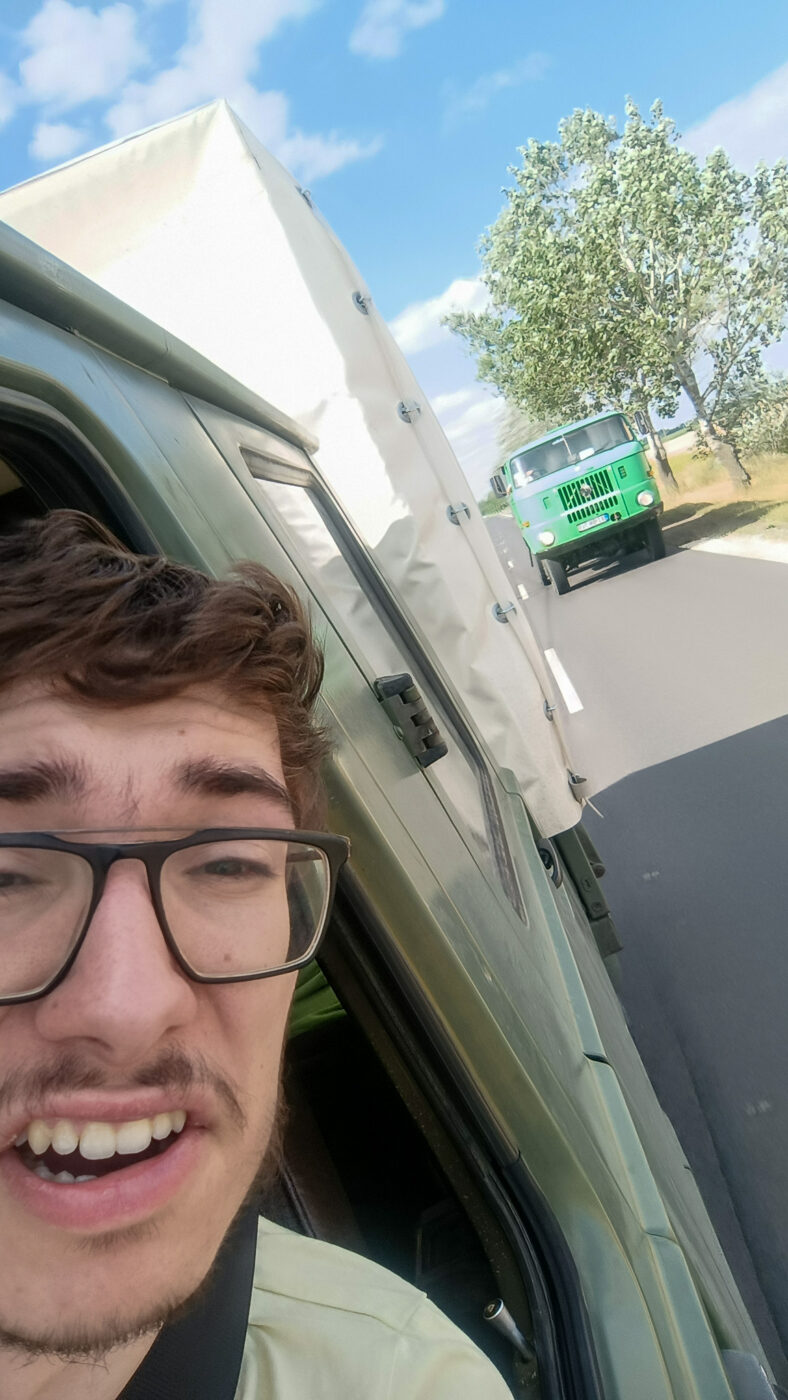 Kaum sind die ersten Hürden überwunden, folgen die nächsten. Das eigentliche End-Ziel des Tages war Szolnok, aber das hat sich schnell wieder erledigt, da wir Probleme hatten, eine Unterkunft zu finden. Nicht nur haben sich die Preise verdreifacht, bei den etwas billigeren Unterkünften wird man komplett ausgenommen: 25€ weil noch jemand hinkommen muss, 10€ weil wir so spät kommen, 10€ Service-Gebühren… Da ist man schnell über den teureren Optionen, und stornieren darf man auch nicht. Bei einer anderen Unterkunft dasselbe Spiel. Campen wollte keiner mehr, gleich wie ein weiteres Staubläuse-Motel um den doppelten Preis. Bevor wir mehr Geld verlieren, war uns klar, dass es wohl nur eine Option gibt, mit der alle zufrieden sind: bis nach Hause durchfahren. Es war absolut möglich, würde aber sowohl uns, als auch den LT an seine Grenzen treiben. Zudem mussten alle Zwischenziele gestrichen werden, auch wenn es nicht viele waren. Ein letzter Kaufland-Besuch, und dann ging die lange Reise los. Von Ungarn kann ich deshalb kaum berichten, außer über die wirklich außerirdische Sprache und dieses Bild vom Überholen eines IFA W50.