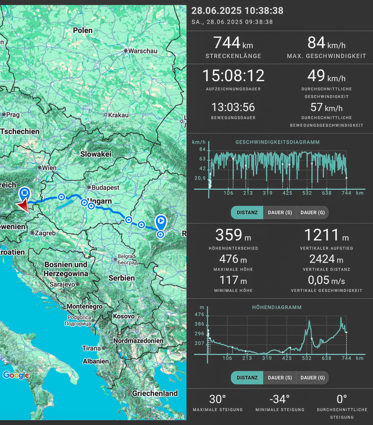 Was ich noch nicht erwähnt habe, ist, dass ich in Plovdiv aus Versehen den Hauptschalter und somit das Licht angelassen habe, und wir unser Starthilfegerät gebraucht haben. Seitdem hatten wir nach längerem Stehen öfters Startprobleme und jetzt wollte er gar nicht mehr ohne Starthilfe anspringen. Wir haben es gerade noch zu einer Tankstelle geschafft, und mit noch einer Starthilfe zu einem kleinen Auto-Shop. Dort konnten wir eine neue Batterie kaufen, einbauen und testen lassen, sowie die alte Batterie entsorgen lassen. Seitdem gibt es keine solche Probleme mehr.