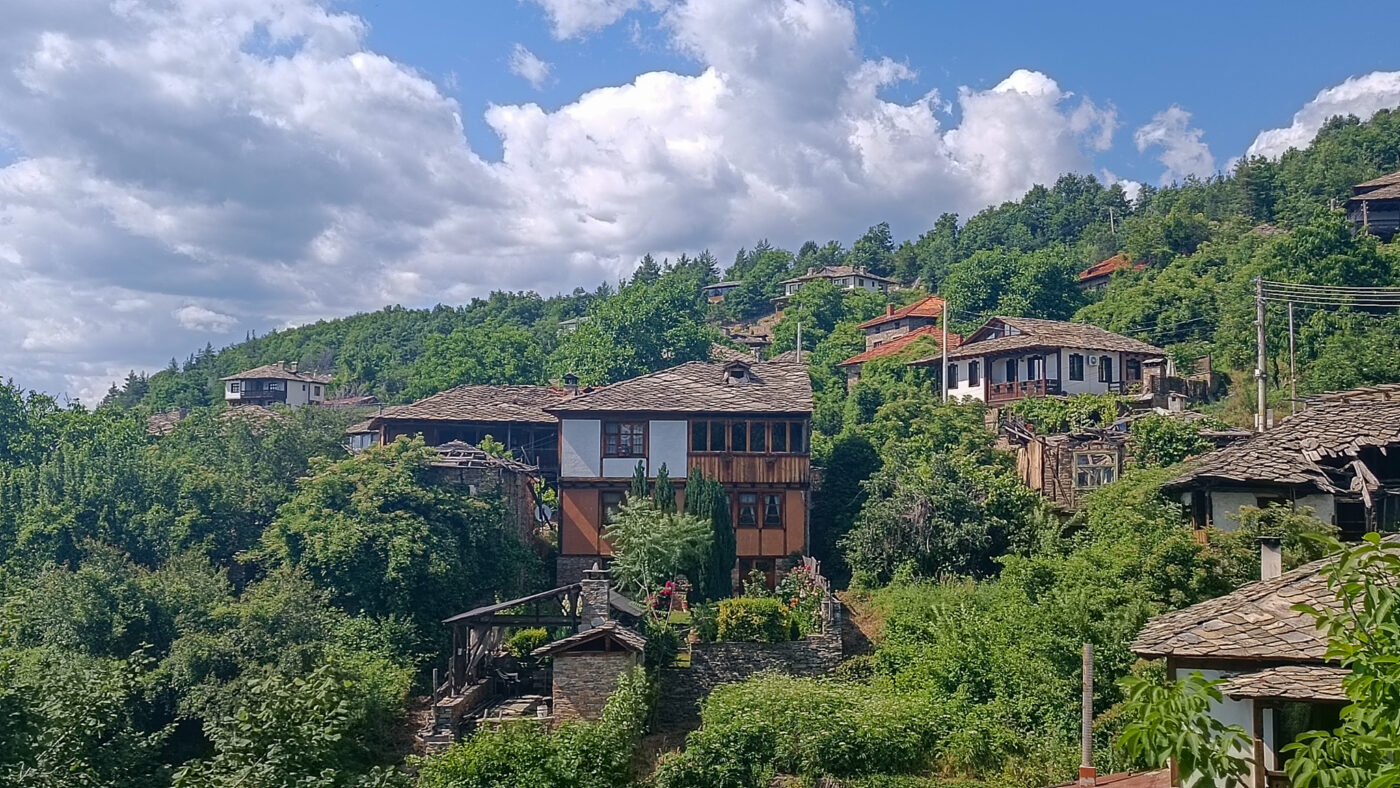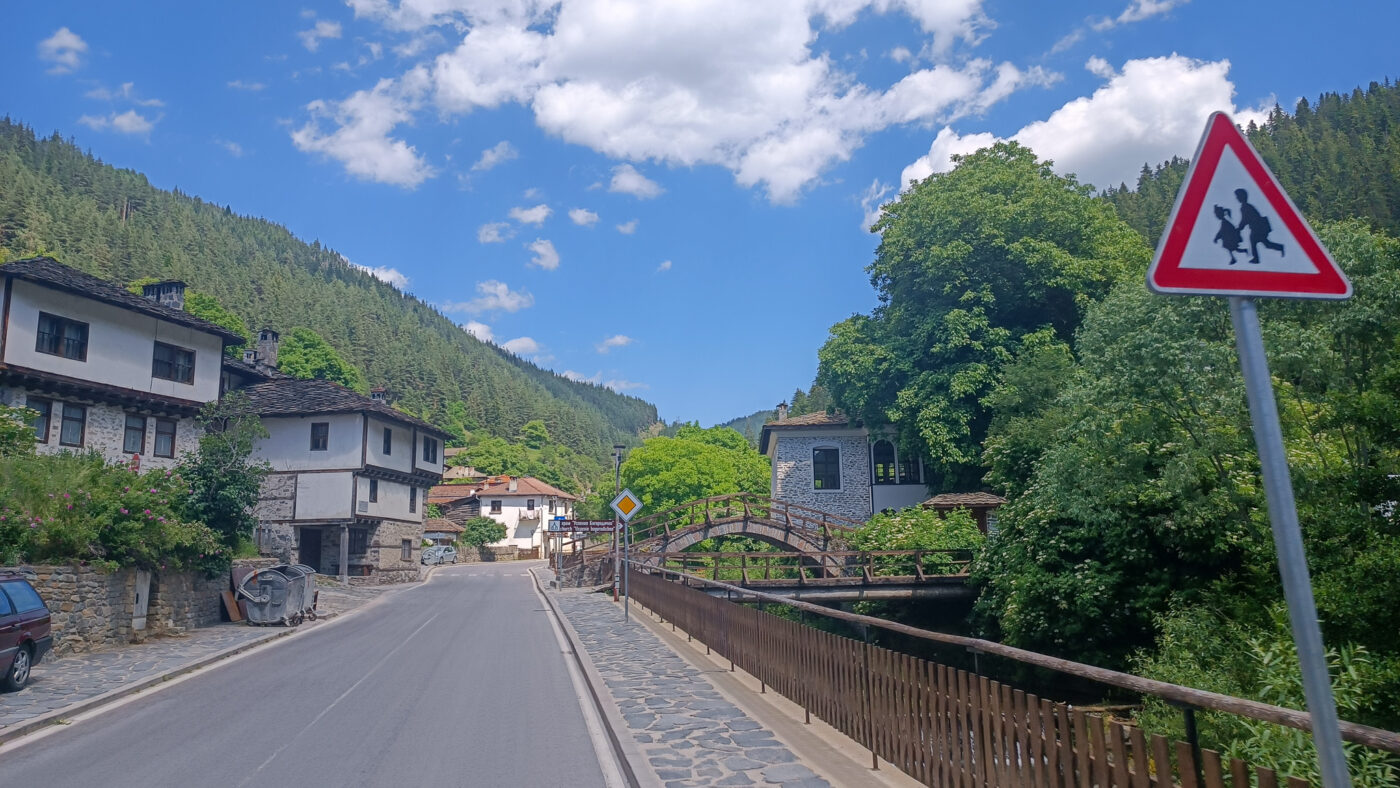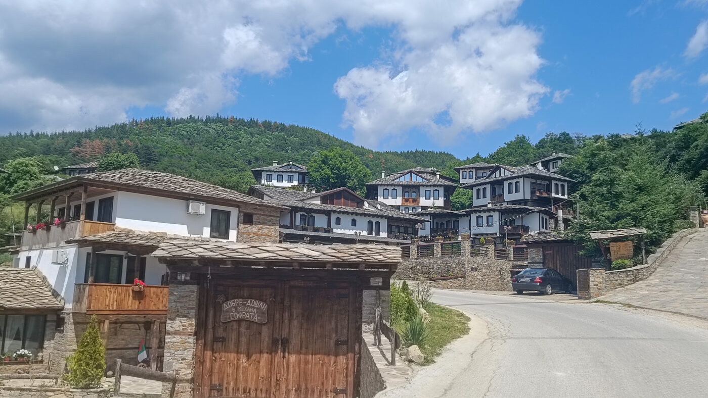 Die nächste Hürde war die Fahrt „über“ den Pirin, einer der höchsten Berge Bulgariens. Tatsächlich sind wir in Albanien und Montenegro schon durch Extremeres gefahren, allerdings sind wir auch über einen niedrigen Teil des Berges gefahren. Auf der anderen Seite, ein Gebirge weiter, befindet sich das kleine Dorf Leshten, welches im traditionellen Stil gebaut wurde. Dort haben wir auch traditionell gegessen.