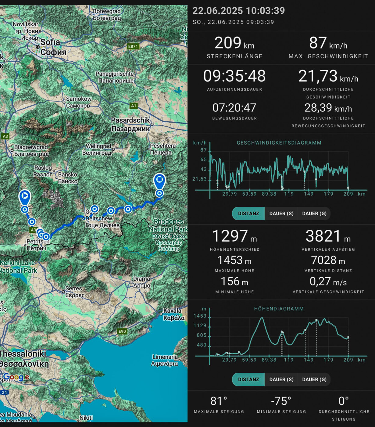 Eine sehr erfolgreiche Woche ist vergangen. Wir waren voll und ganz darauf eingestellt, irgendwo liegen zu bleiben, aber der mächtige 75PS Sechszylinder macht einfach weiter, als wäre es nichts. Jedenfalls waren wir endlich in Bulgarien, und auf in Richtung Rhodopen, nach einem weiteren Kaufland-Frühstück. Ausnahmsweise haben wir uns eine Vignette gekauft, nicht weil es Autobahnen gibt, sondern weil jede Hauptstraße eine verlangt. Kaum ist Google Maps wieder an, verfahren wir uns, und zwar massiv.