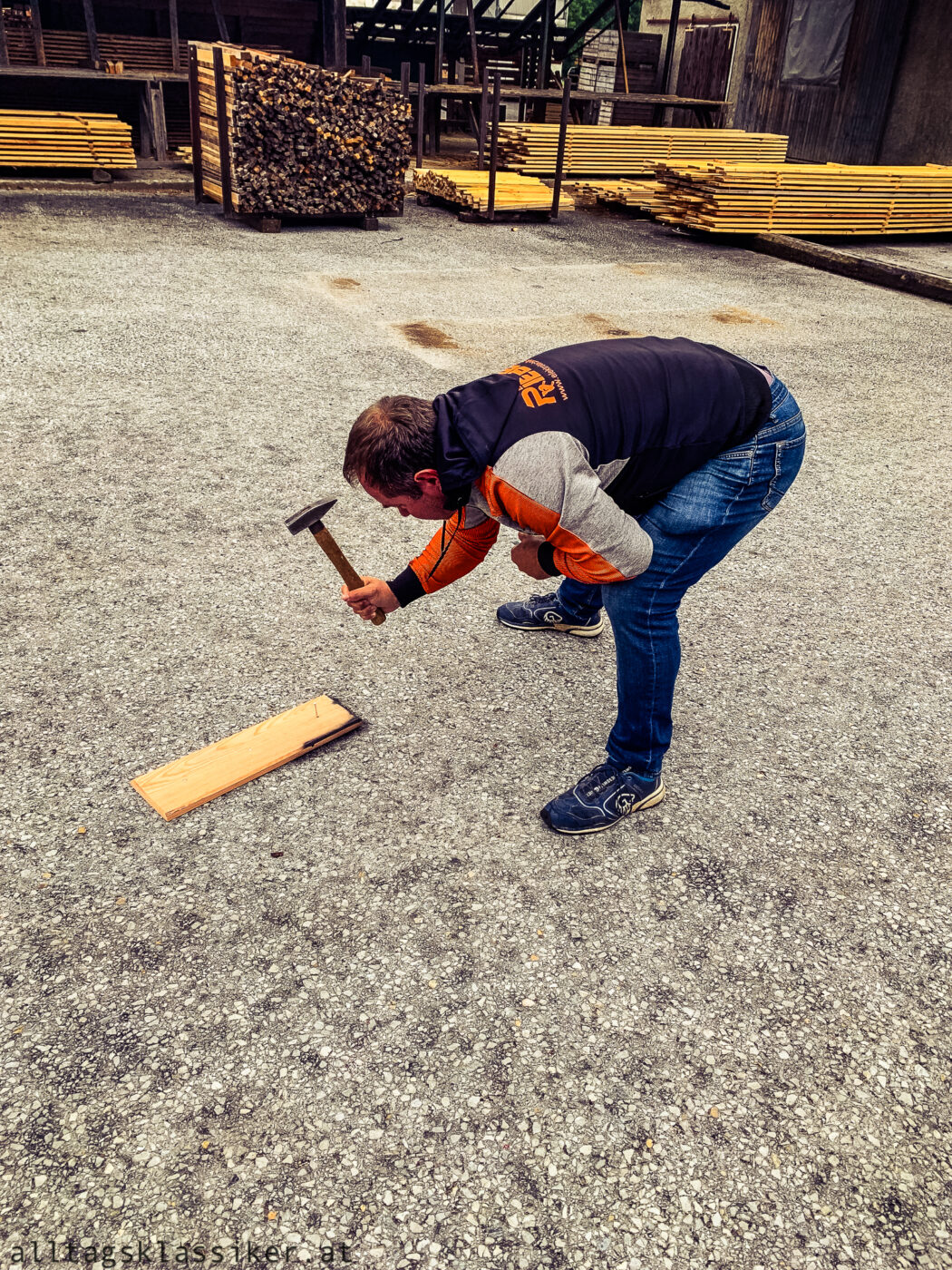 So konnte ich immerhin, wie schon 2022, meine Unterstützung am Sonntag bei zwei Sonderprüfungen der Weizer Oldtimer Genusstour anbieten. Nach einem frühen Start in den Tag, war bereits um 8h Treffpunkt bei der ersten SP des Tages in Oberdorf bei Stadl, beim Sägewerk von Stefan Farkas. Dort erwartete die Teilnehmer die erste Challenge des Tages.