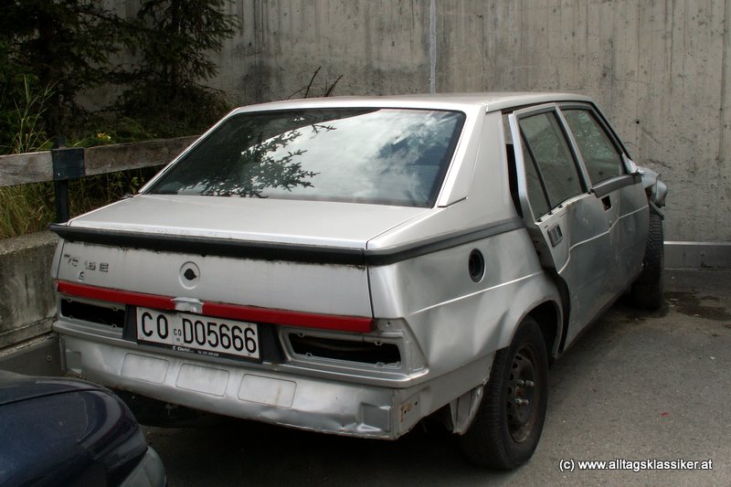 die von 1985 bis 1992 produzierte mittelklasselimousine, trägt die bezeichnung 75 – anlässlich des 75 jährigen firmenjubiläums von alfa romeo.