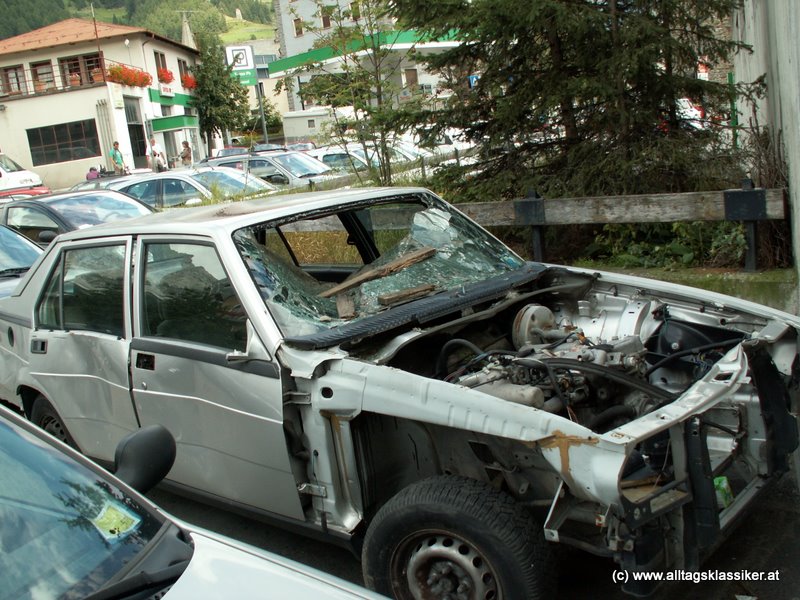 dieser bedauernswerte 75er ist mir letzten sommer im hinterhof einer kleinen tankstelle iin bozen aufgefallen, wo noch mehrere verlebte fahrzeuge ihren lebensabend fristeten, herzerreissend für jeden alfisti.