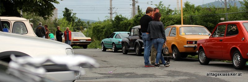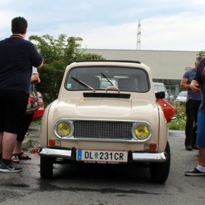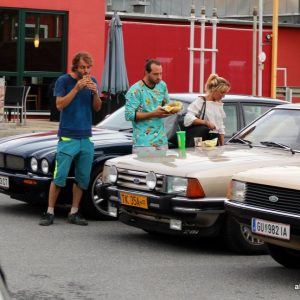 Die Besucher (auch aus dem Burgenland und Niederösterreich) ließen sich vom unbeständigen Wetter aber nicht abhalten und holten ihre Garagenlieblinge raus und cruisten zu unserem Parkplatztreffen. Dort konnte man dann eintauchen in tiefe Gespräche über die Klassiker vor Ort, noch nicht so weit gediehene Projekte die noch in Garagen, Scheunen oder Schuppen schlummern und dort auf ihre Wiederauferstehung warten. Ersatzteilbezugstipps wurden ausgetauscht, ebenso wie rar begehrte Teile, die man gerne an “bedürftige“ Klassiker freunde weitergab.