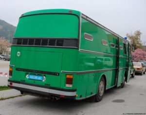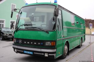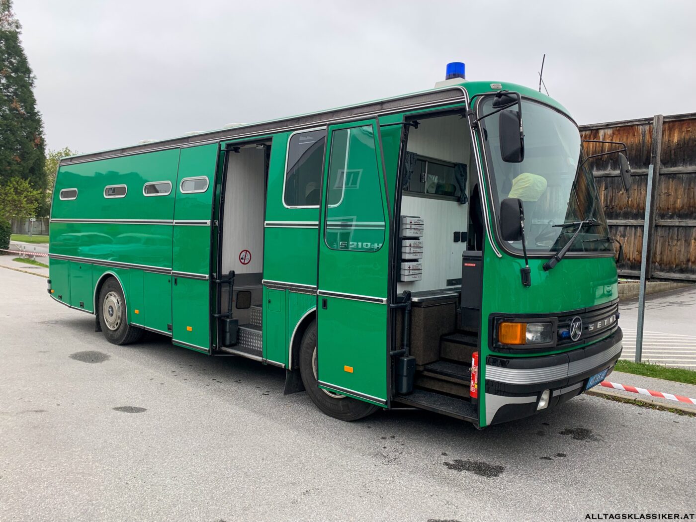 Der eindeutige Star des benzingeschwängerten Nachmittags in Köflach, war aber eindeutig die Grüne Minna. Die umgangssprachliche Bezeichnung meint einen Arrestantentransporter der Polizei. Vor Ort war ein Setra S210 H, ein Bus aus dem Jahr 1987 mit über 500.000 km am Buckel, der zum Gefangenentransporter umgewandelt wurde. Die grüne Minna war noch vor wenigen Wochen im Dienst der Republik Österreich.