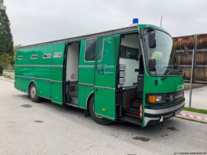 Zur Überstellung von Gefangenen, in die übers ganze Land verteilten Haftanstalten. Der Setra wurde neulich aus dem aktiven Dienst ausgemustert und im Dorotheum versteigert. Eine neue Heimat hat sie bei einem Sammler im Bezirk Voitsberg gefunden. Bei den Besuchern des Meet&Greet sorgte sie für helles Erstaunen und so mancher hätte nicht gedacht, dass er mal eine Gefangenentransporterzelle von Innen sehen würde.