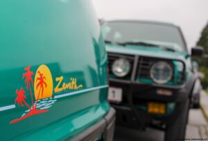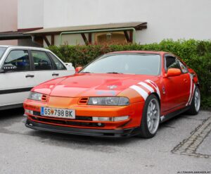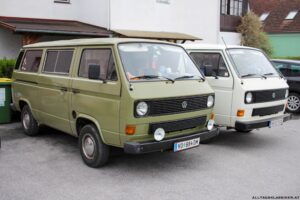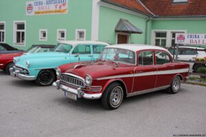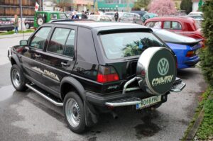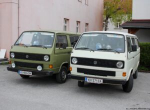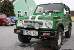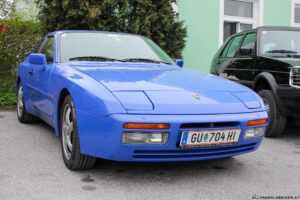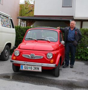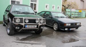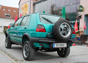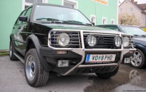 Bunt gemischt, bot der Besucherparkplatz jede Menge Abwechslung durch die automobile Palette. Vom altehrwürdigen Benz, über einen Puch 500, amerikanisches Altblech in Form von Ford Mustang und De Soto, Suzuki SJ und Honda Prelude aus dem Land der aufgehenden Sonne. Deutschland war natürlich stark vertreten mit einem Porsche 944 S2, gleich zwei Exemplaren vom Country Golf, Audi Cabrio, Opel Rekord E2, T3 und T4 Bussen. Italien entsandt ein Coupe Fiat, Frankreich einen Peugeot 106 Zenith, Schweden einen Volvo 440.
