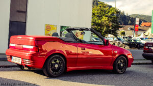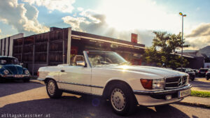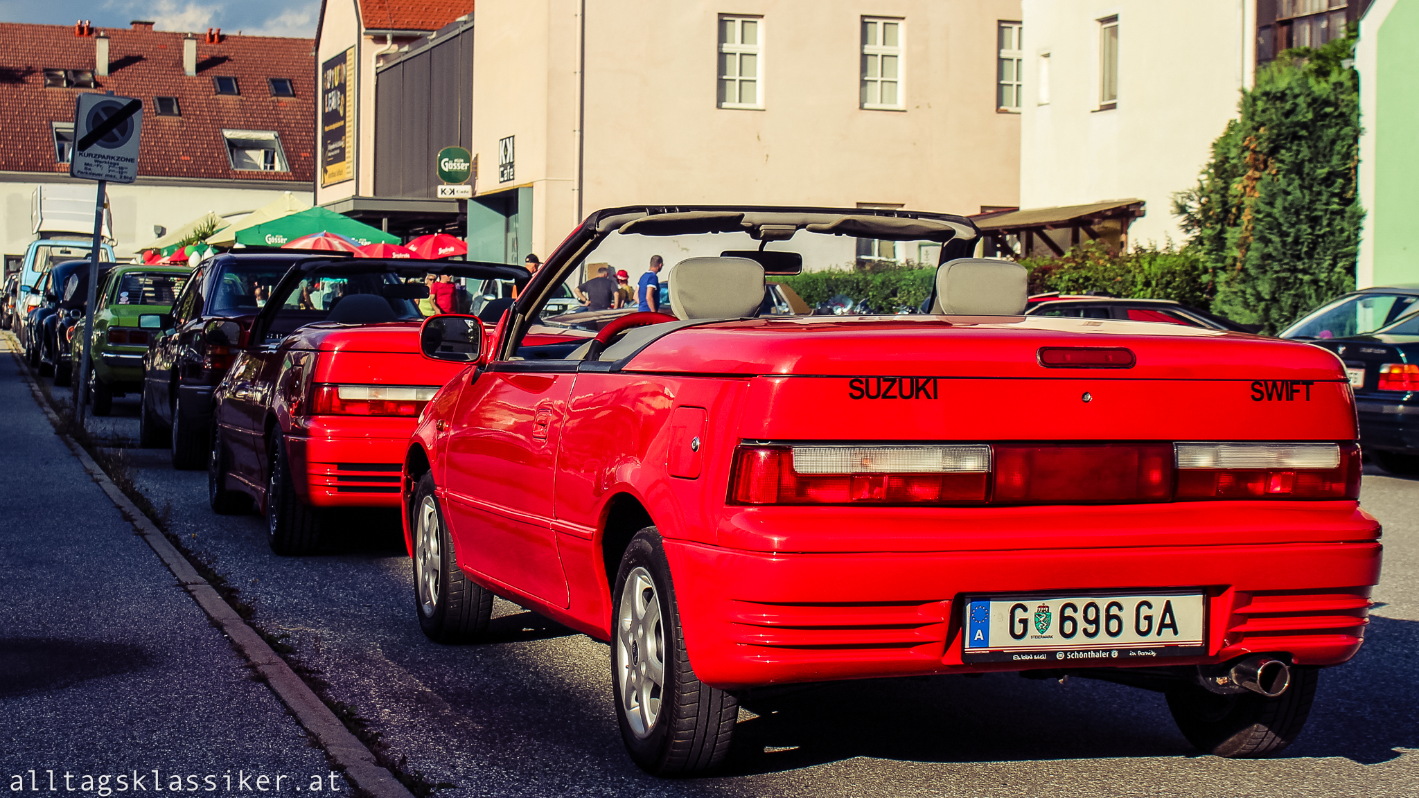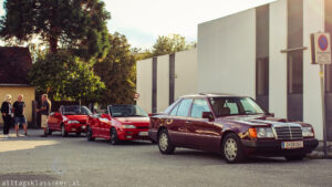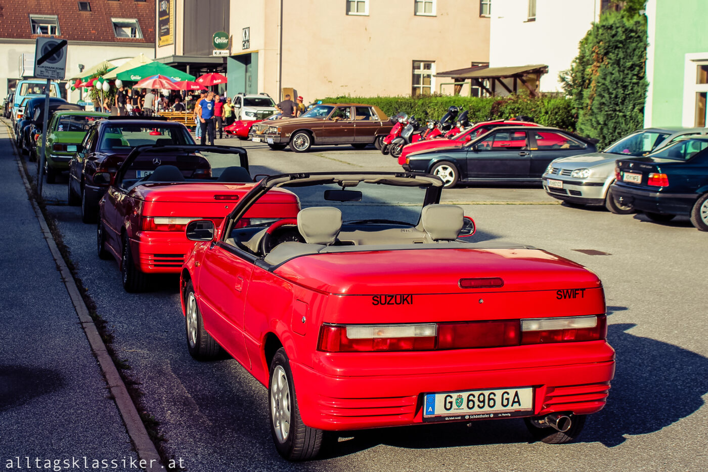 Einige Oldtimer und Youngtimer haben sich wieder eingefunden, ideal also um sich ein wenig unter die Besucher zu mischen und Blech zu reden. Hier komme ich mehr zum Quatschen, wenn die Besucheranzahl überschaubar ist und ich genieße es. Genau das ist es auch, was mich nach wie vor so fasziniert an den Fahrzeugen und ihren Besitzern: Die Geschichten dahinter! Es gibt immer etwas Interessantes, Kurioses, oder Amüsantes zum Erwerb oder Besitz des rollenden Kulturgutes zu erzählen. Sei es der E36 M3, der eben frisch aus Spanien importiert wurde, oder wie eines von zwei anwesenden Suzuki SwiftCabrios, das frech dem Händler weggekauft wurde, obwohl es schon auf seinem Schotterplatz stand!