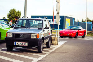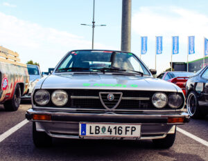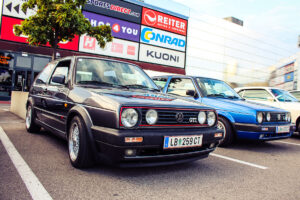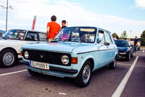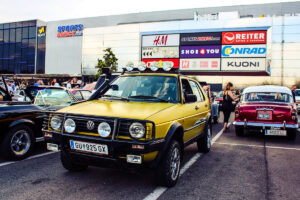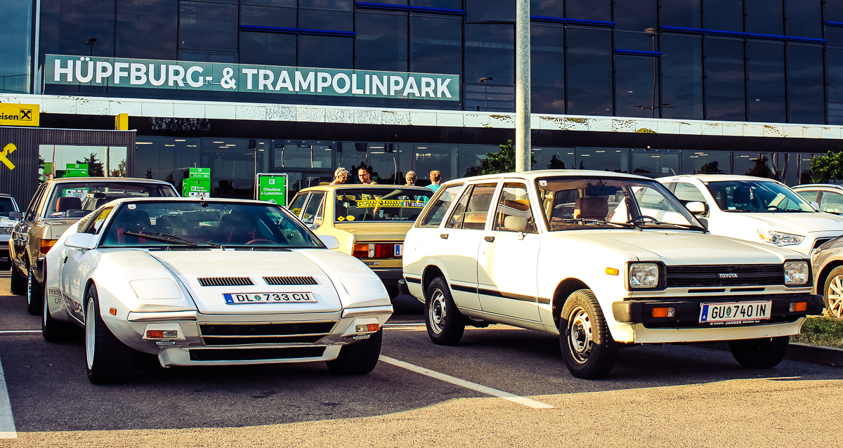 Dementsprechend bunt gefächert waren wie immer die Teilnehmerfahrzeuge. Vom Puch 500 Kleinstwagen aus Grazer Produktion, über einen Citroën AX First, Subaru 700, VW Polo GT, Mini Clubman Estate, Volkswagen Scirocco, Opel Rekord, Mercedes W123 und W124, dicken Amischiffen, Pickups, T3 Syncro Bus- auch aus Grazer Fertigung, reichlich schwedische Volvos und Saab´, italienische Grazien von Alfa Romeo bis zum De Tomaso Pantera, Zastava GTL 55, englische Roadster, allerlei aus japanischer Produktion bis zum DeLorean.