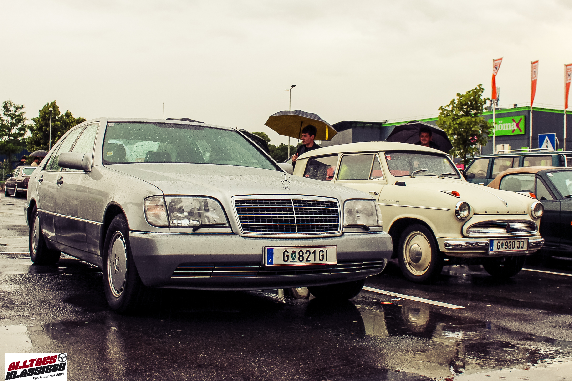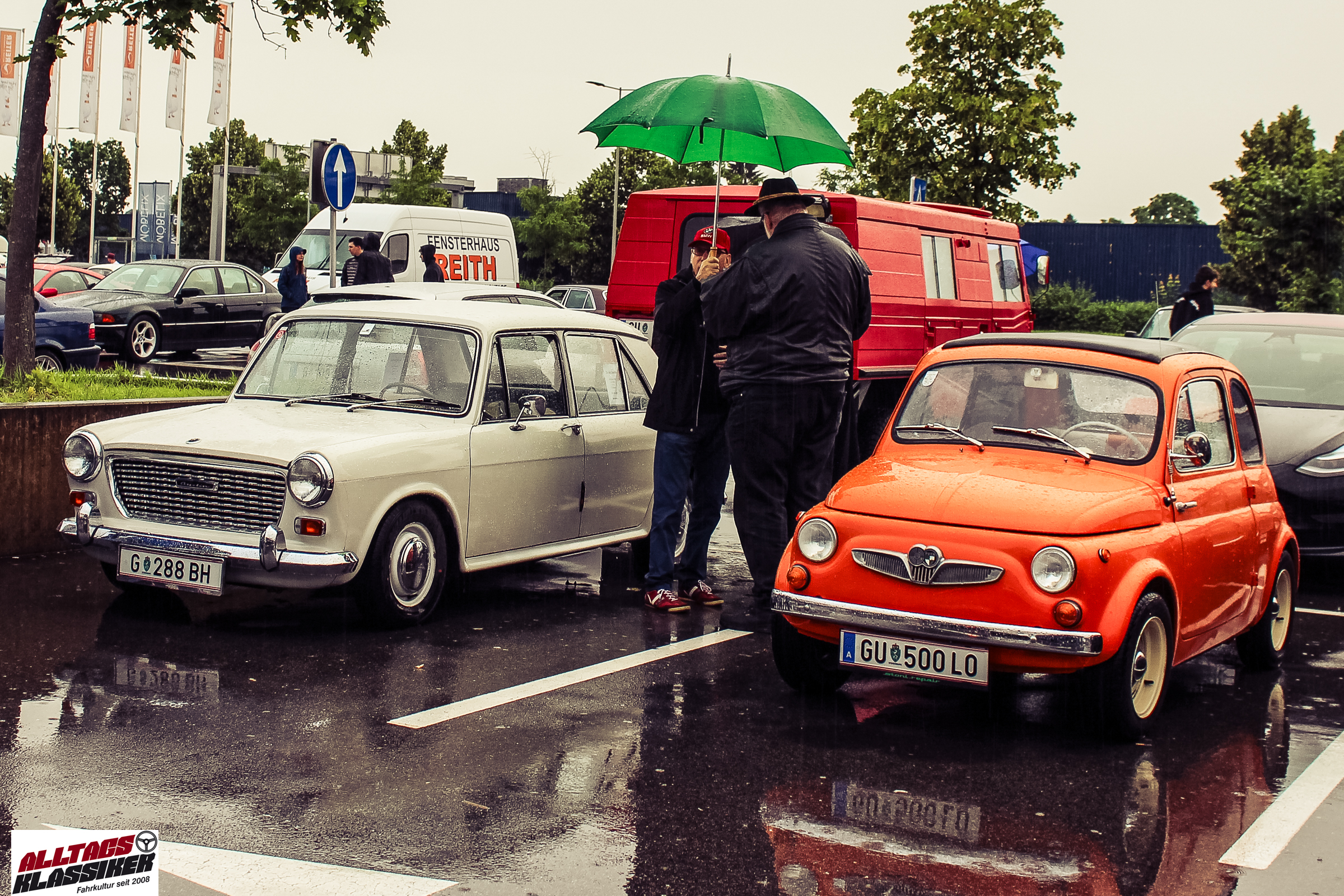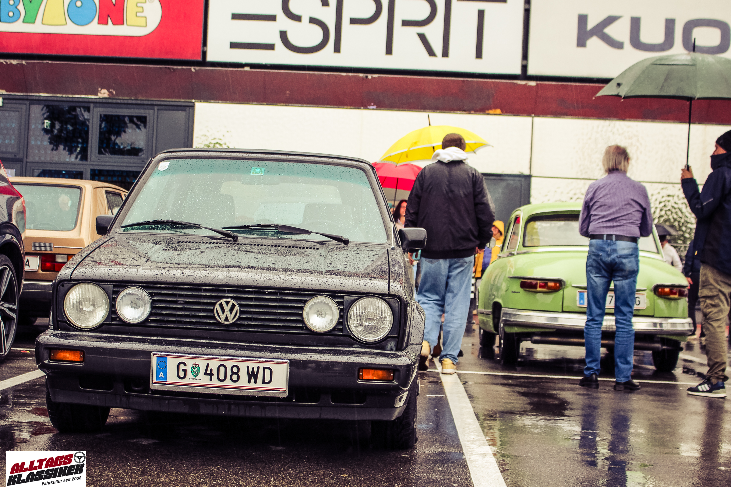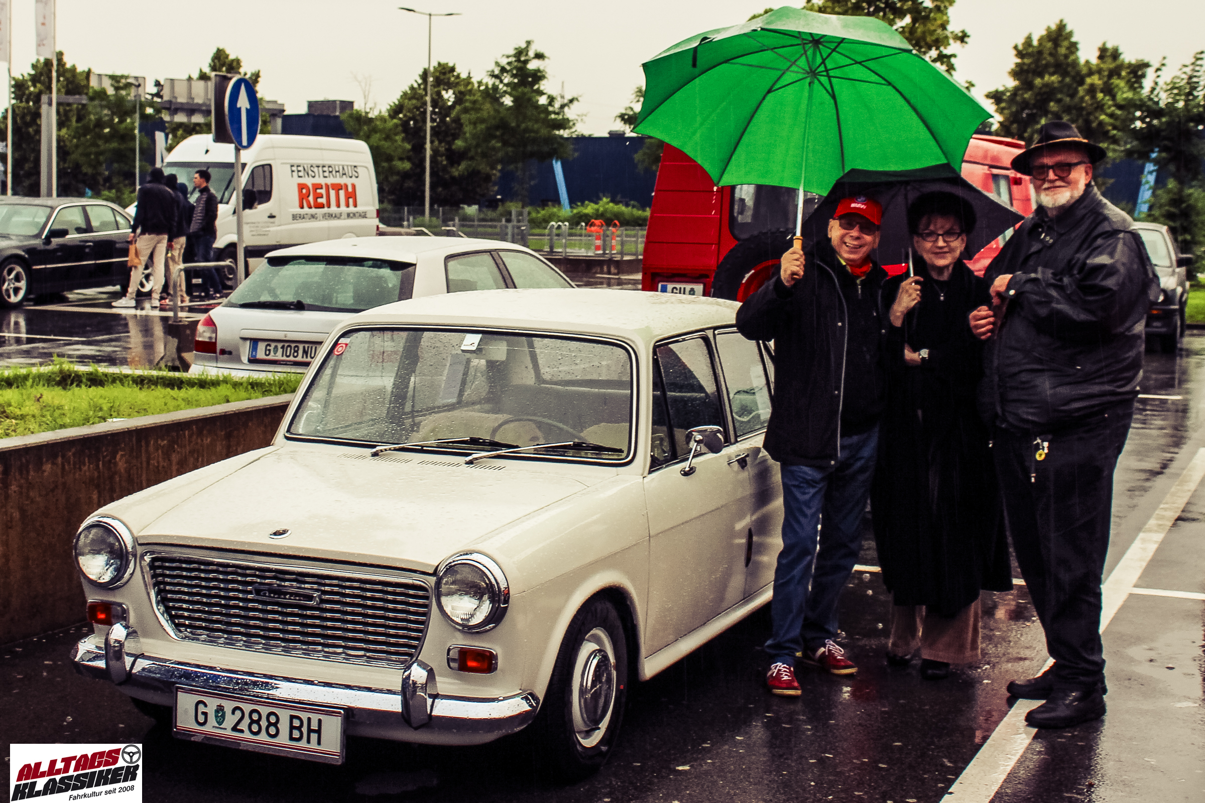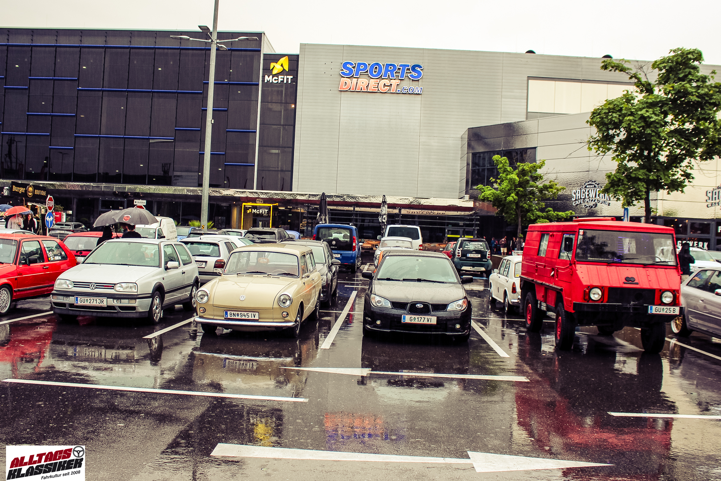 Aber gestandene Piloten von Oldtimern und Youngtimern hält ein wenig feuchte Luft nicht davon ab, am ersten Samstag des Monats nach Graz ins Center West zu cruisen. Regen hin oder her! Mit einer guten Regenjacke, einer Kappe, Regenschirm und wasserdichten Schuhen, konnte man gut stundenlang den Abend trotzdem draußen bei den Oldies verbringen.