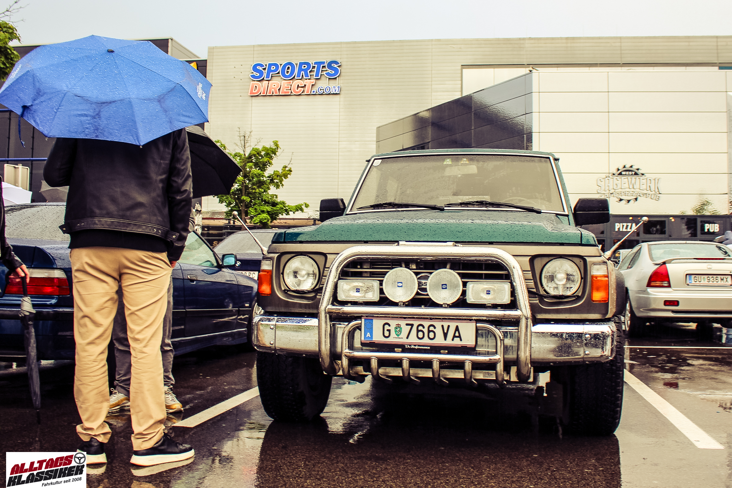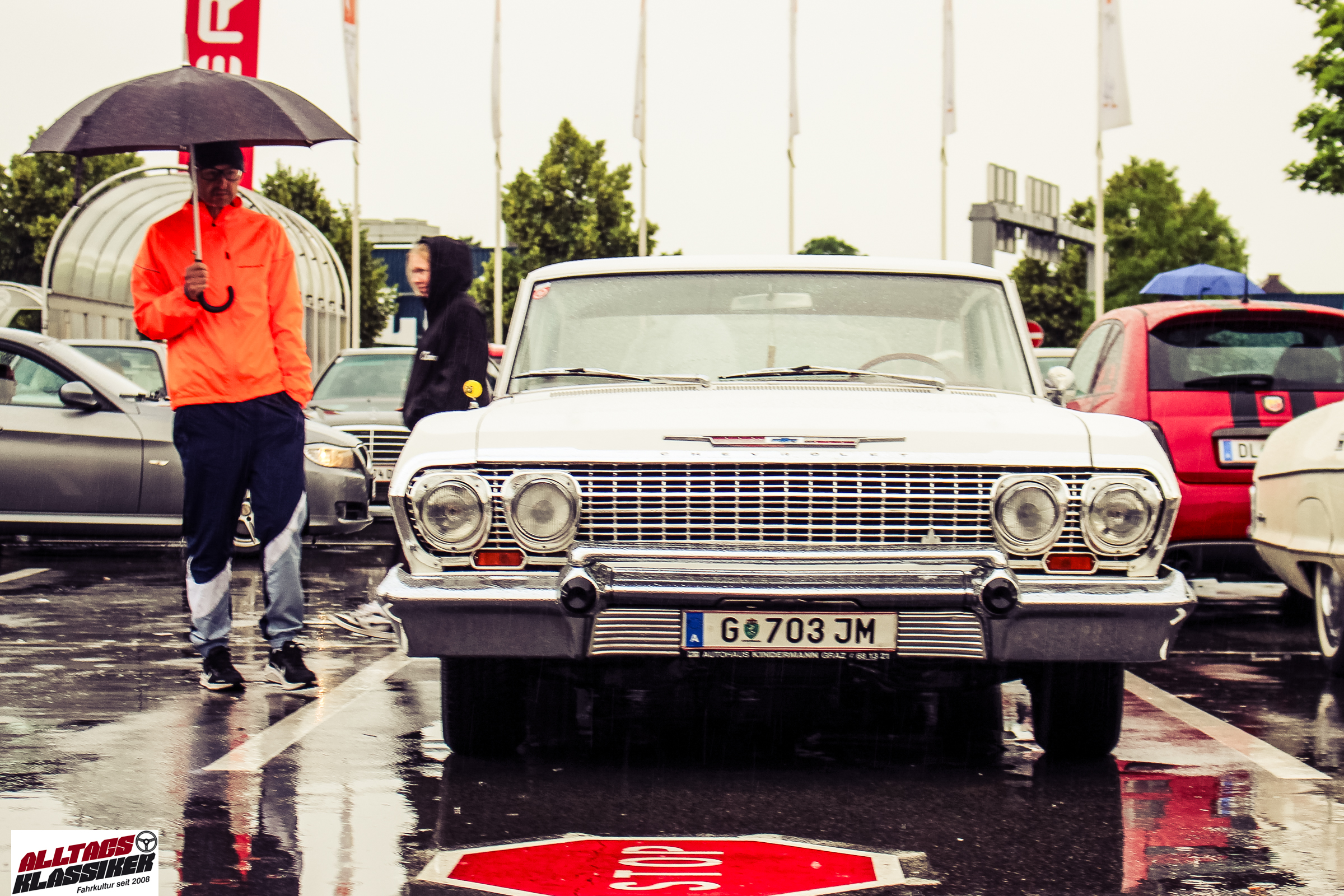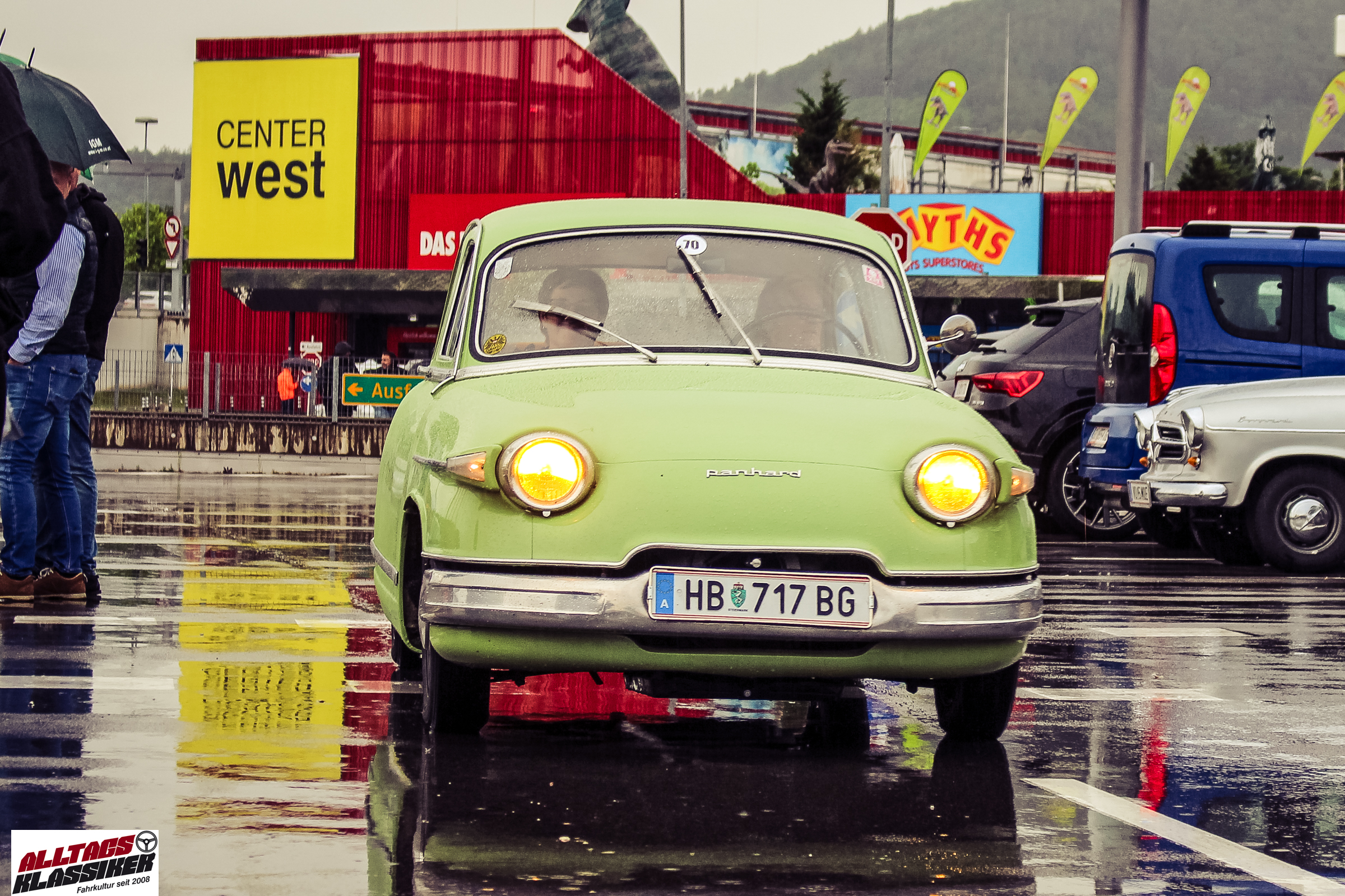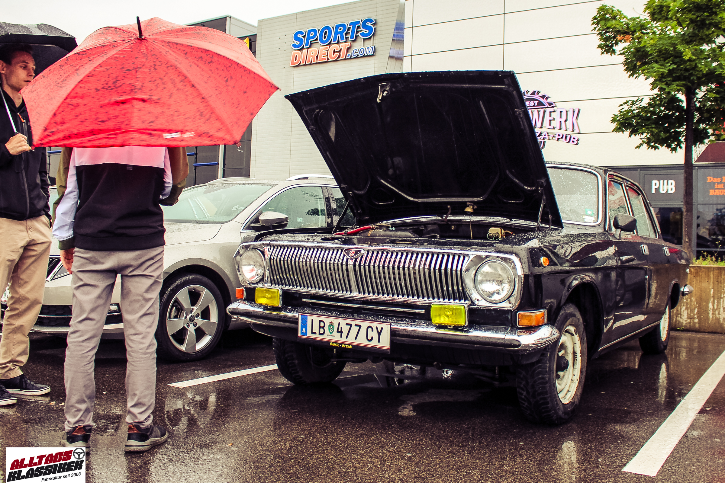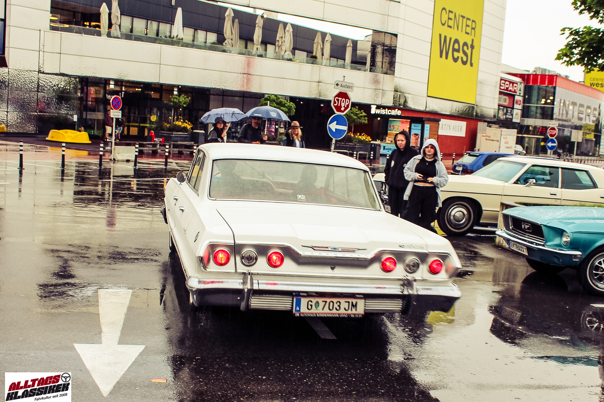 Aber gestandene Piloten von Oldtimern und Youngtimern hält ein wenig feuchte Luft nicht davon ab, am ersten Samstag des Monats nach Graz ins Center West zu cruisen. Regen hin oder her! Mit einer guten Regenjacke, einer Kappe, Regenschirm und wasserdichten Schuhen, konnte man gut stundenlang den Abend trotzdem draußen bei den Oldies verbringen.