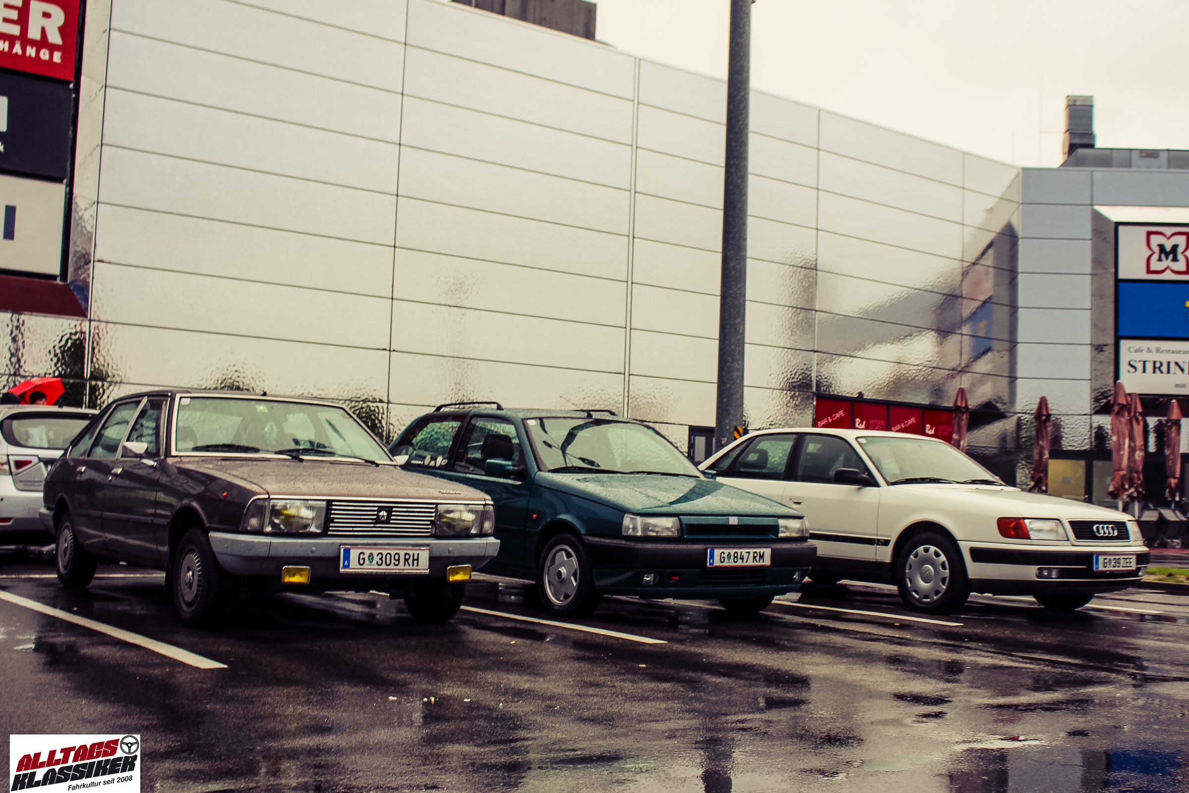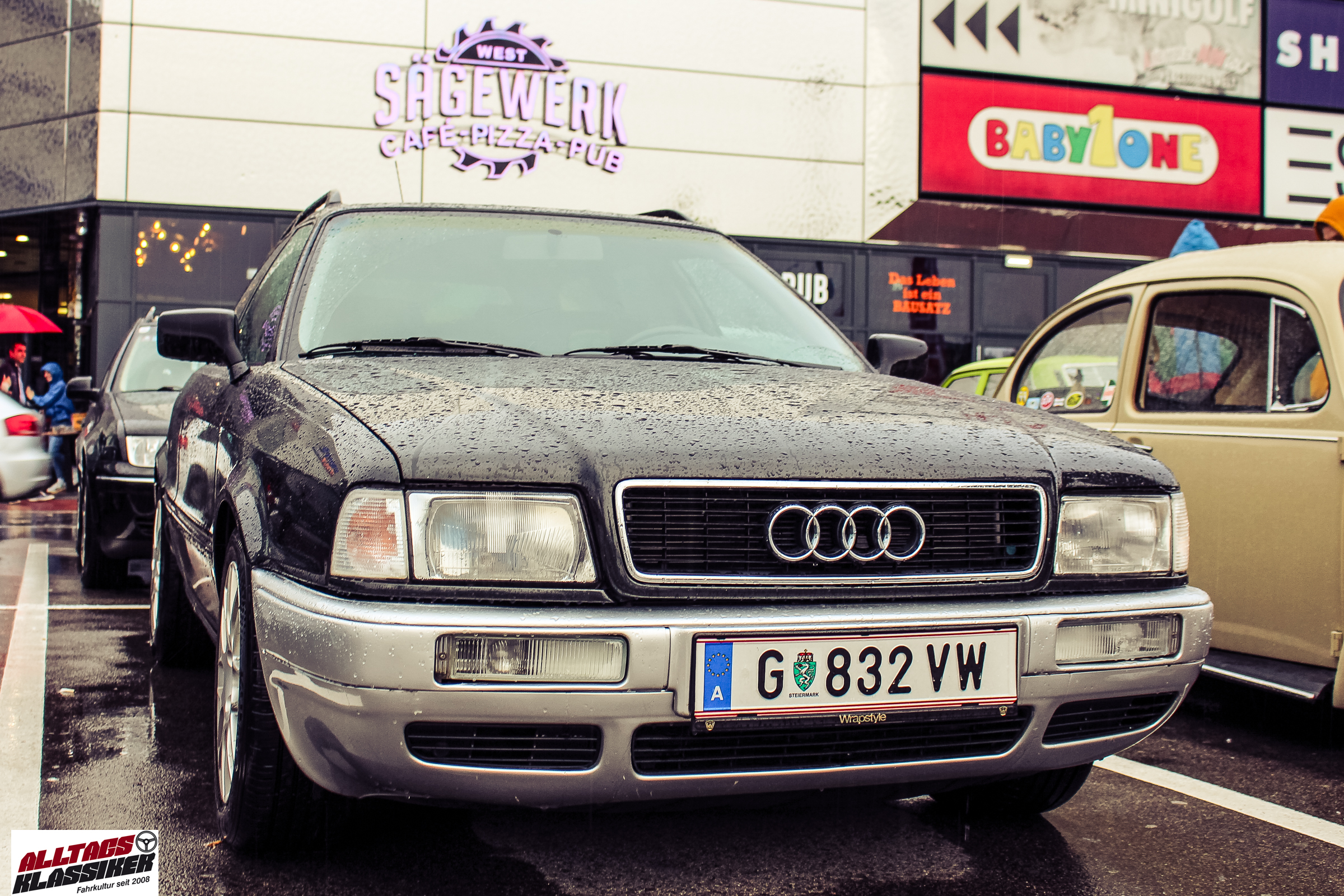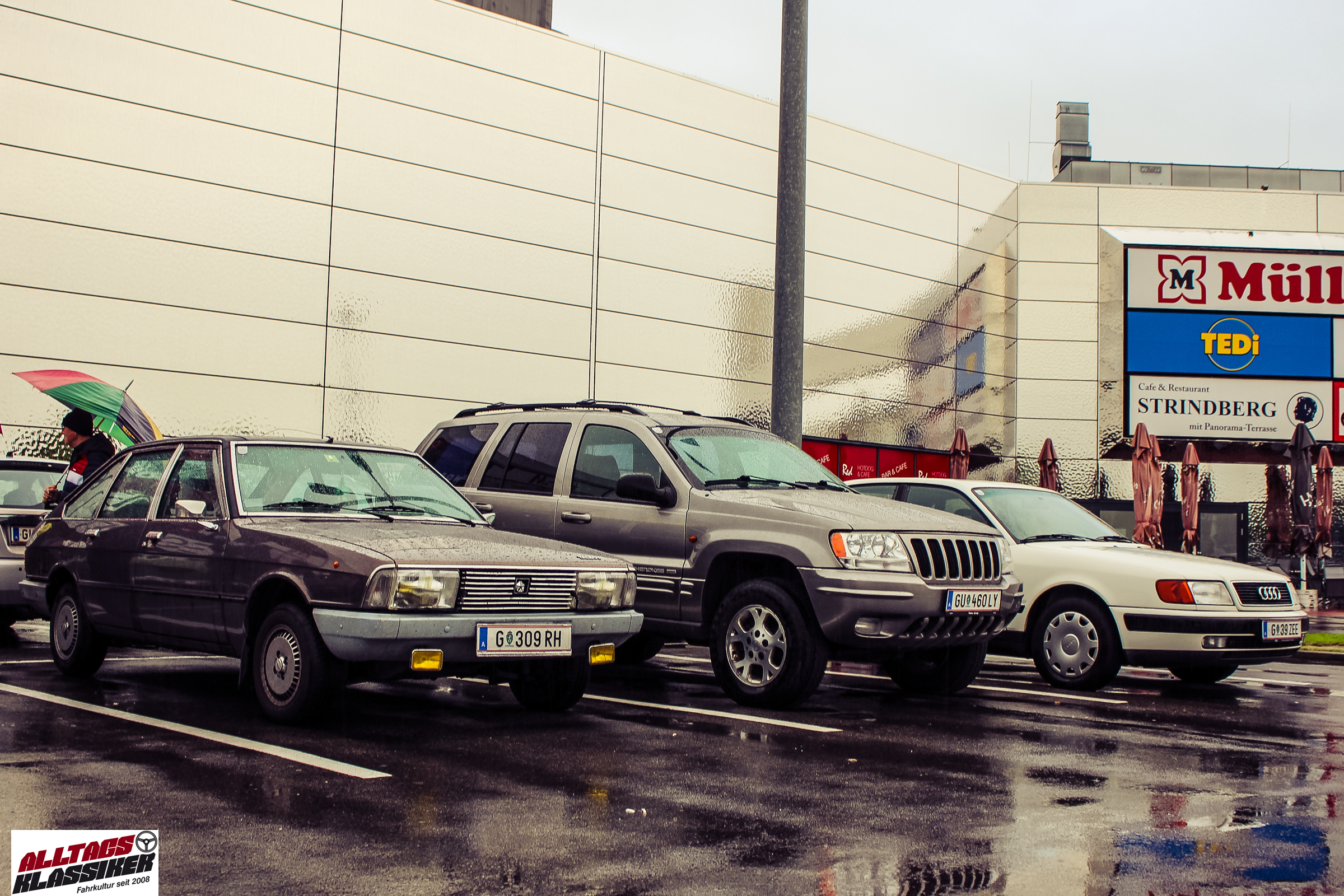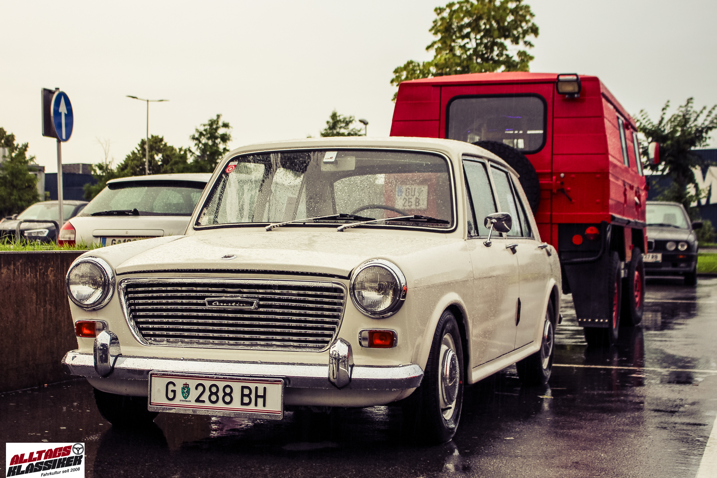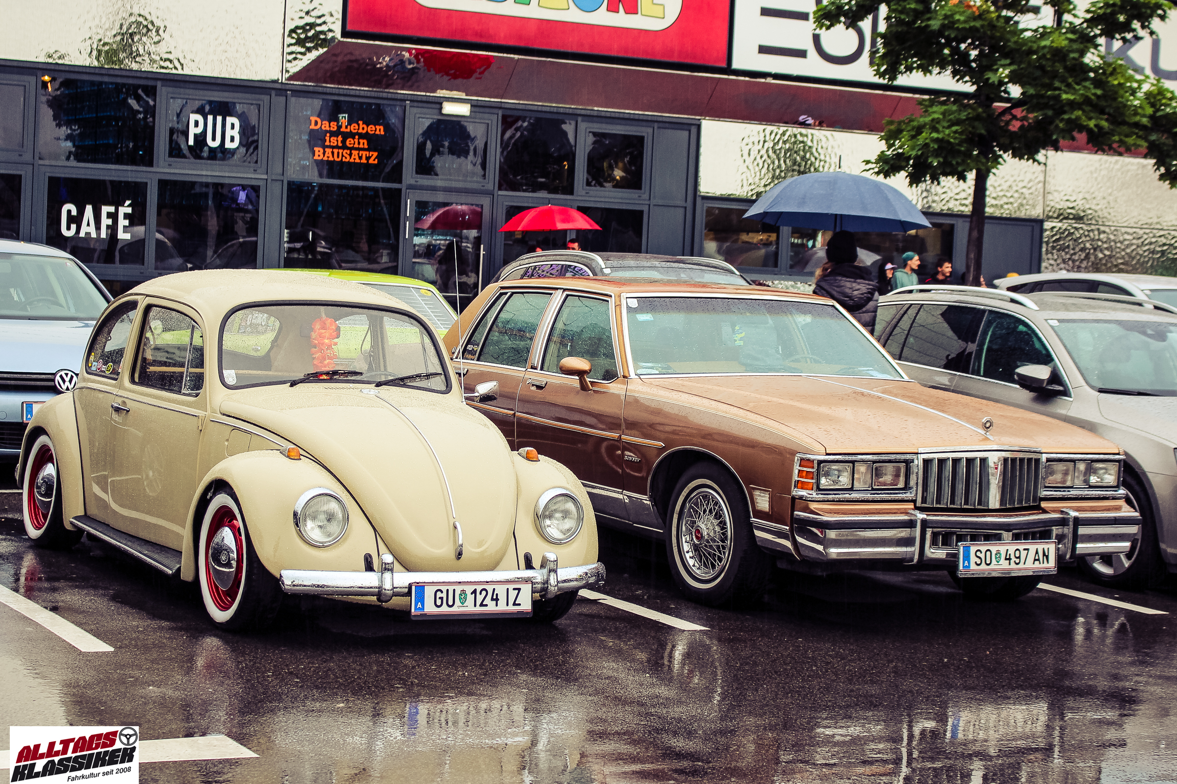 Aber gestandene Piloten von Oldtimern und Youngtimern hält ein wenig feuchte Luft nicht davon ab, am ersten Samstag des Monats nach Graz ins Center West zu cruisen. Regen hin oder her! Mit einer guten Regenjacke, einer Kappe, Regenschirm und wasserdichten Schuhen, konnte man gut stundenlang den Abend trotzdem draußen bei den Oldies verbringen.