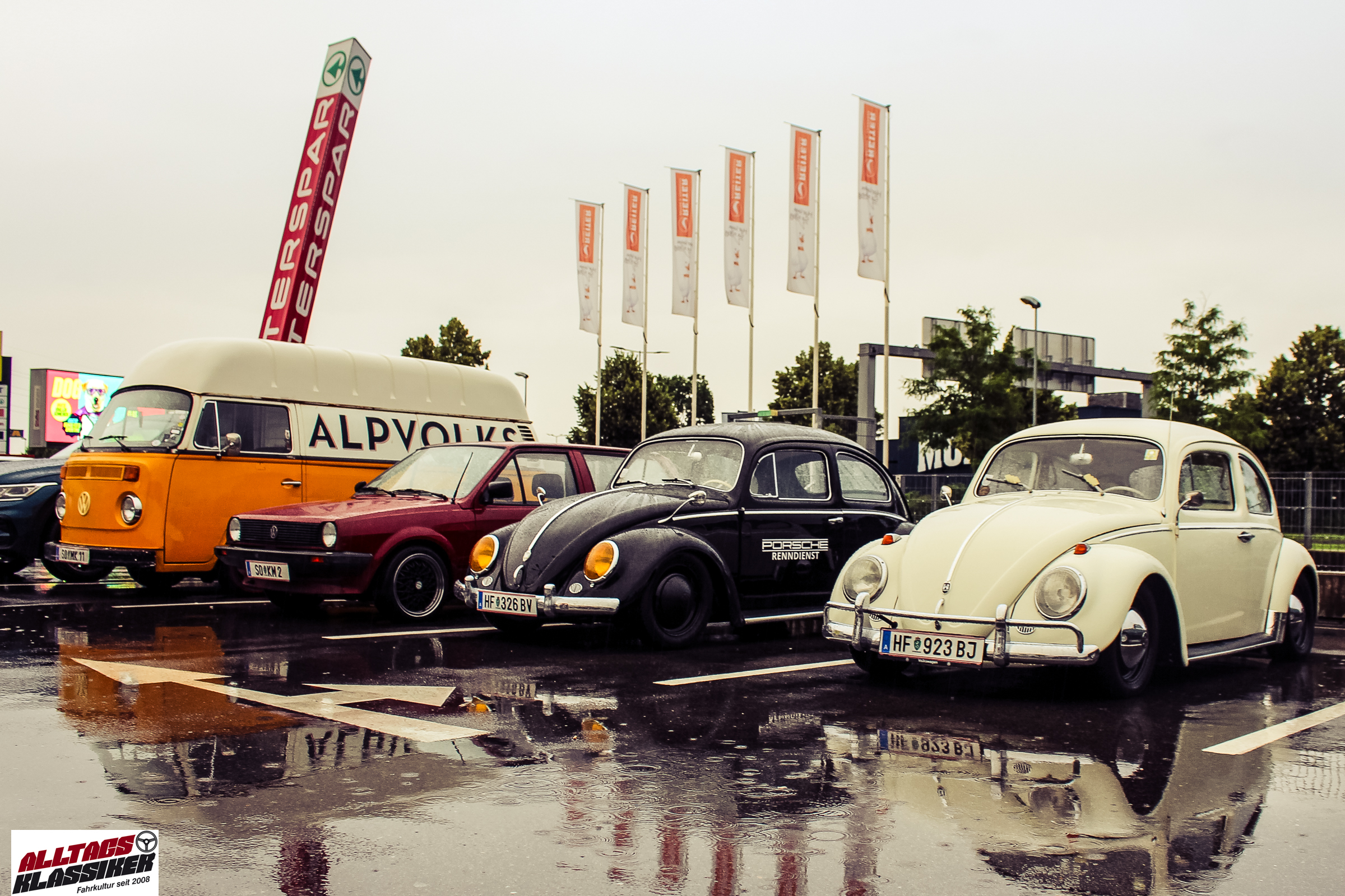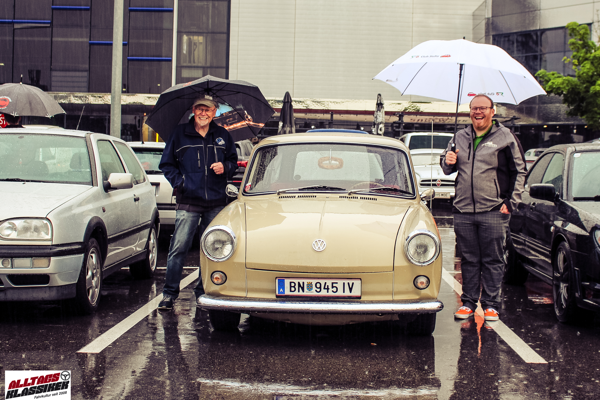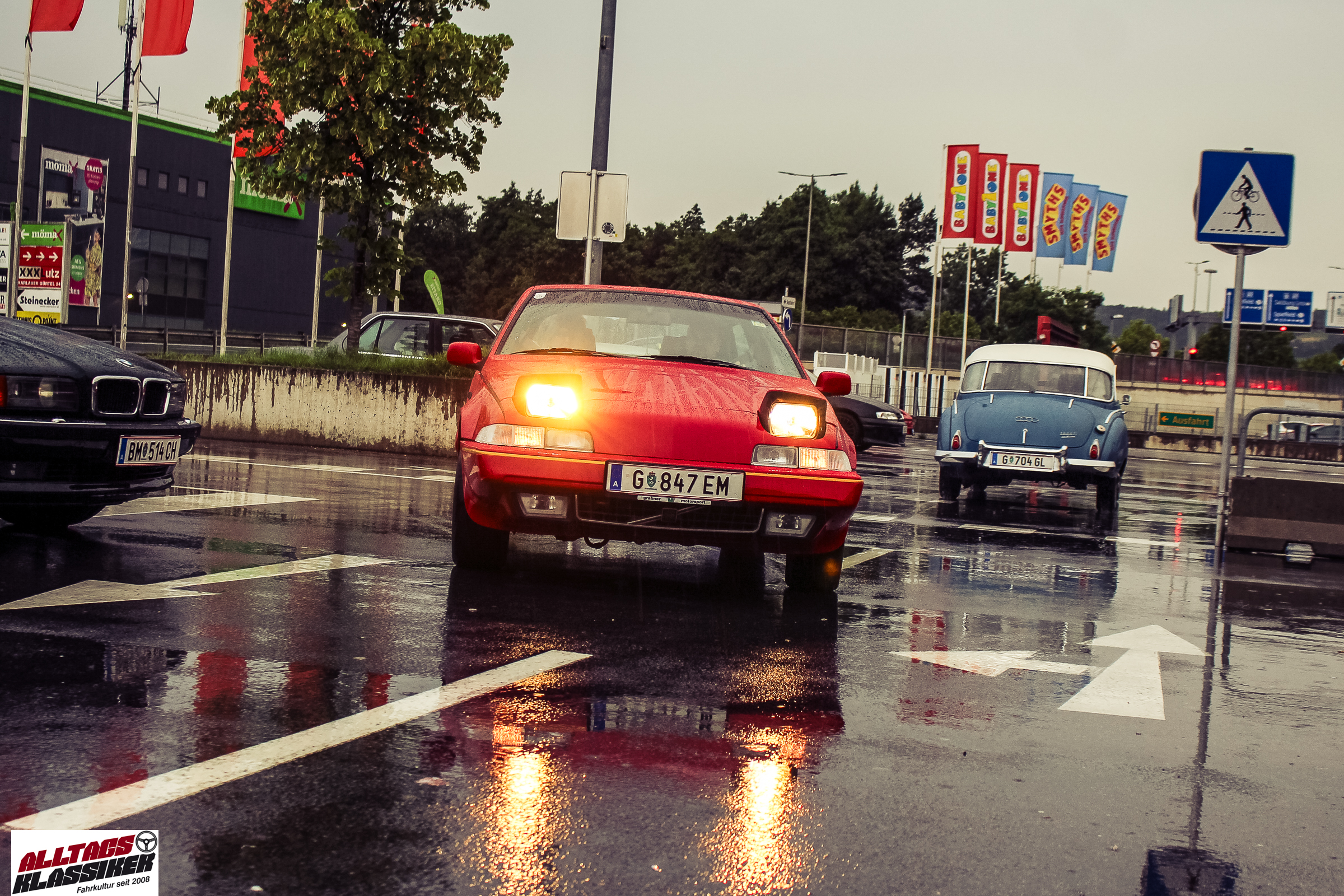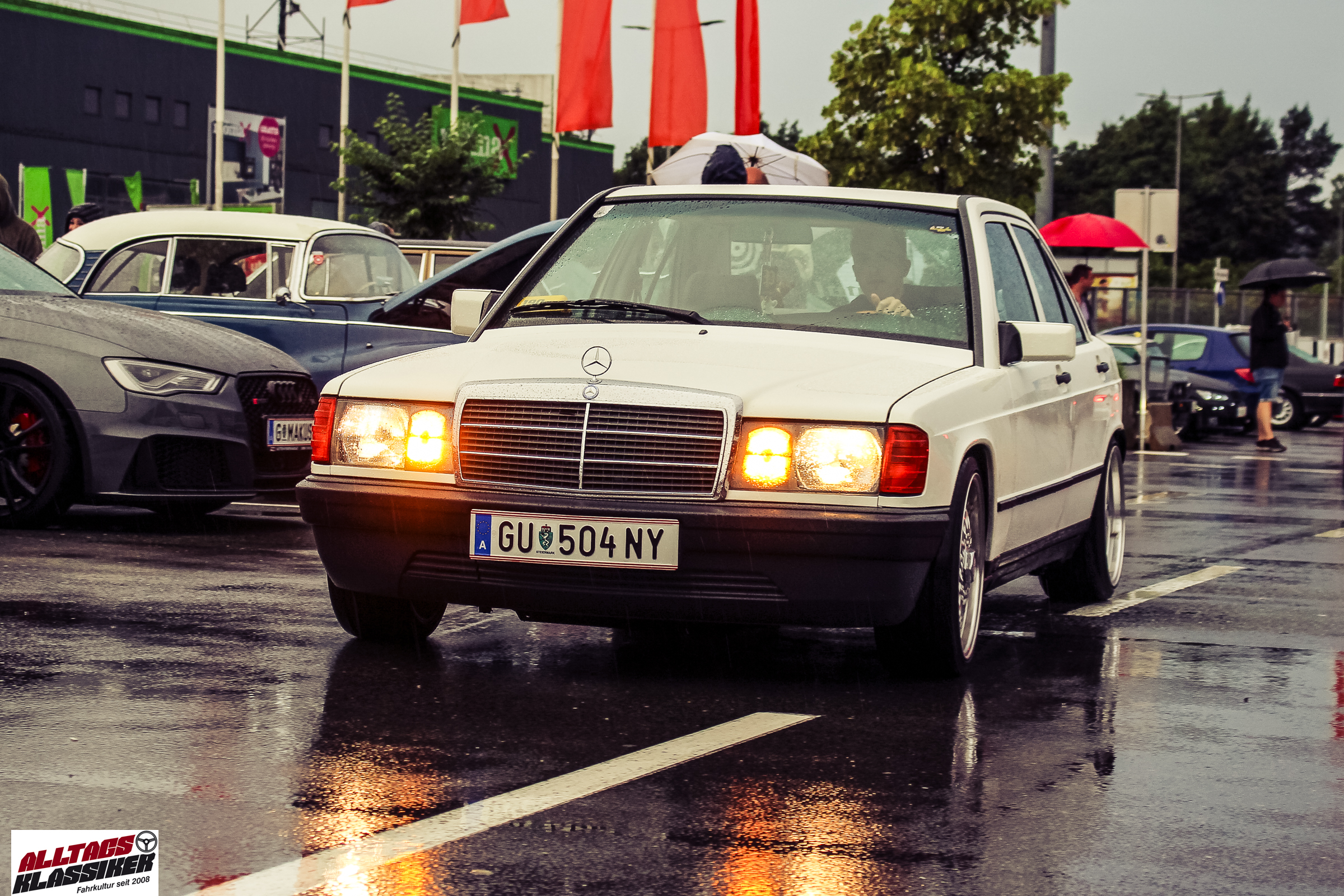 Aber gestandene Piloten von Oldtimern und Youngtimern hält ein wenig feuchte Luft nicht davon ab, am ersten Samstag des Monats nach Graz ins Center West zu cruisen. Regen hin oder her! Mit einer guten Regenjacke, einer Kappe, Regenschirm und wasserdichten Schuhen, konnte man gut stundenlang den Abend trotzdem draußen bei den Oldies verbringen.
