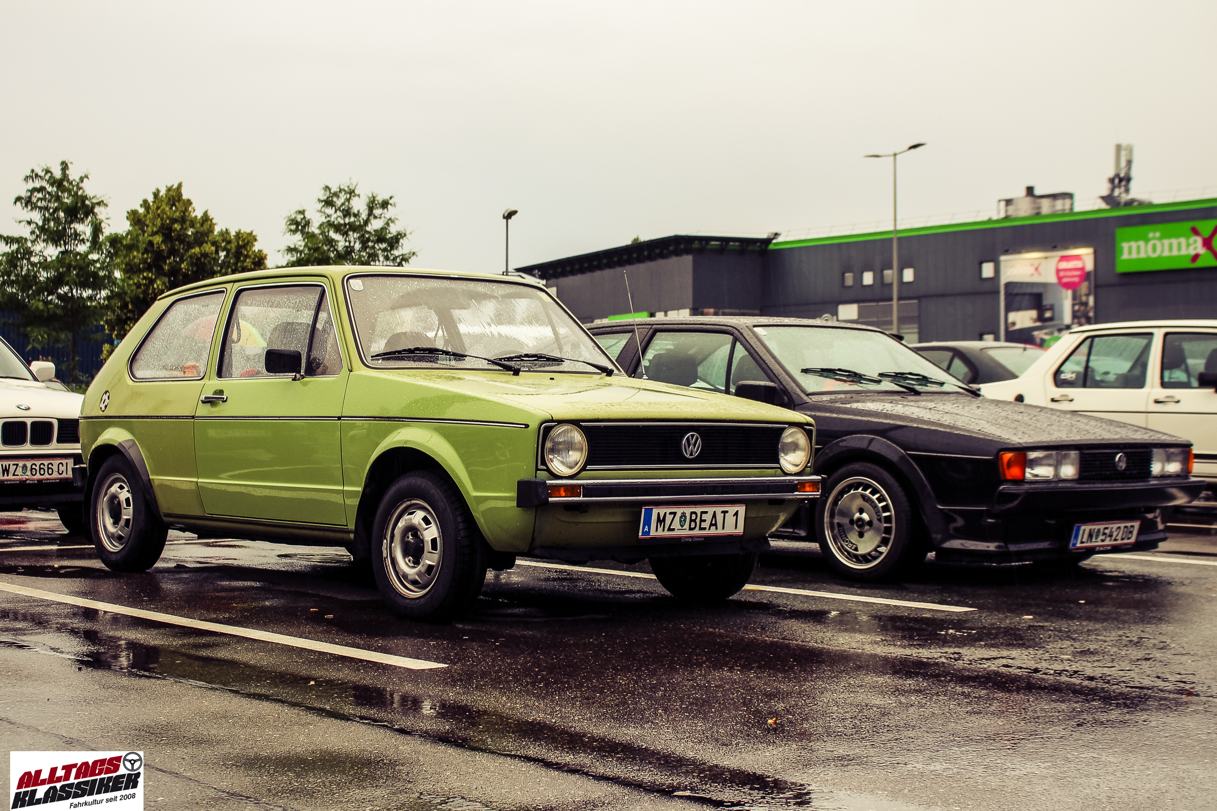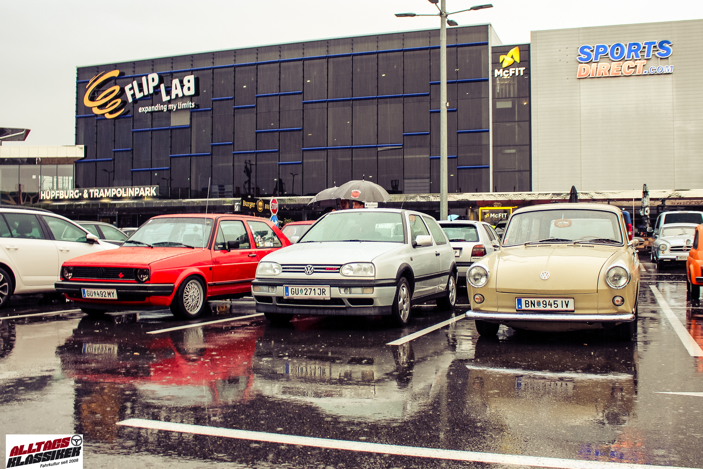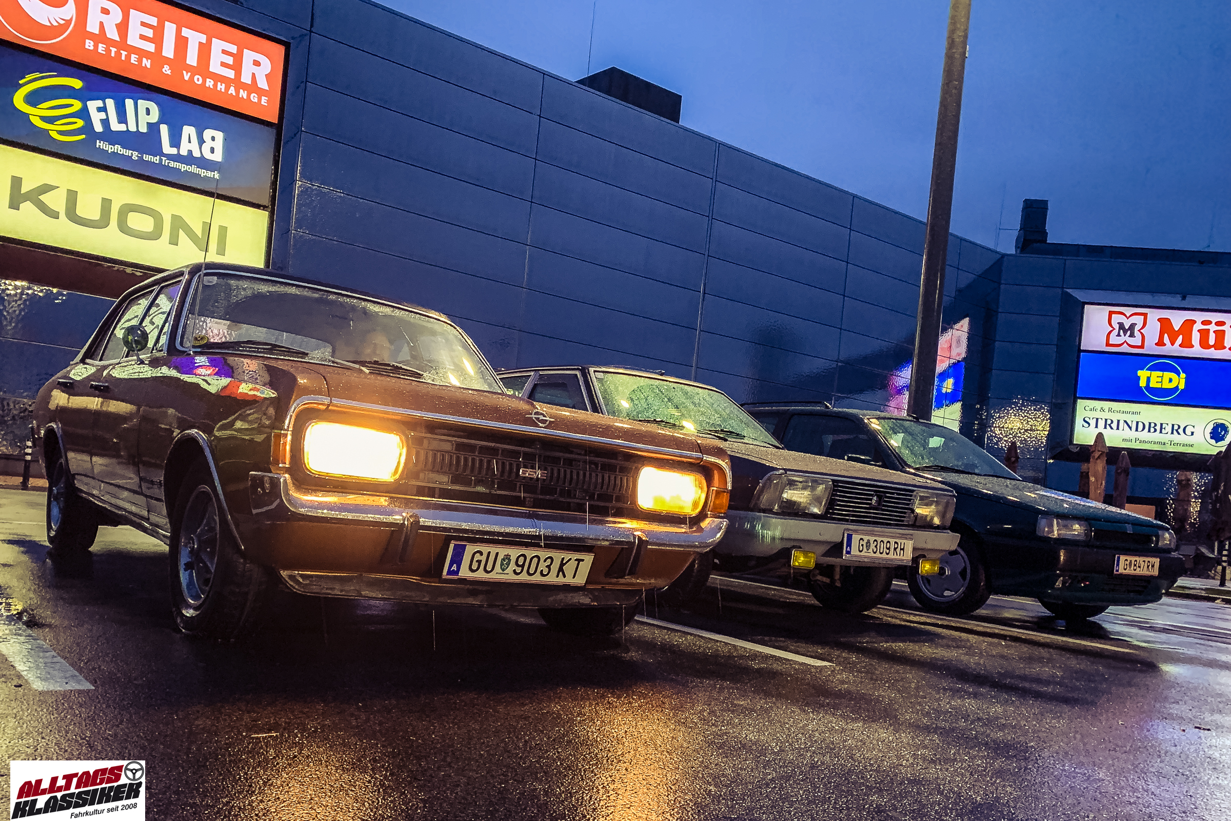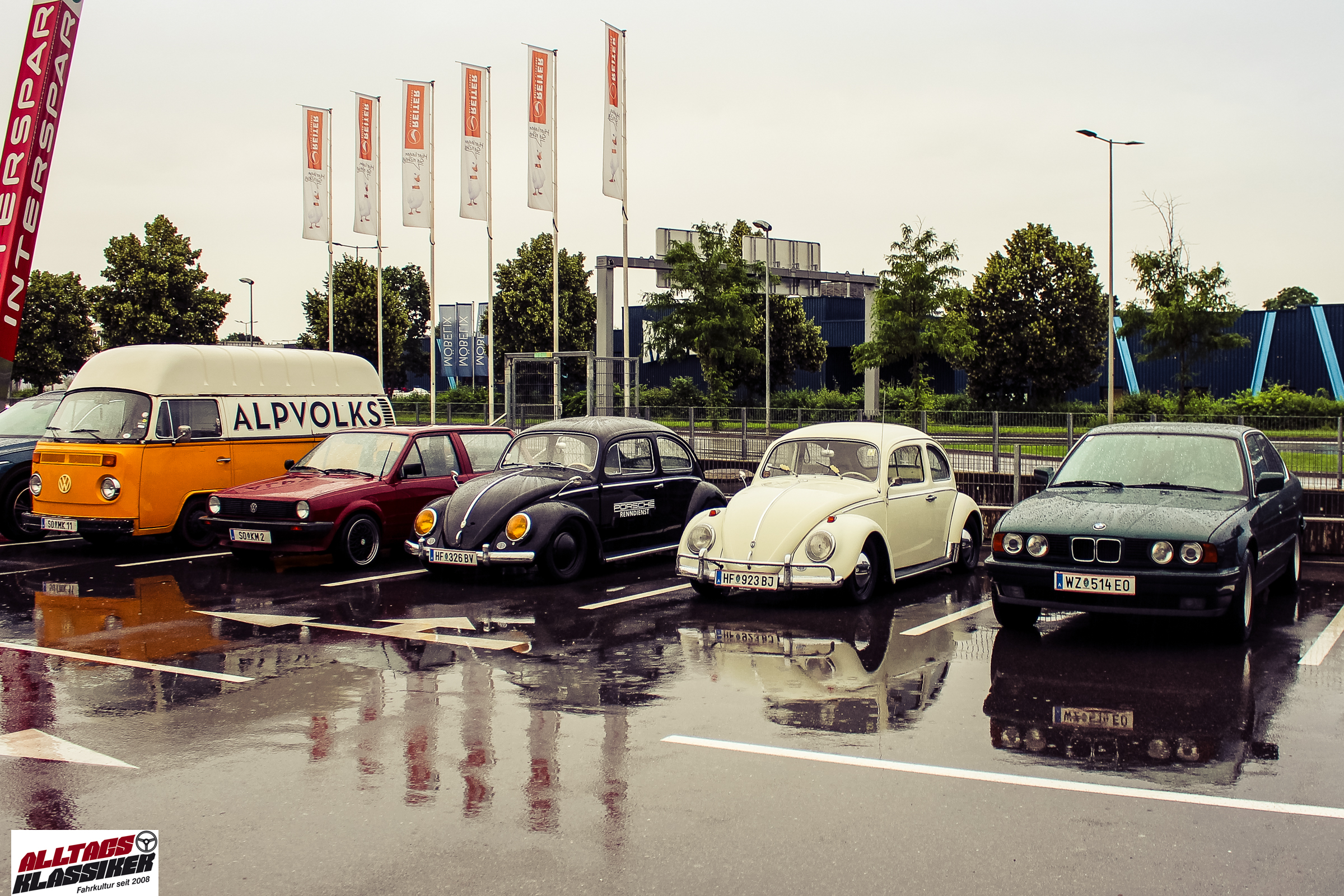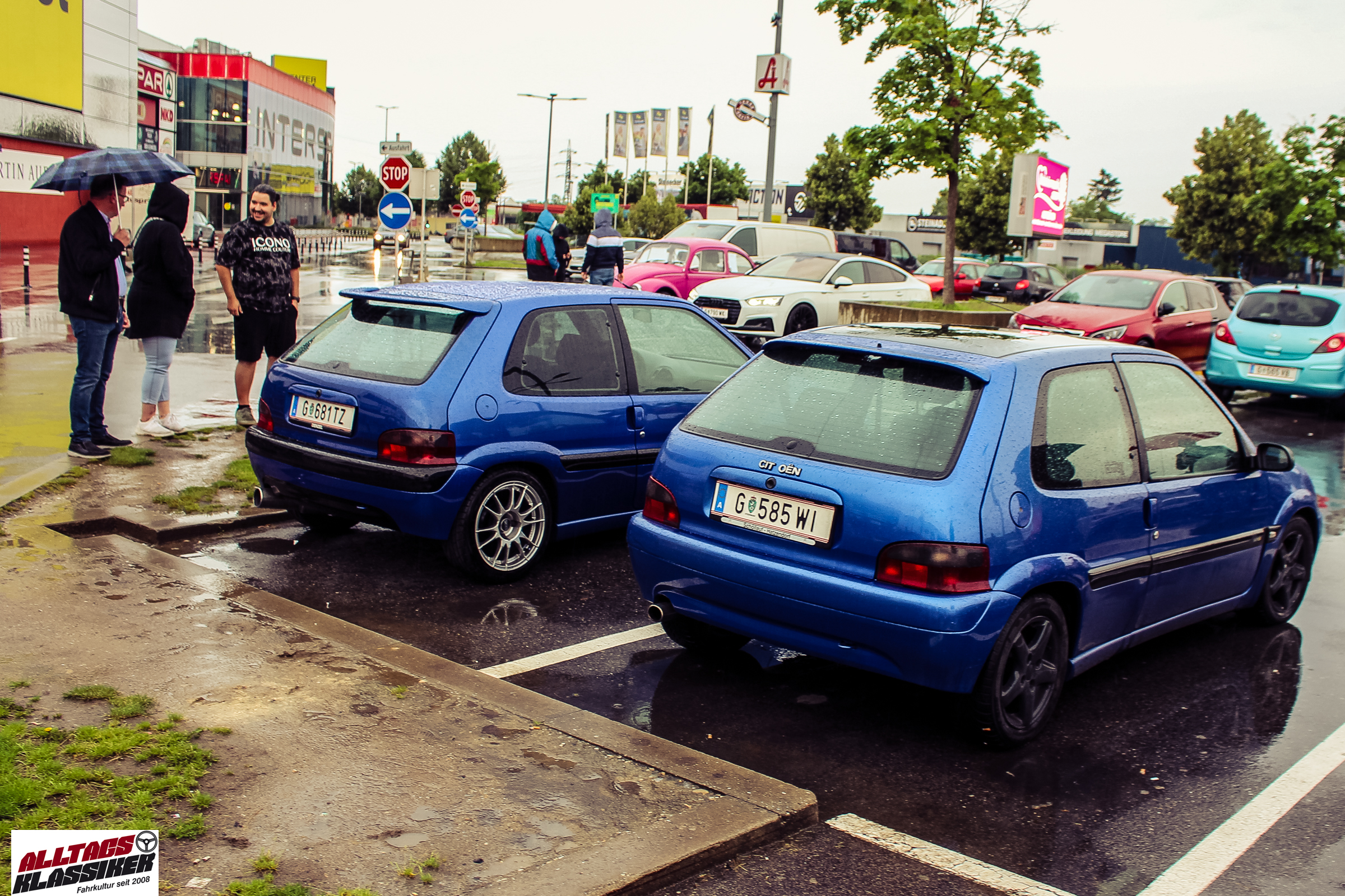 Aber gestandene Piloten von Oldtimern und Youngtimern hält ein wenig feuchte Luft nicht davon ab, am ersten Samstag des Monats nach Graz ins Center West zu cruisen. Regen hin oder her! Mit einer guten Regenjacke, einer Kappe, Regenschirm und wasserdichten Schuhen, konnte man gut stundenlang den Abend trotzdem draußen bei den Oldies verbringen.