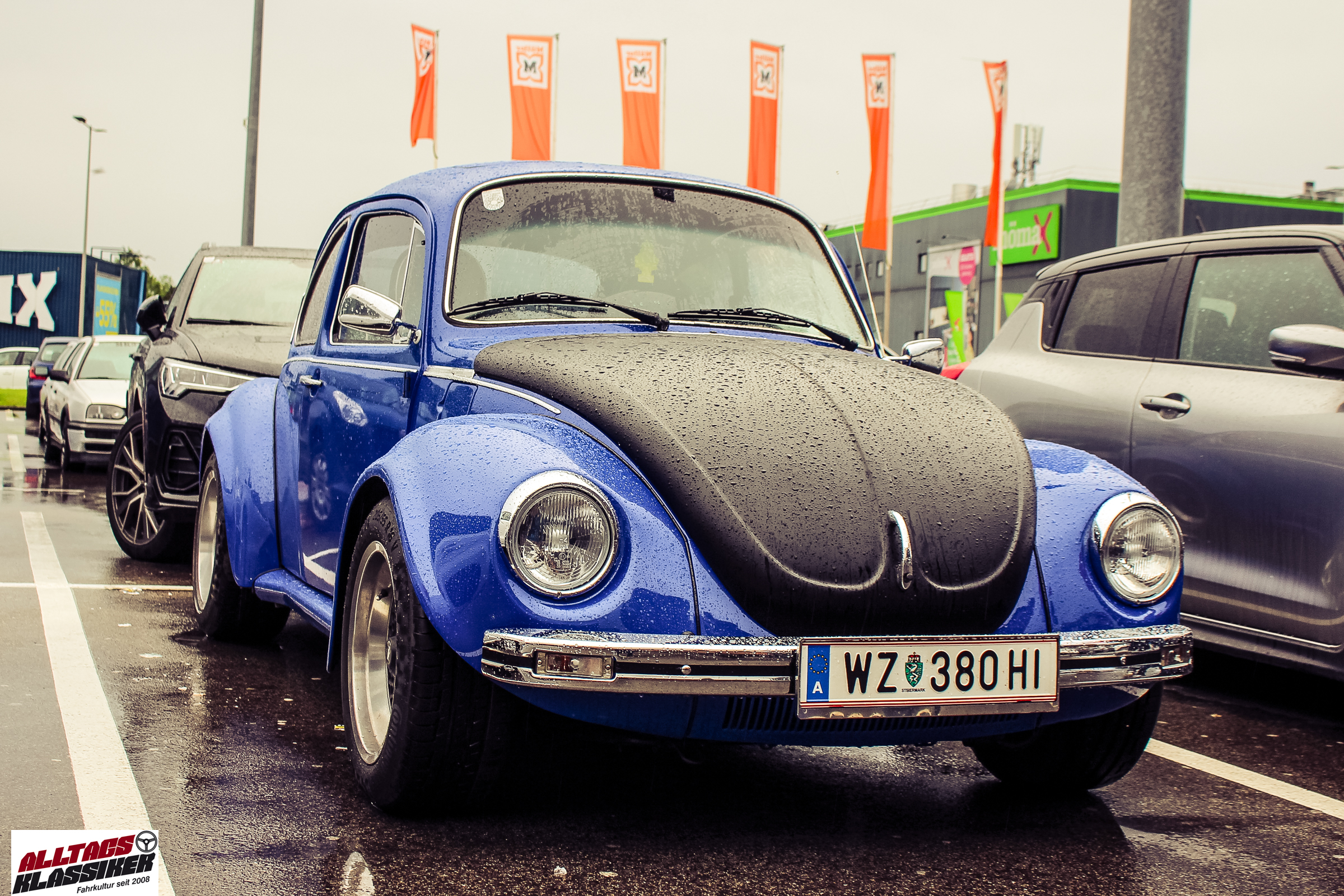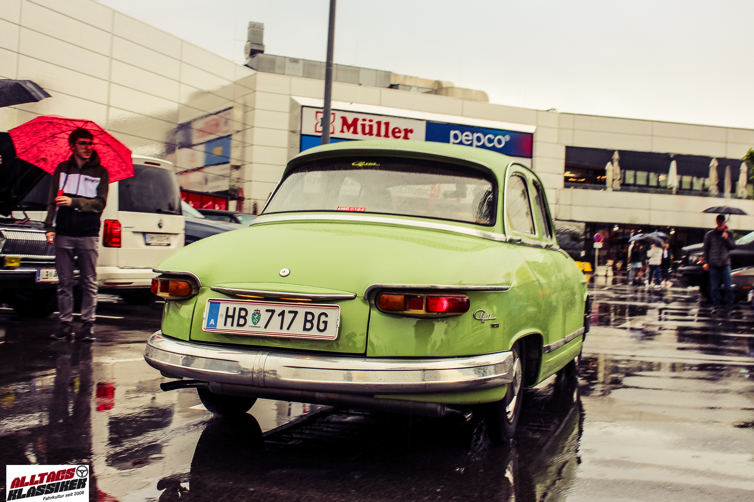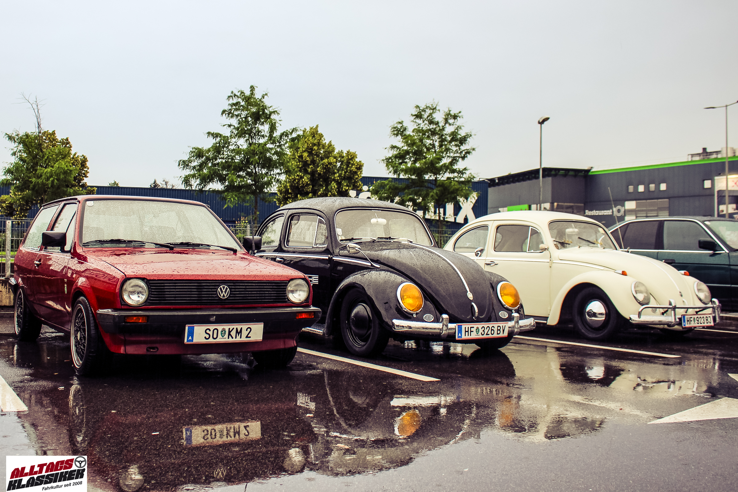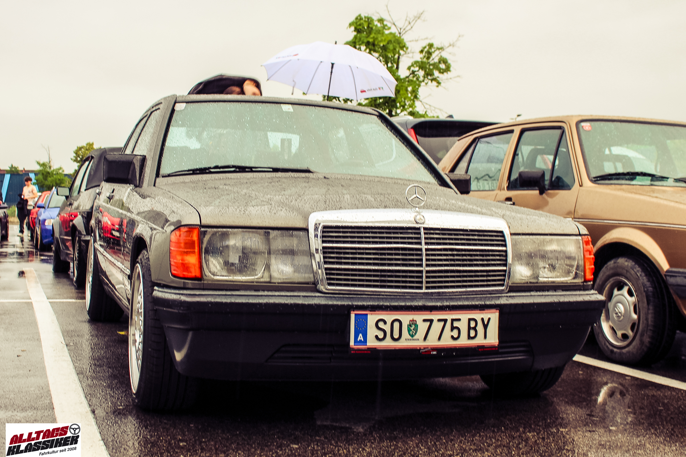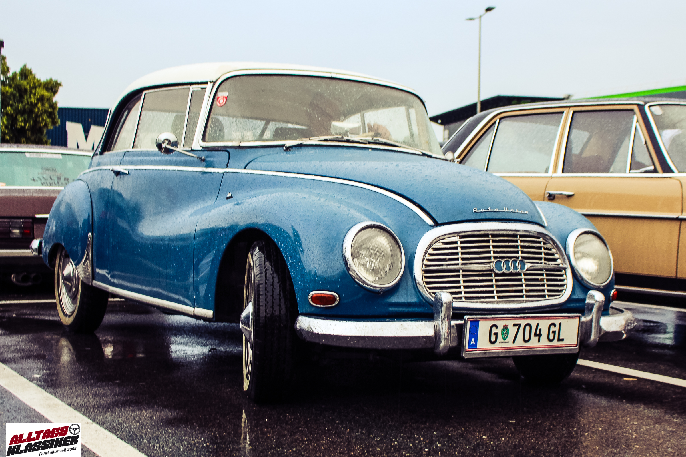 Aber gestandene Piloten von Oldtimern und Youngtimern hält ein wenig feuchte Luft nicht davon ab, am ersten Samstag des Monats nach Graz ins Center West zu cruisen. Regen hin oder her! Mit einer guten Regenjacke, einer Kappe, Regenschirm und wasserdichten Schuhen, konnte man gut stundenlang den Abend trotzdem draußen bei den Oldies verbringen.