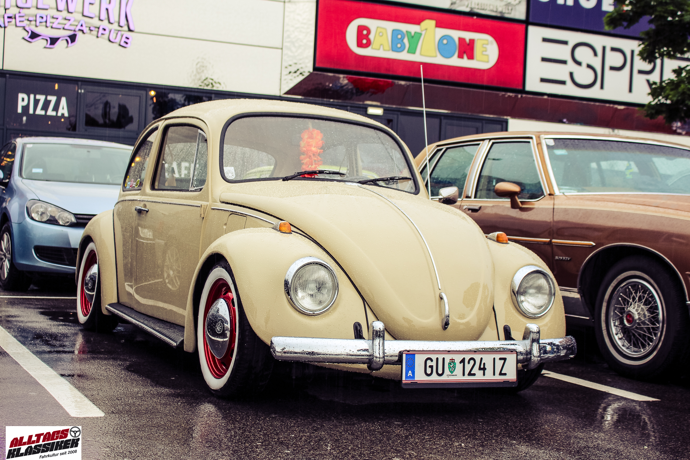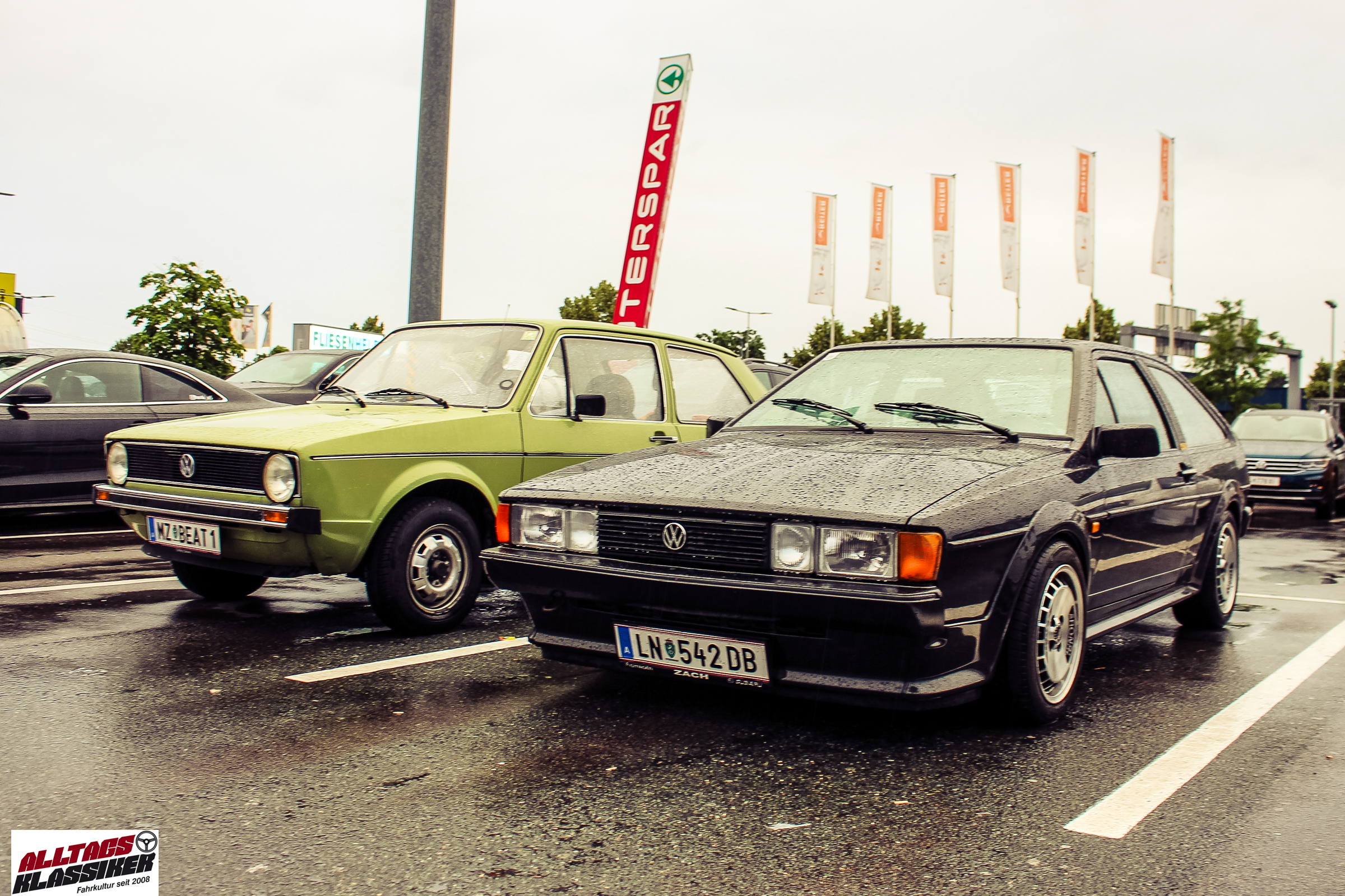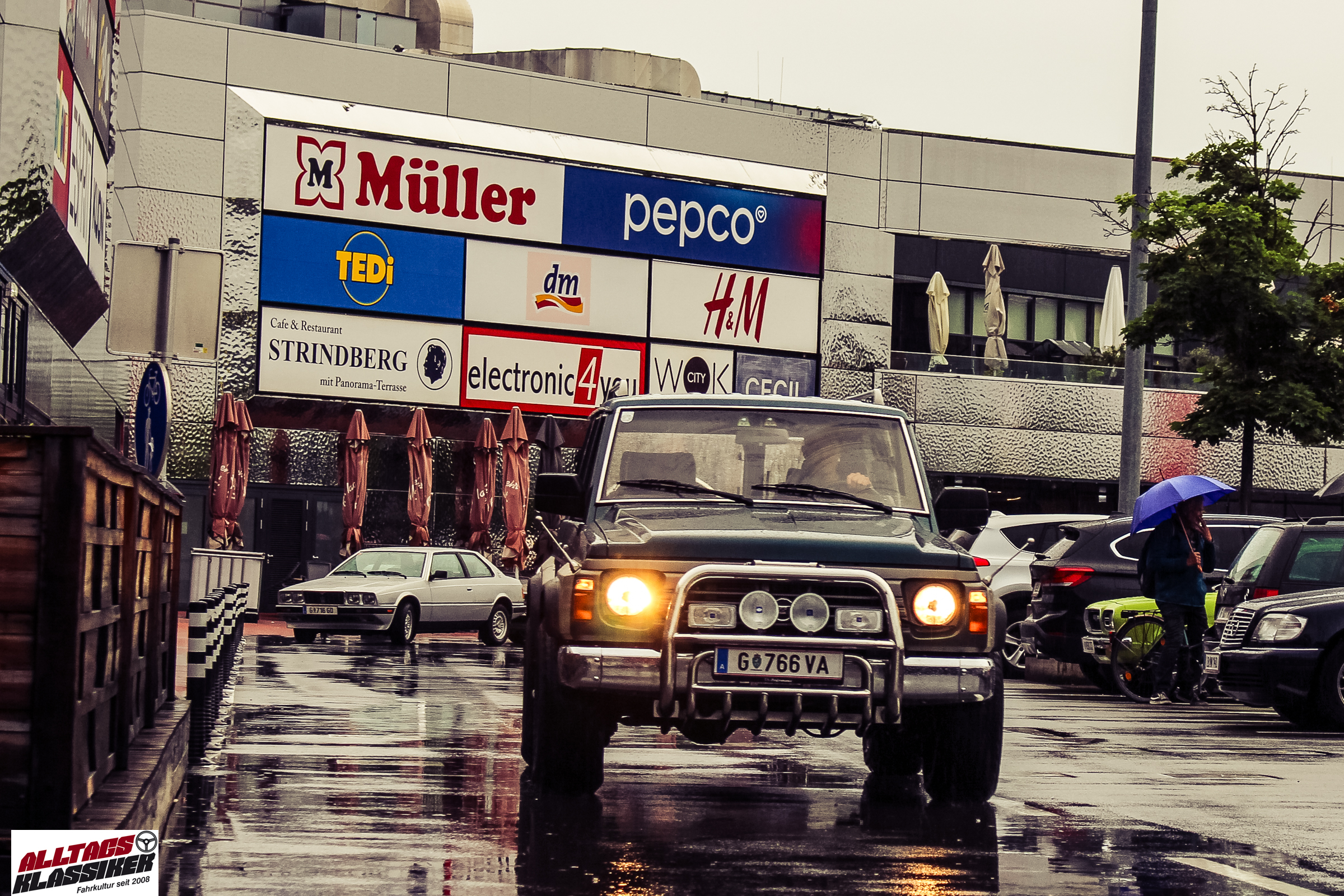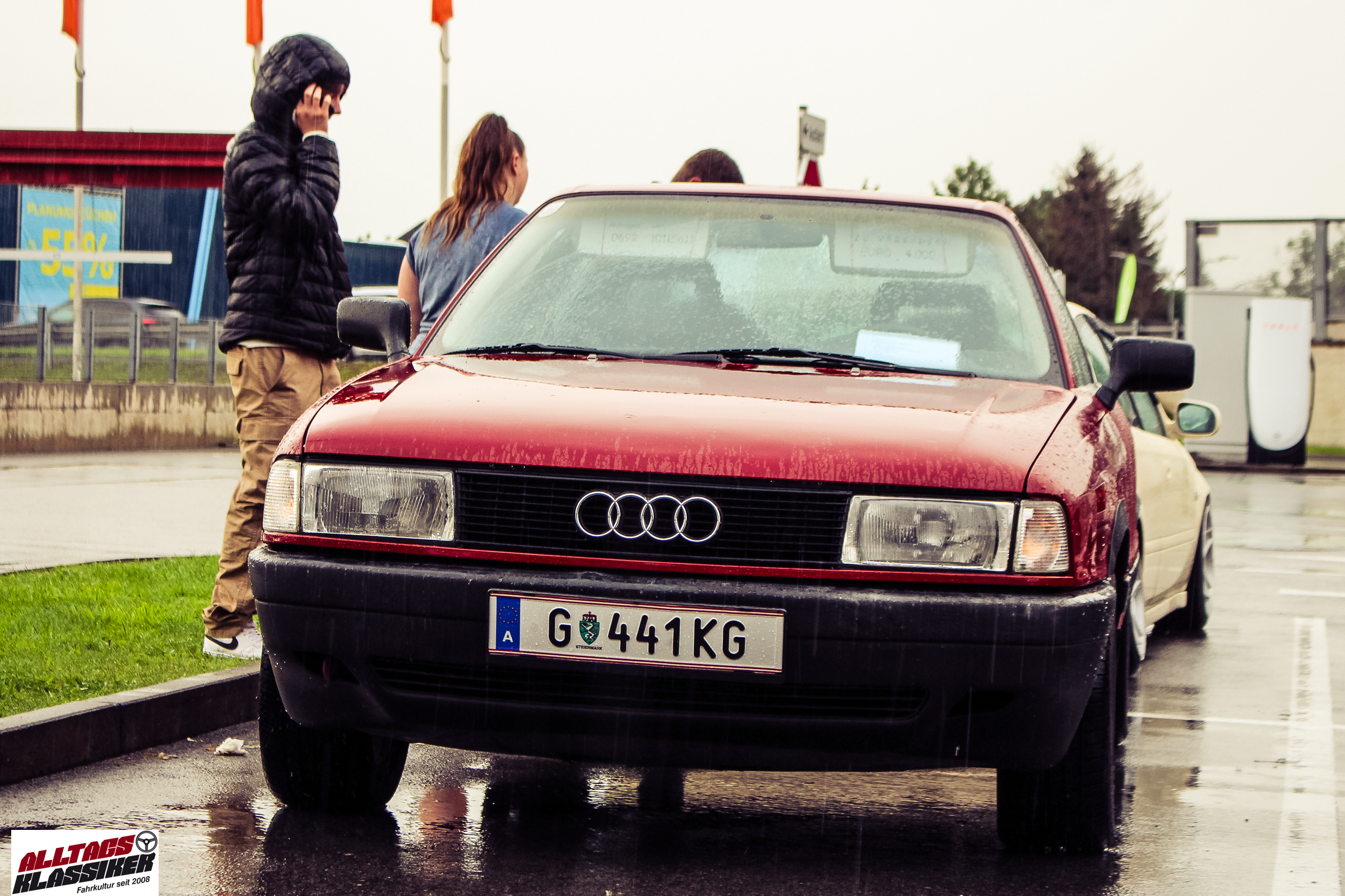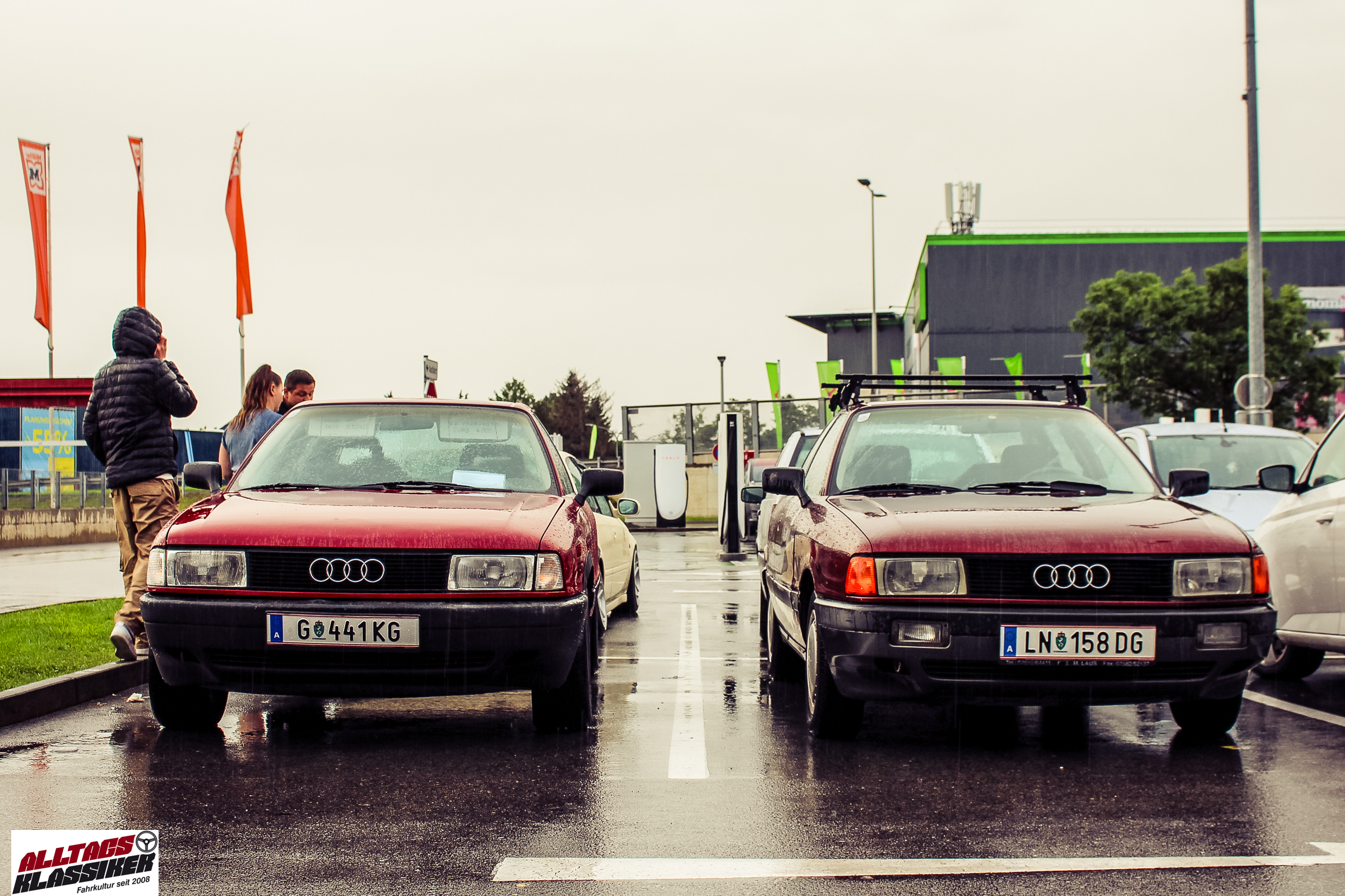Aber gestandene Piloten von Oldtimern und Youngtimern hält ein wenig feuchte Luft nicht davon ab, am ersten Samstag des Monats nach Graz ins Center West zu cruisen. Regen hin oder her! Mit einer guten Regenjacke, einer Kappe, Regenschirm und wasserdichten Schuhen, konnte man gut stundenlang den Abend trotzdem draußen bei den Oldies verbringen.