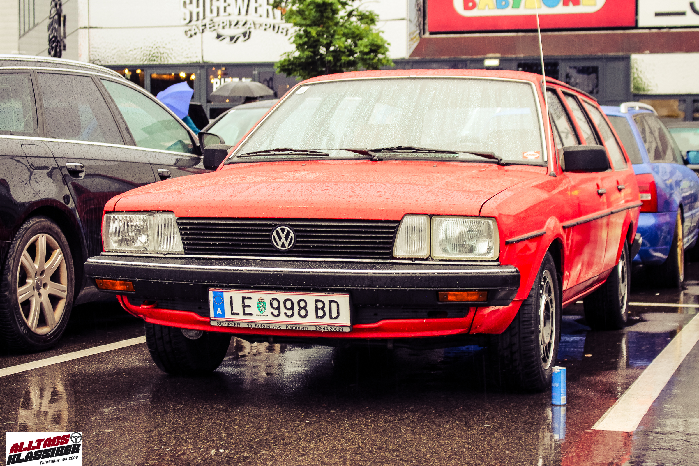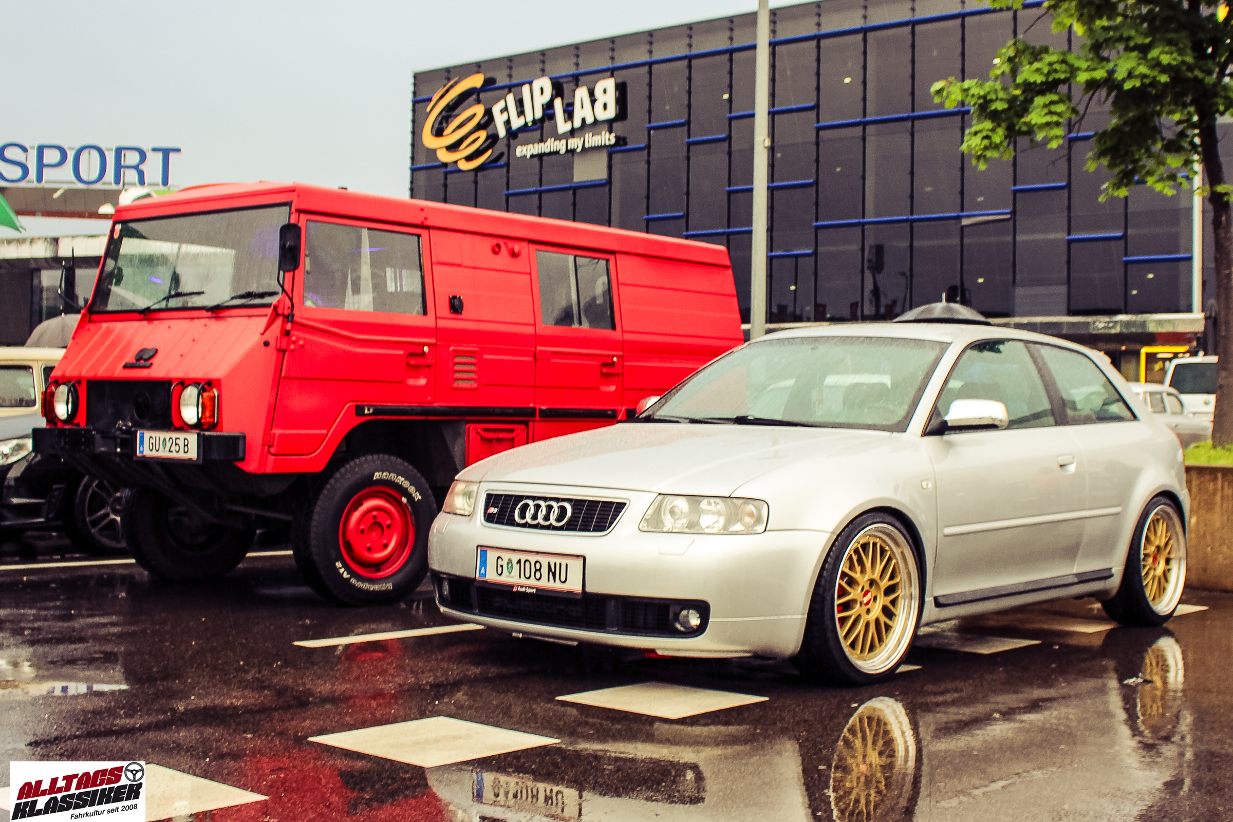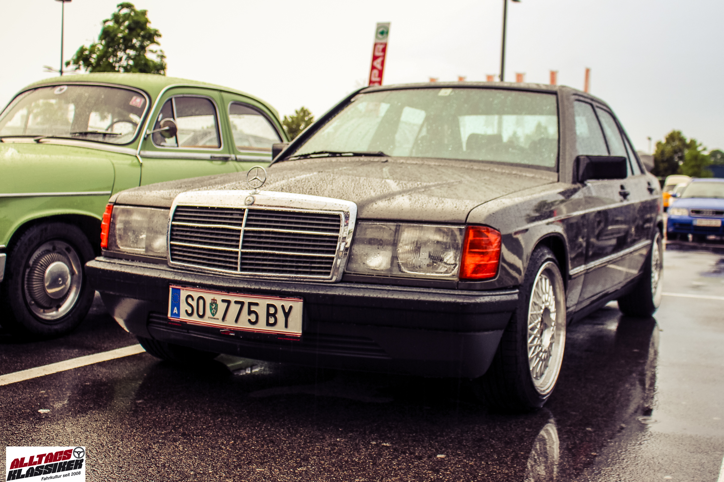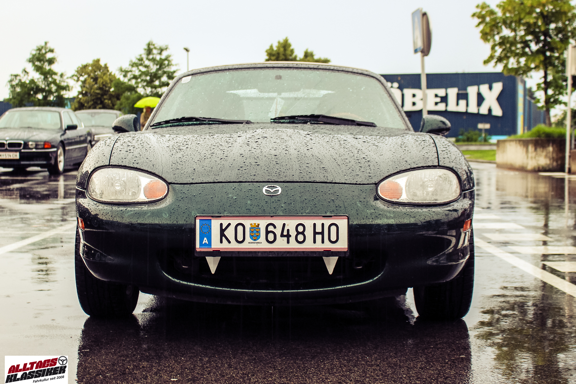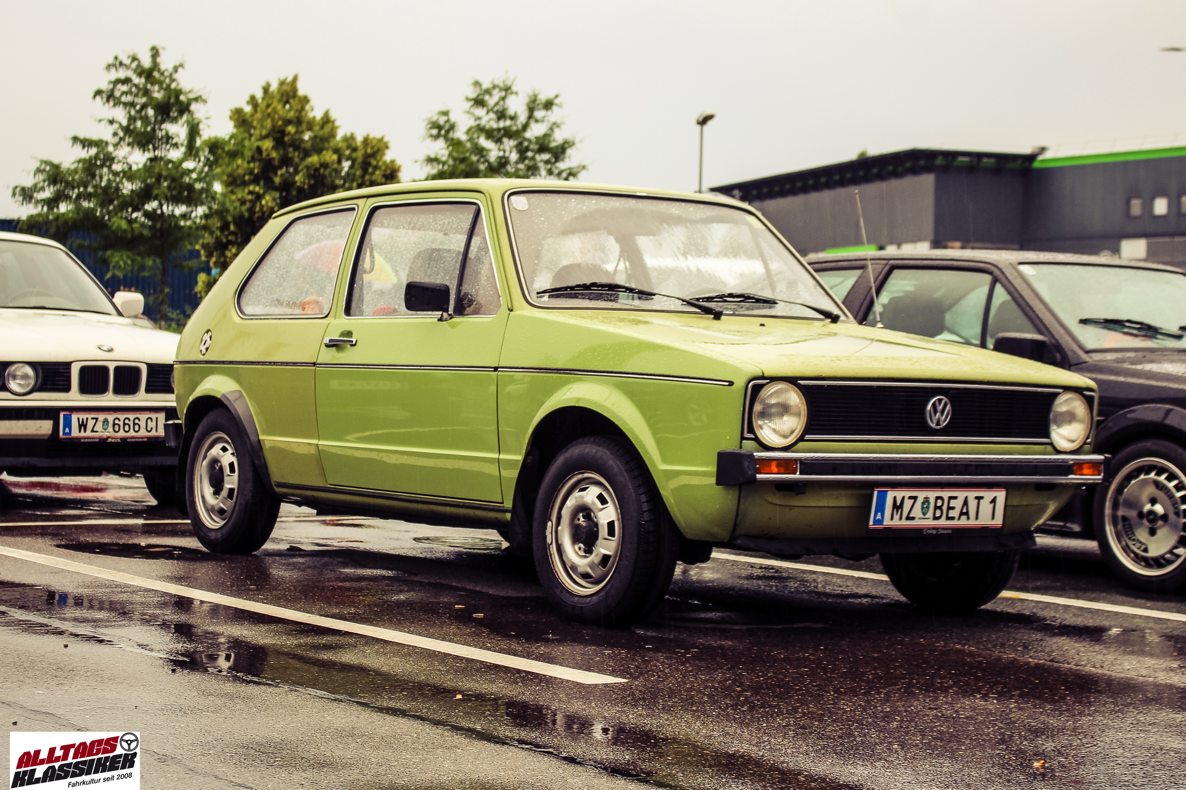 Aber gestandene Piloten von Oldtimern und Youngtimern hält ein wenig feuchte Luft nicht davon ab, am ersten Samstag des Monats nach Graz ins Center West zu cruisen. Regen hin oder her! Mit einer guten Regenjacke, einer Kappe, Regenschirm und wasserdichten Schuhen, konnte man gut stundenlang den Abend trotzdem draußen bei den Oldies verbringen.