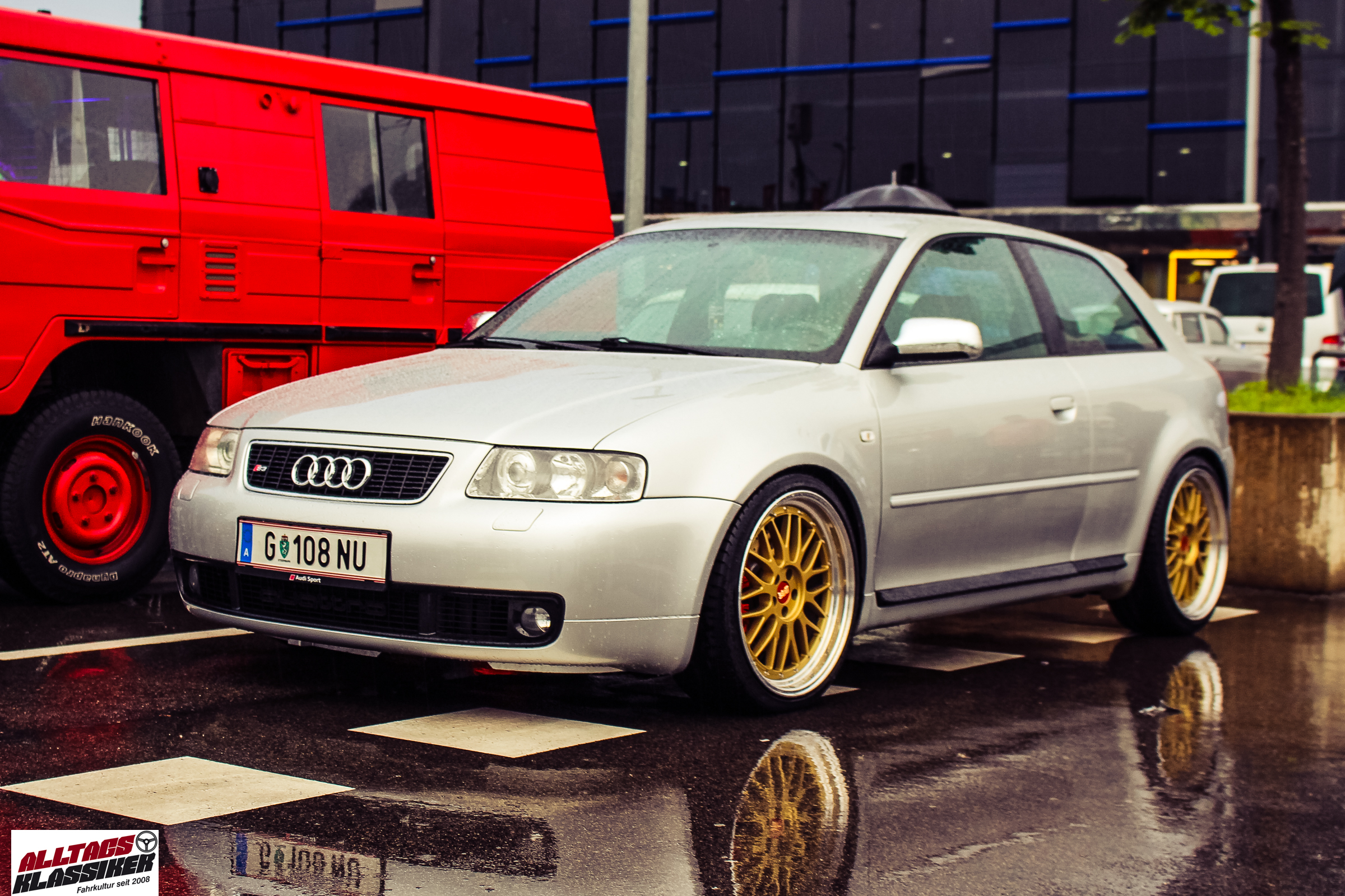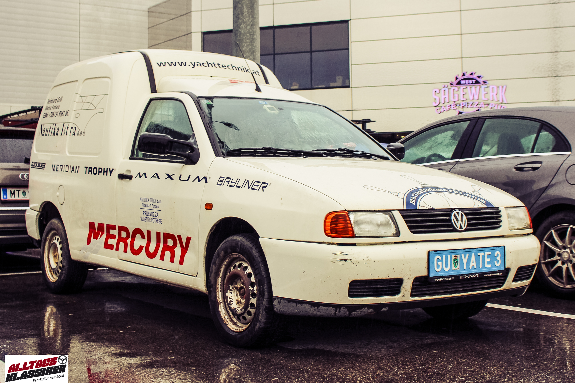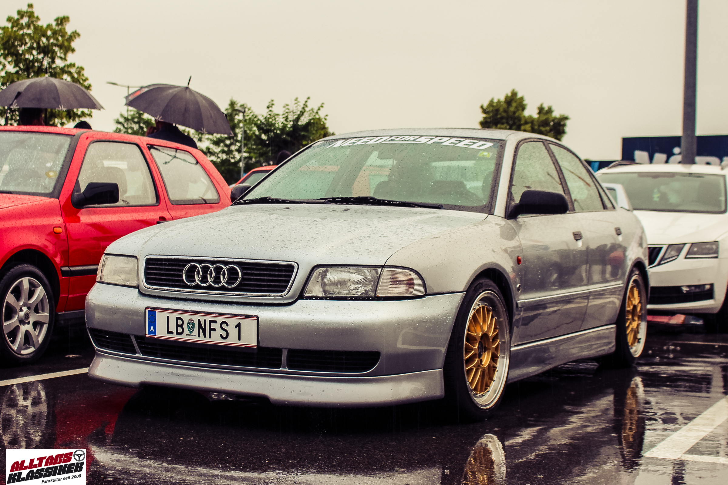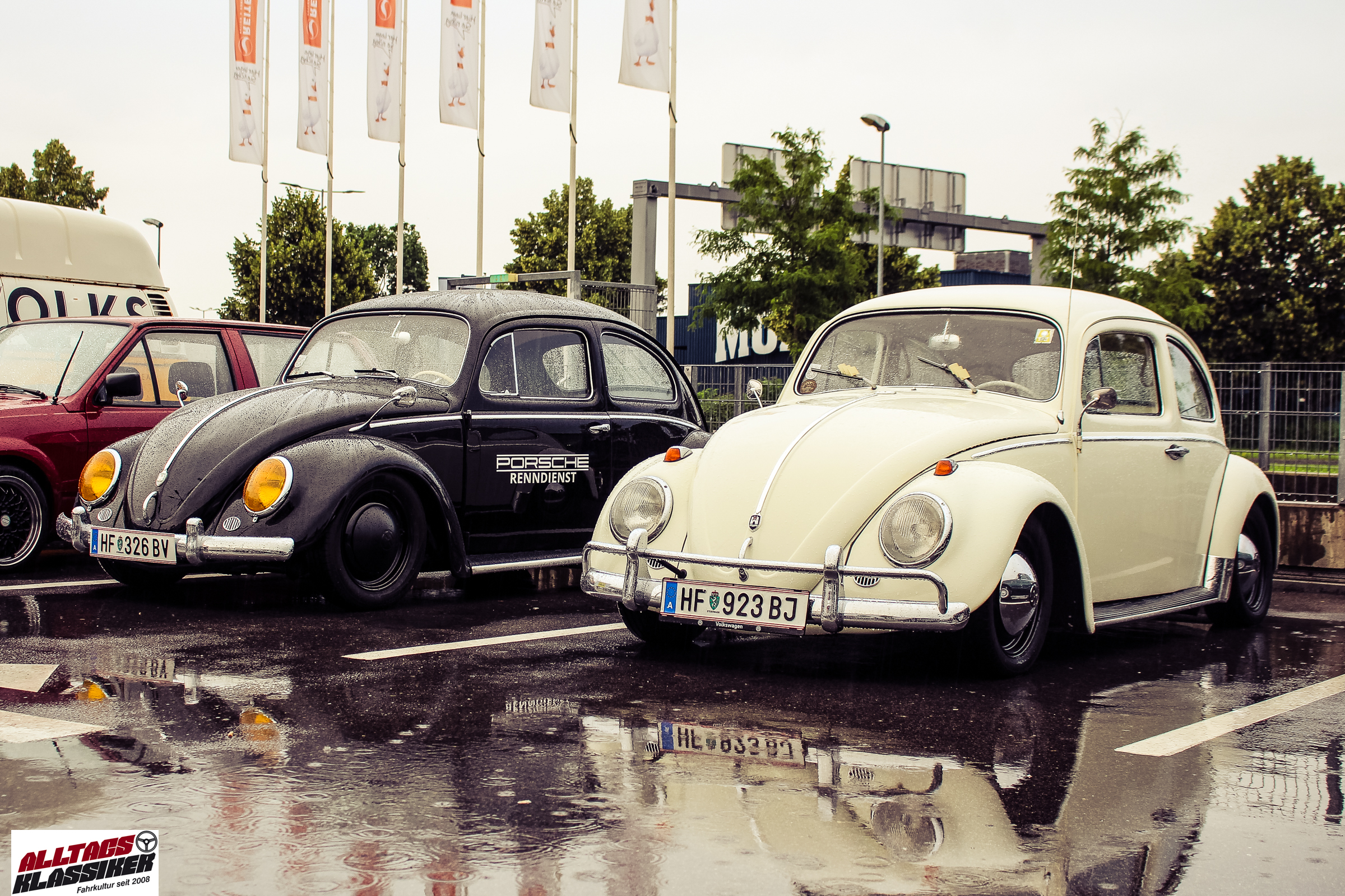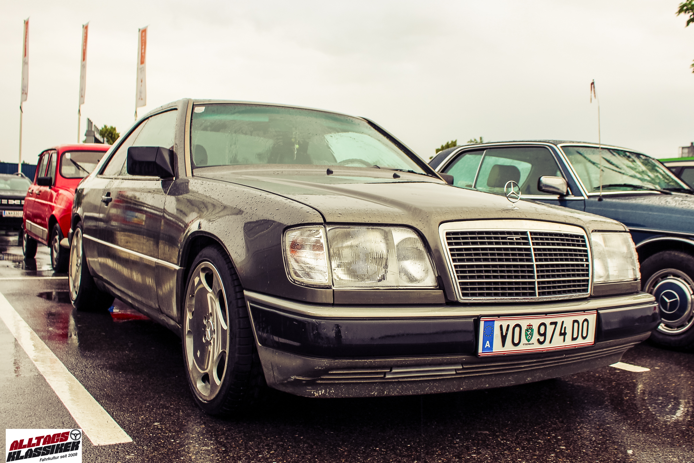 Aber gestandene Piloten von Oldtimern und Youngtimern hält ein wenig feuchte Luft nicht davon ab, am ersten Samstag des Monats nach Graz ins Center West zu cruisen. Regen hin oder her! Mit einer guten Regenjacke, einer Kappe, Regenschirm und wasserdichten Schuhen, konnte man gut stundenlang den Abend trotzdem draußen bei den Oldies verbringen.