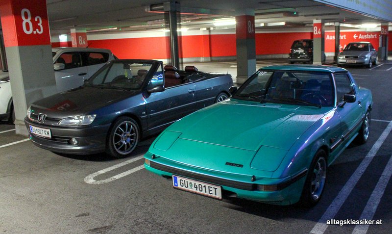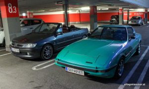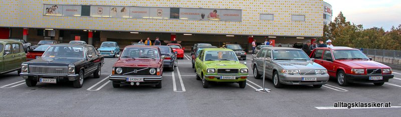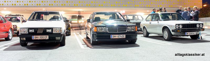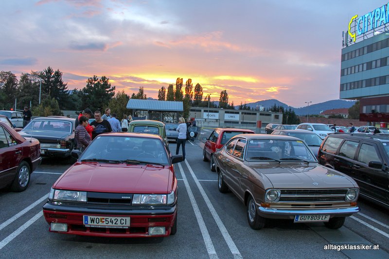 Ein bunter Reigen an den verschiedensten Marken und Modelle fand sich wieder am Parkdeck B4 des Citypark ein. Modelle die einerseits gefühlt zu jung sind wie ein Opel Omega B Caravan, ein Alfa Spider der Baureihe 916 aber doch schon die 20 Jahre Youngtimerhürde übersprungen haben, aber auch Youngtimer die man kaum auf Treffen findet wie ein Nissan Sunny Coupe, Fiat Uno Turbo i.e. und VW Polo 2F.