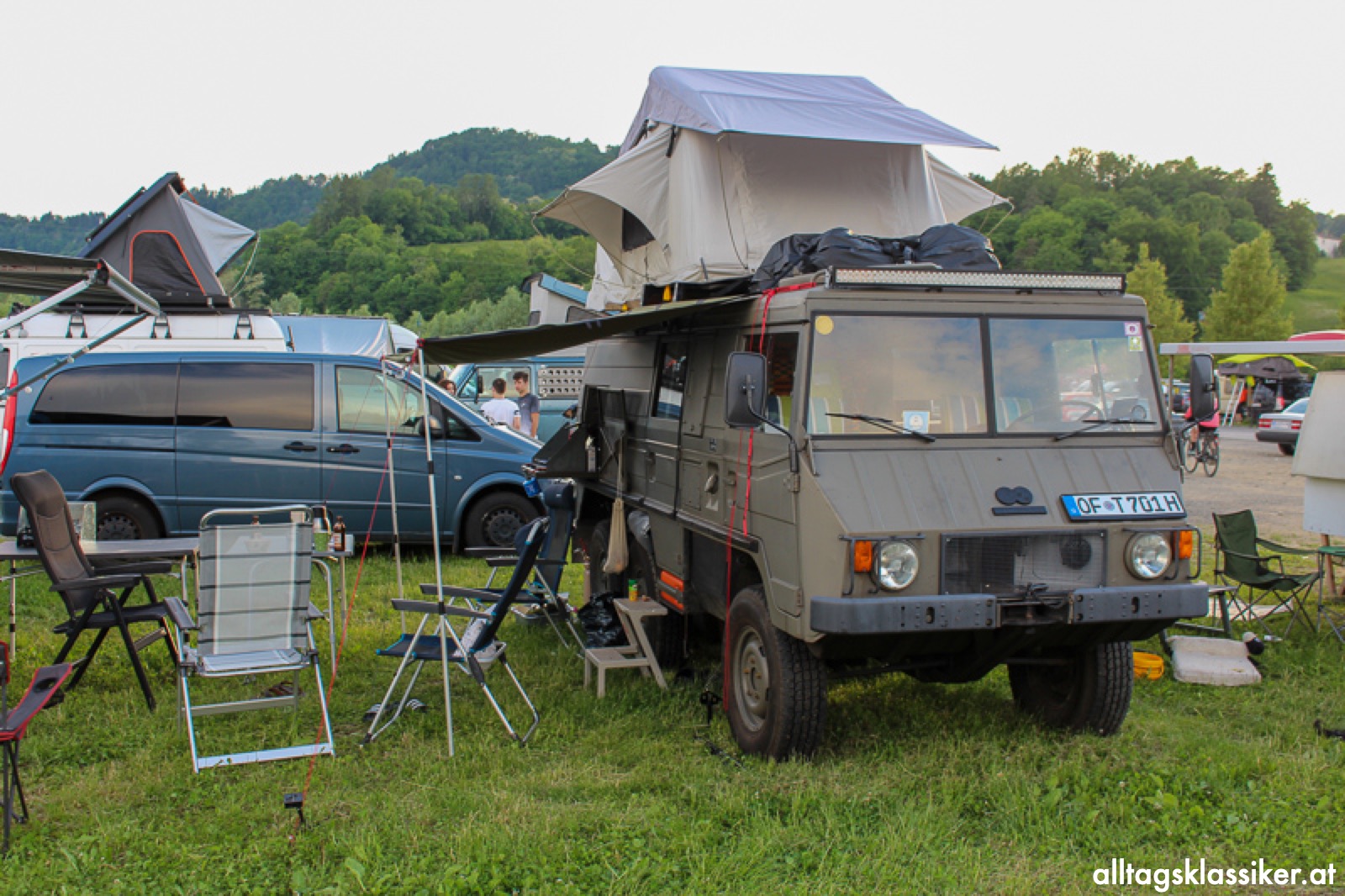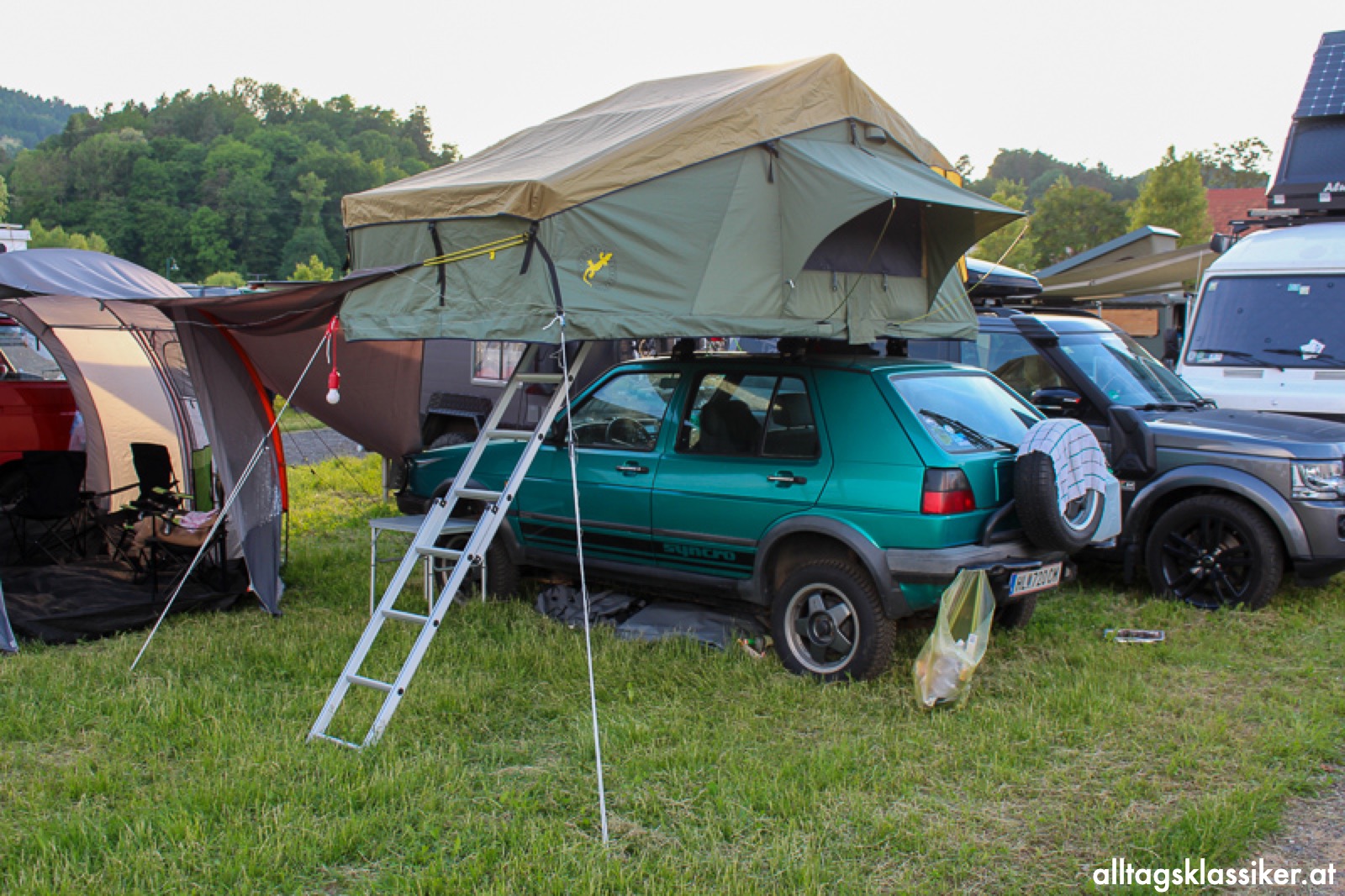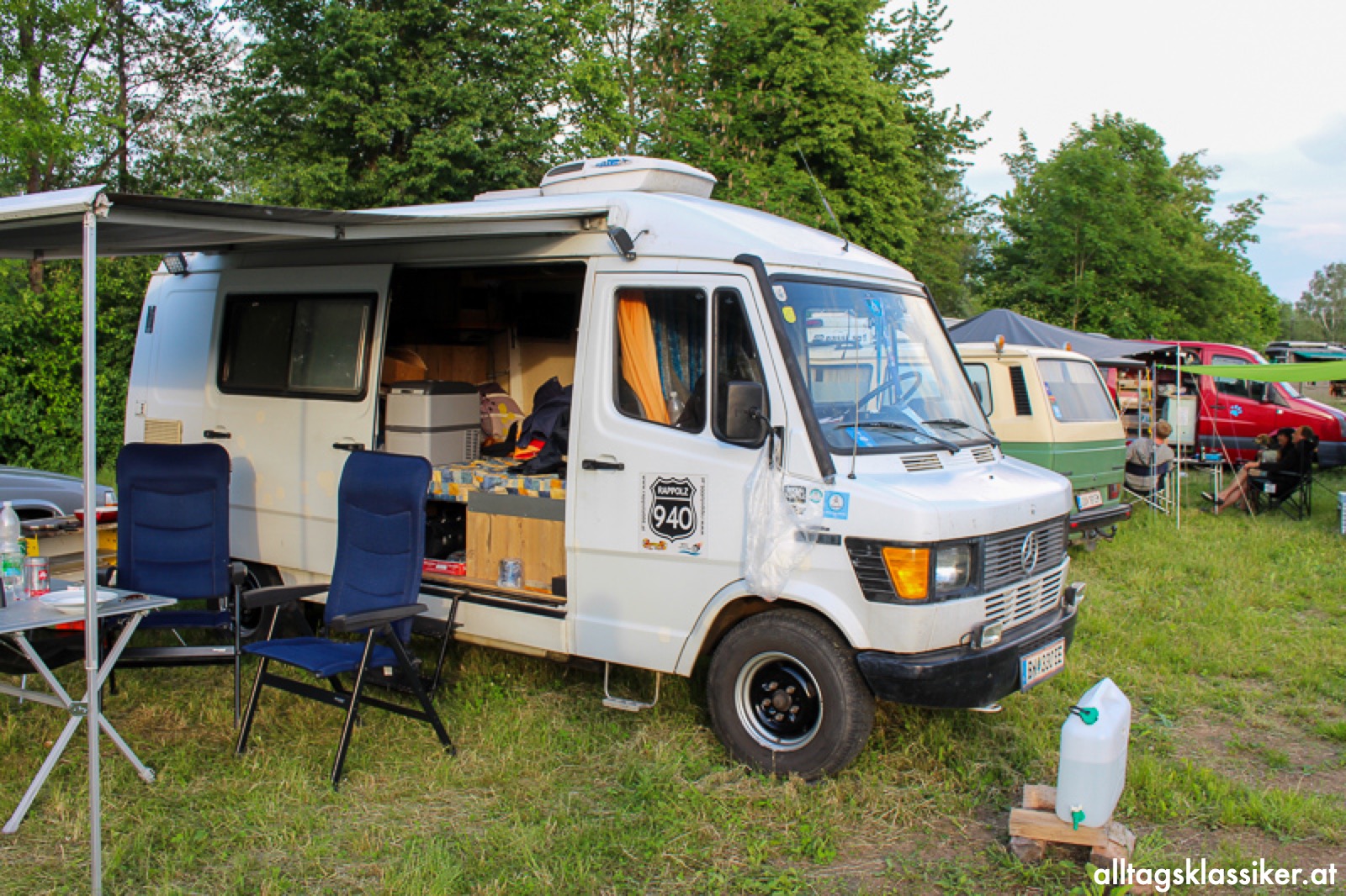 Der Organisator der Van Days, Felix Rupitsch, den ich im Frühjahr kennenlernen durfte, hat neben den Van Days noch diverse Sportveranstaltungen in seinem Portfolio. Die Sympathie war wohl beiderseits gegeben und so wurde der Wunsch nach einer Kooperation wach. So wurde das Alltagsklassiker Saturday Night Cruising @ Van Days geboren. Ein interesiertes beschnuppern der Alltagsklassiker mit den Reisemobilbesitzern blieb nicht aus, faszinierend womit die Vanlifer so alles die Welt erkunden. Alles dabei vom Elektroauto und Country Golf mit Dachzelt, diversen Bussen, Pickups, bis hin zu Expeditionsfahrzeugen auf LKW Basis. Impressionen vom Rundgang gibt es hier zu sehen, mit dem Fokus auf reiferen Reisemobilen.