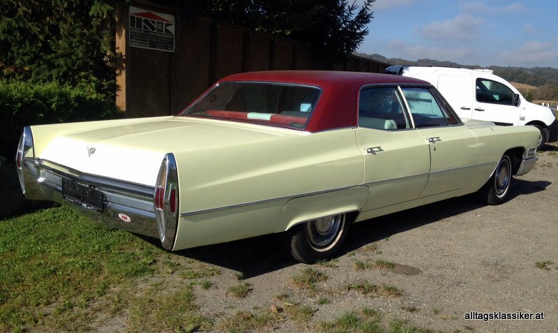 deswegen wurde auch dieser bei der oldskool garage in kirchbach zum verkauf stehende vanillegelbe cadillac eldorado sedan seville de ville auf gasbetrieb umgebaut.