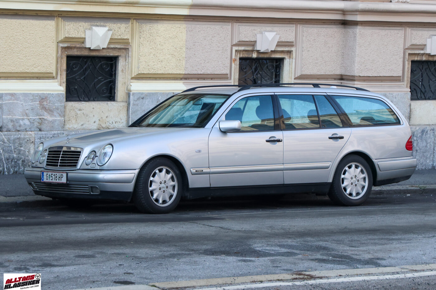 Zwei Gassen weiter: etwas Solides aus Deutschland – naja, wobei „solide“ beim W210er auch so eine Sache ist. Dieser klassisch silberne Mercedes-Benz S210 scheint aber eines der besseren Exemplare zu sein, denn aus ein paar Metern Entfernung wirkt er sehr gepflegt und gut erhalten.