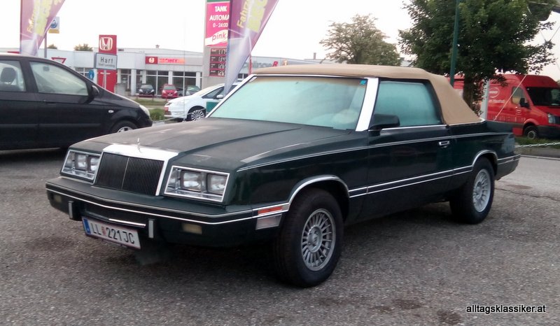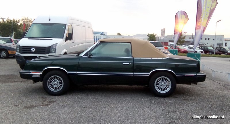heute morgen war es ein chrysler le baron convertible der mein auge erfreute. nun gut erfreut ist wohl etwas hoch gegriffen, den wirklich schön ist so ein le baron aus der zweiten modellgeneration nicht, eher schräg. trotzdem hat er durch seine geringe verbreitung hierzulande seinen reiz. technisch war der als limousine, kombi, coupe und cabriolet von 1981 bis 1987 erhältliche le baron eher hausmannskost: frontantrieb, vierzylindermotoren mit und ohne turboaufladung, verpackt in ein recht biederes äußeres, da kennt man reizvolleres aus den staaten. dabei war der le baron convertible das erste amerikanische seriencabriolet seit 1976, seit der einstellung des cadillac eldorado.