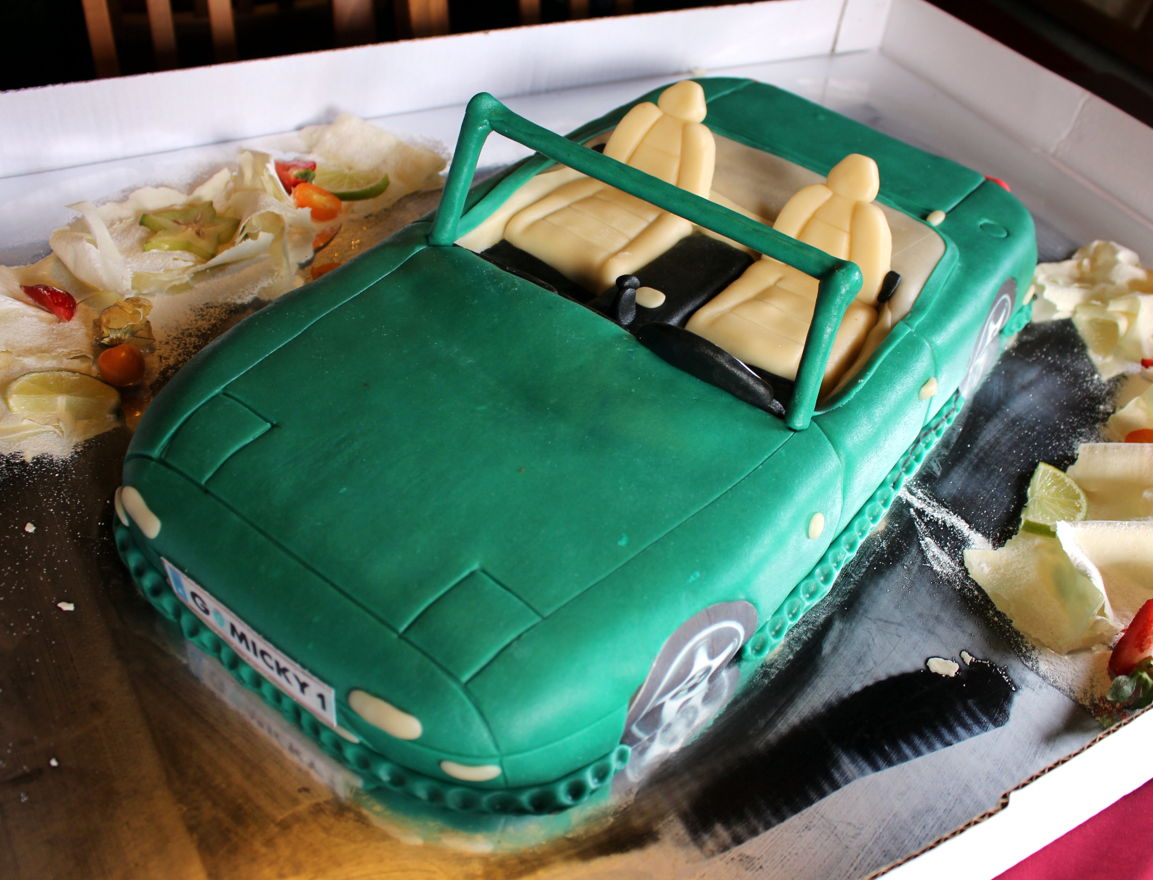 aber auch meine leidenschaft für den mazda mx-5 und süsses wurde bei den geschenken berücksichtigt und mit einer mx-5 torte gewürdigt, die meinem mx-5 na sehr detailgetreu nachempfunden war.