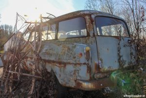 Aber was interessieren mich die Gerüchte! Gerüchte die ich nicht auf deren Wahrheitsgehalt überprüfen will und kann, sie sind mir schlichtweg egal. Mich interessieren in erster Linie die zwei alten Karren, die dort rumstehen! Die habe ich schon vor Wochen von der Autobahn aus entdeckt, den Auslöser dann dort mal vorbeizusehen hat ein Facebookfan gedrückt, der mir ein Bild aus sicherer Entfernung geschickt hat. Damit war mein Interesse dann endgültig geweckt.