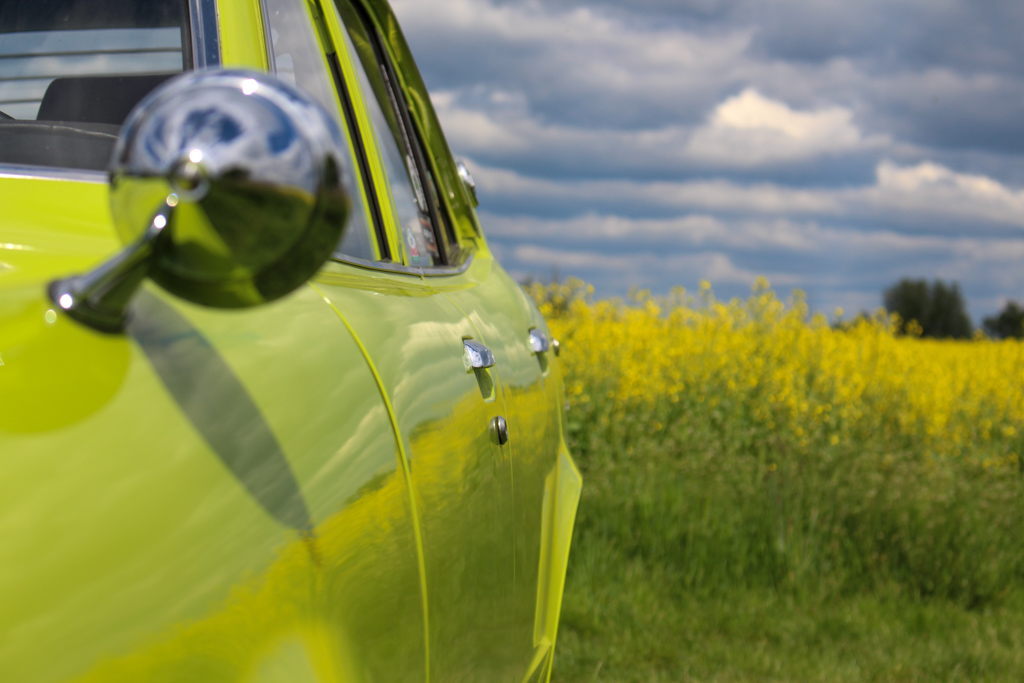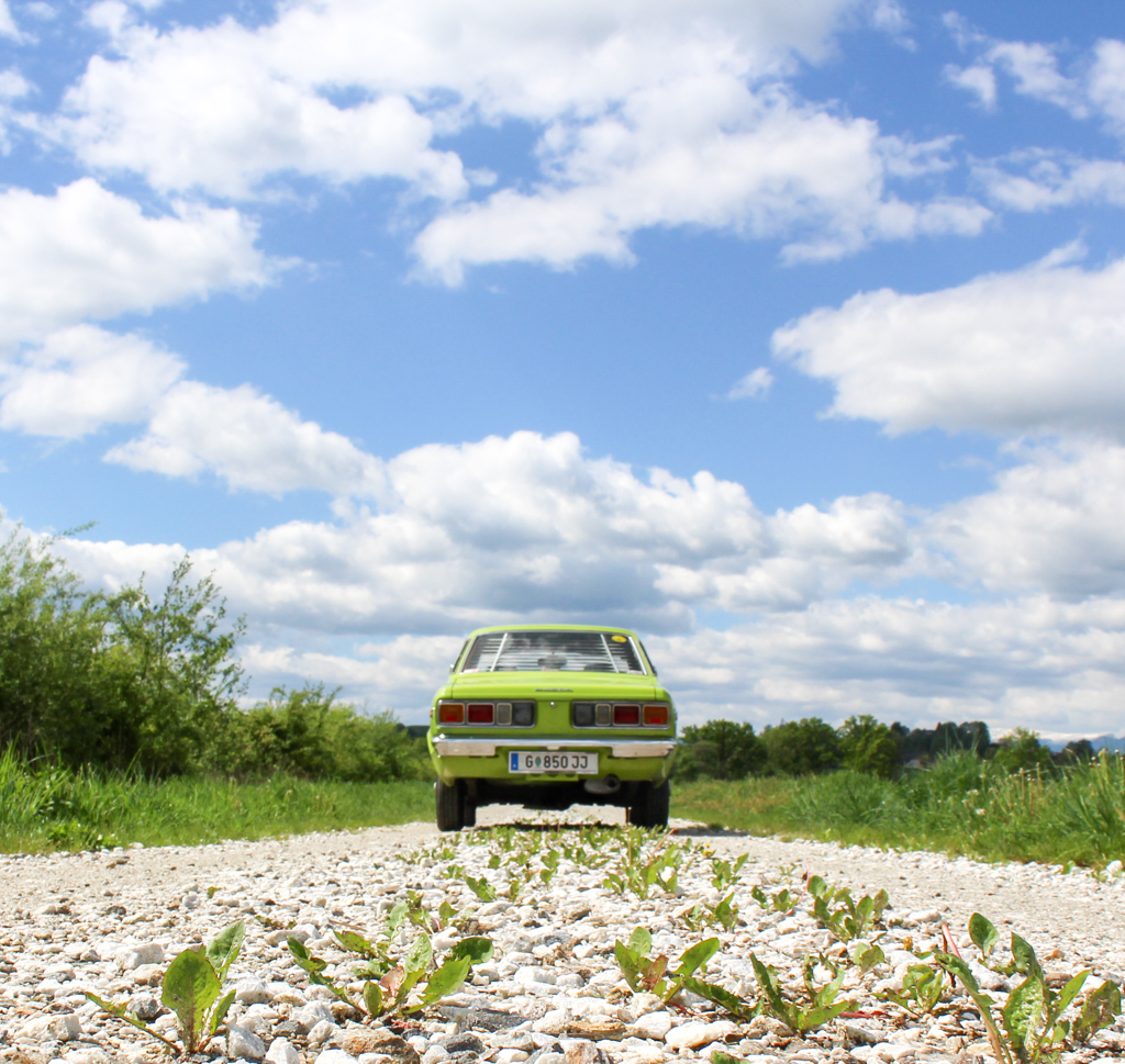 So ging es raus aus Graz um den Motor behutsam warm zufahren und die müden alten Autoknochen etwas zu lockern. Es war auch einlangsames rantasten an die reife Technik wo alles noch manuell funktioniert. Weg von der Vollkasko-Mentalität, ein entschleunigen auf der Straße, wo man abseits der Straße auch noch was wahrnimmt. So sind wir südlich von Graz auf einige blühende Rapsfelder abseits der viel befahrenen Bundestraßen gestoßen, die zu einem Fotostopp direkt einluden. Sonst gibt es vorerst nicht viel zu erzählen. Die Erbse lenkt, bremst, fährt – mehr soll sie auch nicht machen, ausser bunte Fahrfreude in die sonst anthrazitfärbige Alltagswelt zu bringen.