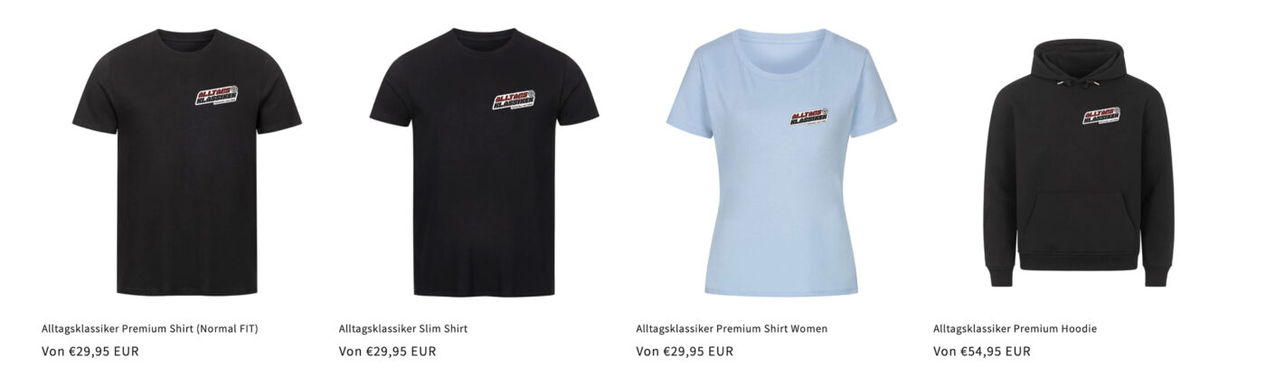 Die Durststrecke ist vorbei, es gibt ab sofort keine Entschuldigung mehr, nicht mehr gut angezogen zum Alltagsklassiker Saturday Night Cruising zu kommen! Denn es gibt wieder die beliebten T-Shirts mit dem Alltagsklassiker-Logo darauf.