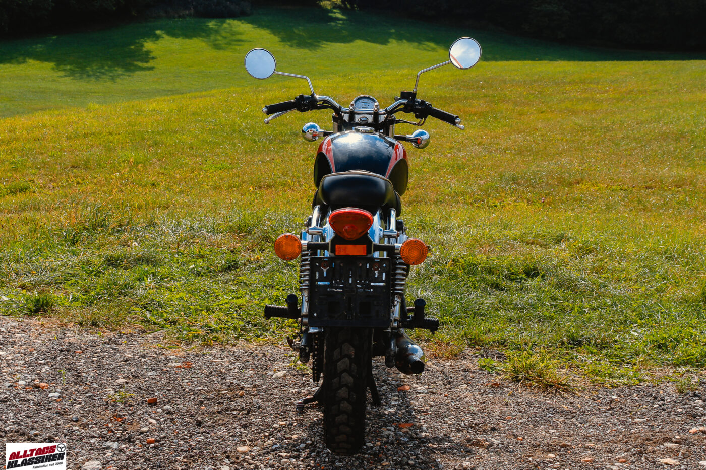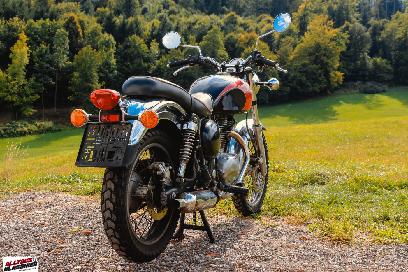 Und doch war es kein nostalgischer Rückgriff, sondern ein durchdachtes Konzept: Die Estrella sollte ein Motorrad für Genießer sein. Für all jene Biker, die keine 150 PS brauchten, sondern einfach den Fahrtwind, die Landstraße und das Gefühl von Freiheit. Fürs motorradwandern oder mäandern durch die Vorstadt reichten auch 17 PS aus einem Viertelliter Hubraum – ideal auch für Wiedereinsteiger oder Einsteiger in die motorisierte Zweiradwelt. Und ja, auch der Begriff „Frauenmotorrad“ fällt immer wieder. Aber da steh ich drüber als Besitzer eines Friseusenferraris MX-5. 😉