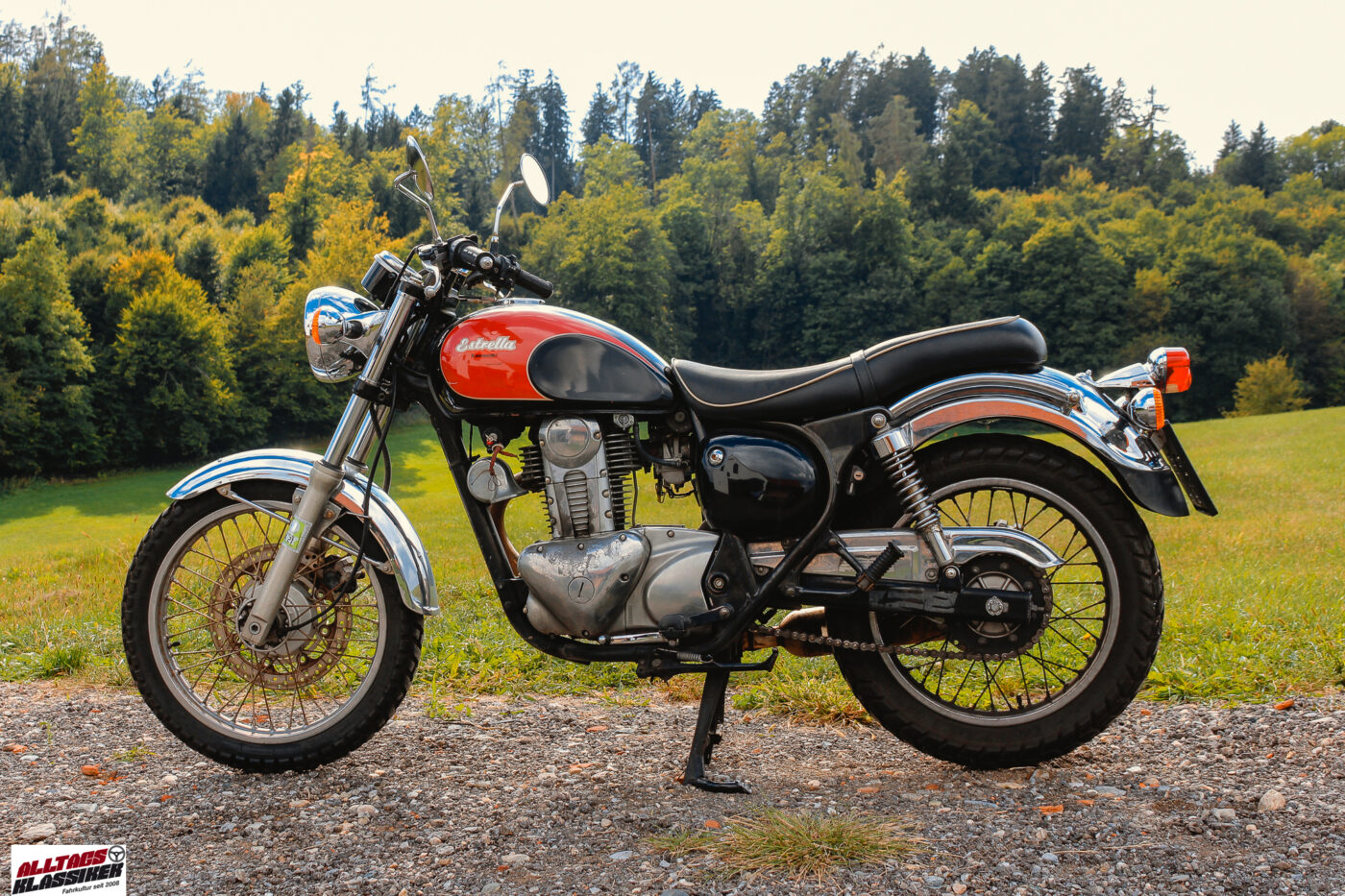 Viele Estrella-Besitzer in Österreich nutzten sie für genussvolle Ausfahrten am Wochenende – ideal für Touren in die Südsteiermark, den Wienerwald oder ins Salzkammergut. Das Motorrad hatte etwas Entschleunigendes: Man fuhr nicht, um anzukommen, sondern um unterwegs zu sein.