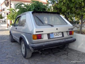Früher 1er VW Golf GTI. irgendwann zwischen 1976 und 1978 vom Wolfsburger Band gelaufen, jetzt in Methoni daheim.