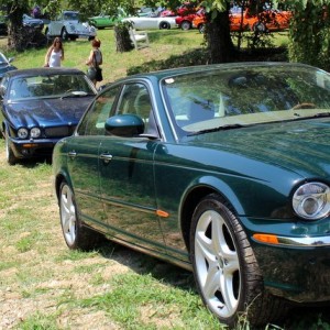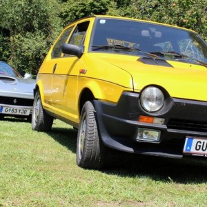 nachdem der hausherr und sein umfeld sehr anglophil angehaucht ist, waren auch dementsprechend viele fahrzeuge von der insel vertreten. aber auch sonst konnte sich dieses kleine, aber umso feinere treffen sehen lassen: hochkarätiges aus detroit, maranello, zuffenhausen und hethel usw. war zahlreich erschienen. und da fuhren richtige zuckerl auf, fahrzeuge, die man auf den gängigen oldtimertreffen für gewöhnlich nicht zu sehen bekommt. da kommt man sich mit seinem brot- und butterauto aus hiroshima auf einmal underdressed vor. aber zur vorgabe je seltener, desto besser hat die erbse dann doch wieder ganz gut zu diesen vielen hochpreisklassikern gepasst.