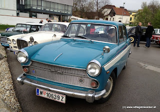 am parkplatz vor dem museum sammelt sich langsam das starterfeld, alles arrivierte oldtimer im bestzustand, fuselfrei und antiseptisch, einzig ein austin cambridge mit gebrauchsspuren und teils mattem chrom sticht aus der homogenen masse an hochpreisoldtimern hervor und ist somit unser liebling des tages. das ganze wird untermalt von der jugendradetzkykapelle heldenberg…..