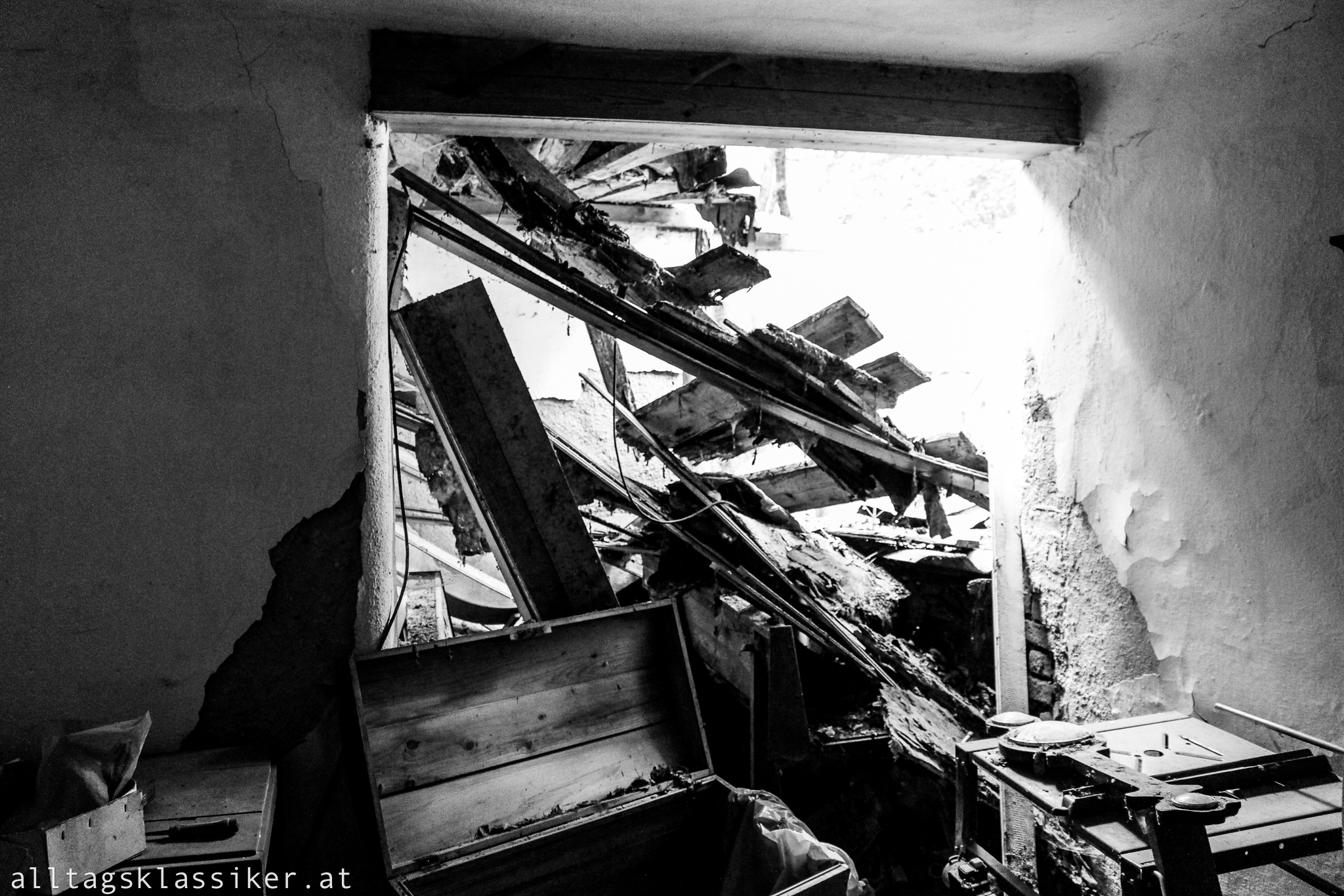 Mir geht es bei diesen Abenteuern in erster Linie darum, das Gesehene mittels Bildern festzuhalten. Ein wenig Nervenkitzel ist immer dabei, denn es wäre nicht das erste Objekt, wo man nicht weiß, was einen erwartet. So manches Gebäude oder Hausabschnitt hat sich als akut einsturzgefährdet herausgestellt.