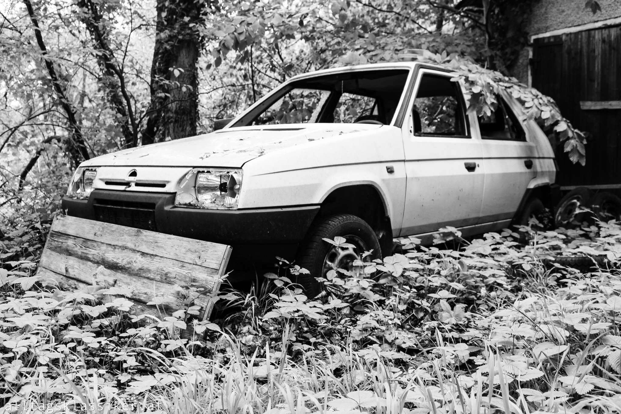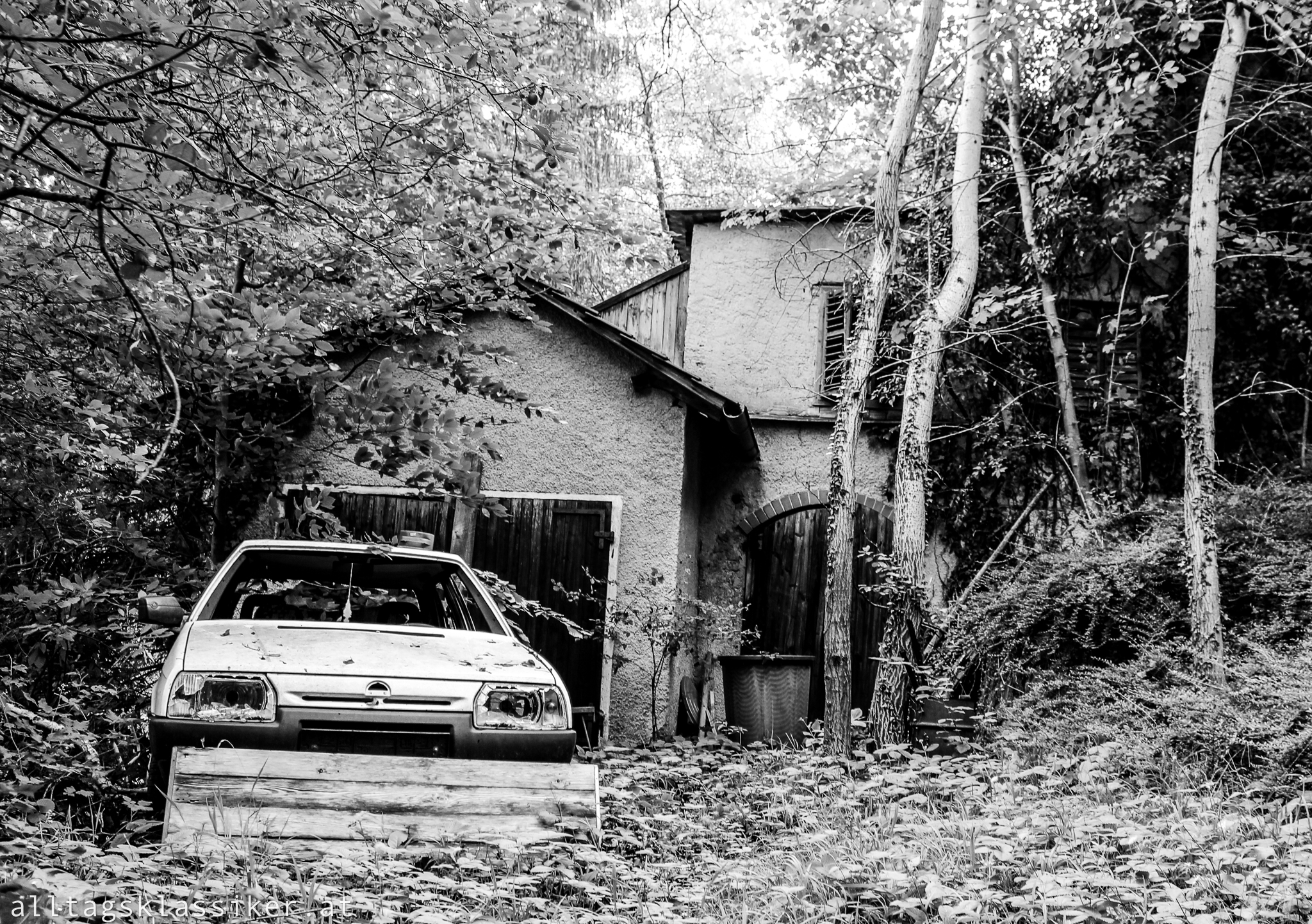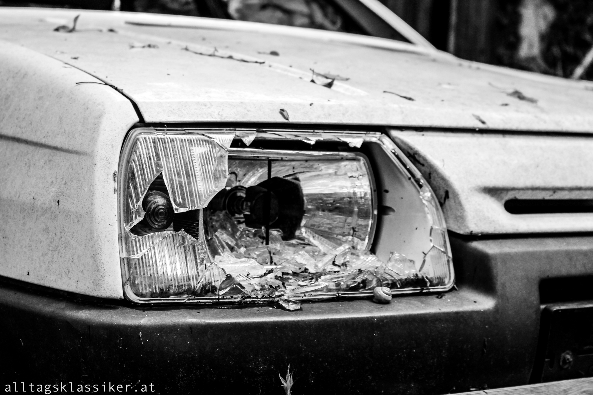 Nicht unweit von Graz, an einer kleinen Gemeindestraße, die durch einen Wald führt, steht direkt an der Straße das Haus des Ingenieurs. Ein weit offenes Gartentor lädt hier dazu ein, sich ein wenig auf dem verwilderten Areal umzusehen. In der Einfahrt steht ein weißer Skoda Favorit LX. Dem wurde von Vandalen jeglicher Würde beraubt. Eingeschlagene Scheiben, zerstörte Scheinwerfer und Rückleuchten, der Innenraum wurde diverser Teile beraubt. Einzig ein Duftbaum, Geschmacksrichtung Wilde Rose, hält stoisch seine Stellung.