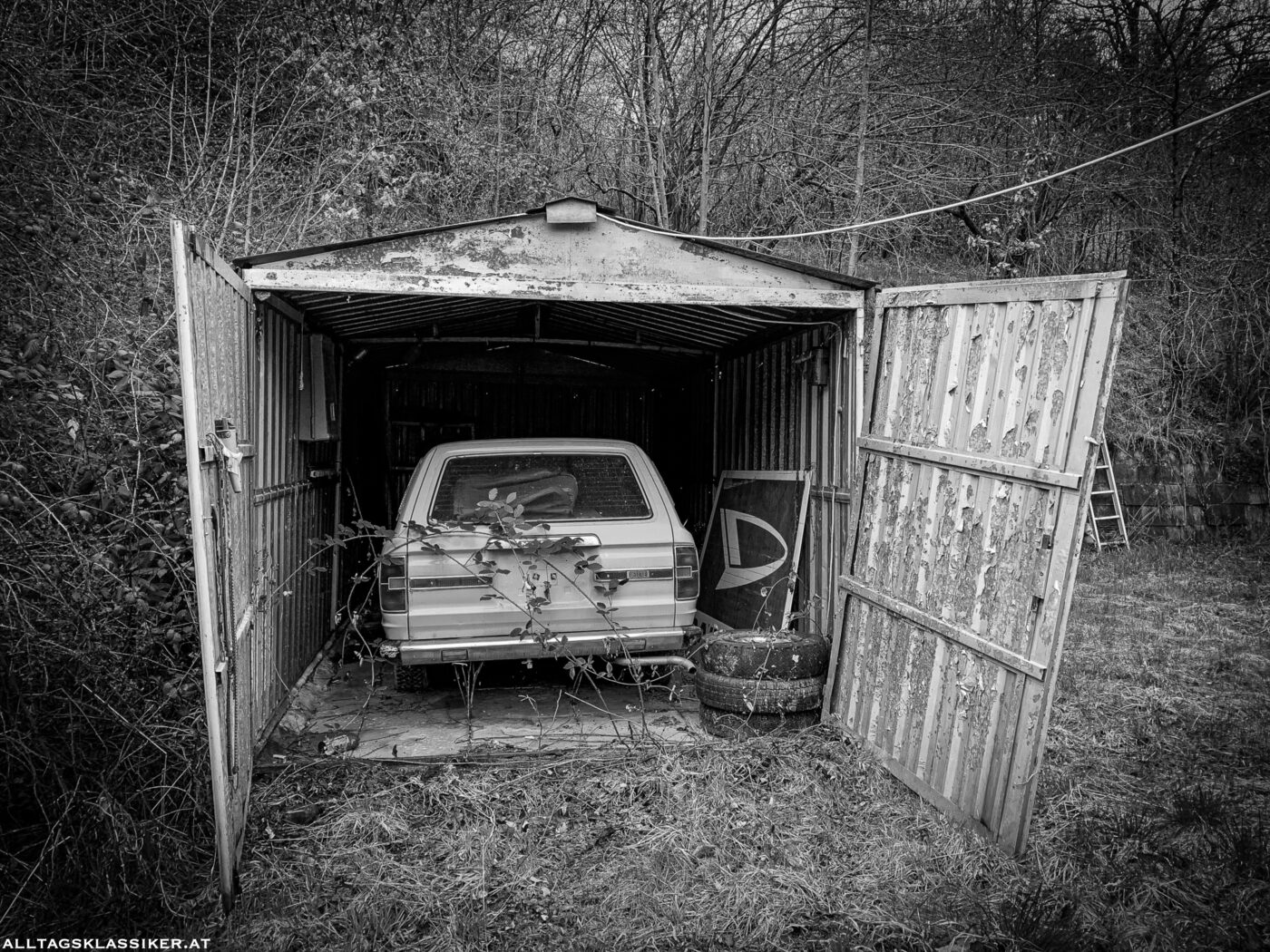 So kam der Kombi erst mal nach Hause und stand sich die Reifen weiter platt. Anfangs vor der Mietgarage im Süden von Graz, wo er ab und an weggeschoben wurde, wenn ich mit der Erbse eine Runde drehte und er im Weg stand. Später landete der MX-5 mit erhitztem Kopf hinter dem doppelflügeligen Holztor und wartete auf seine Wiedererweckung. Aber das ist eine andere Geschichte.