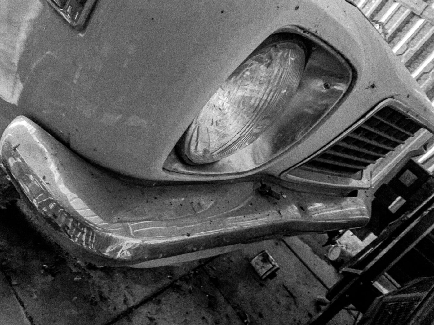 Im Laufe der Jahre habe ich einige Ersatzteile zusammen getragen, unter anderem neue Stoßdämpfer und eine unverbeulte Frontstoßstange aus norddeutscher Lagerhaltung eines Händlers. Da war eine Restauration immer noch eine Option.