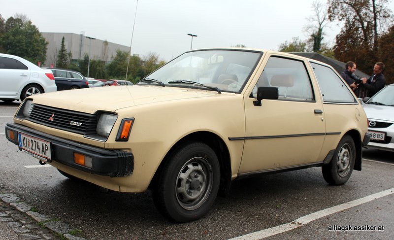 die erste generation des mitsubishi colt die in europa vertrieben wurde trug den modellcode a150. zwischen 1978 und 1984 wurde er als drei- und fünftürige schrägheckkarosserie angeboten, als stufenheck hörte er auf den namen lancer f. topmodell des mitsubishimodells der golfklasse war der turbo, der aus 1,4 litern hubraum 105ps generierte.