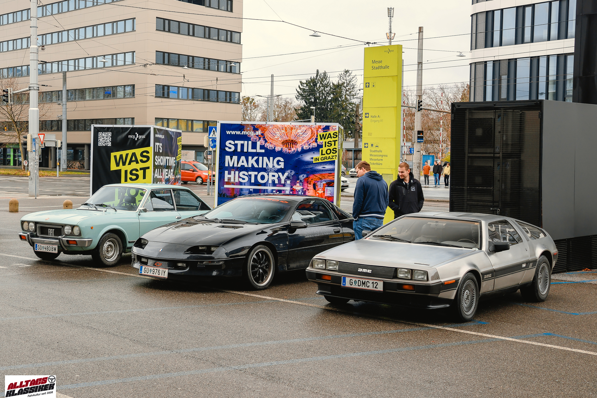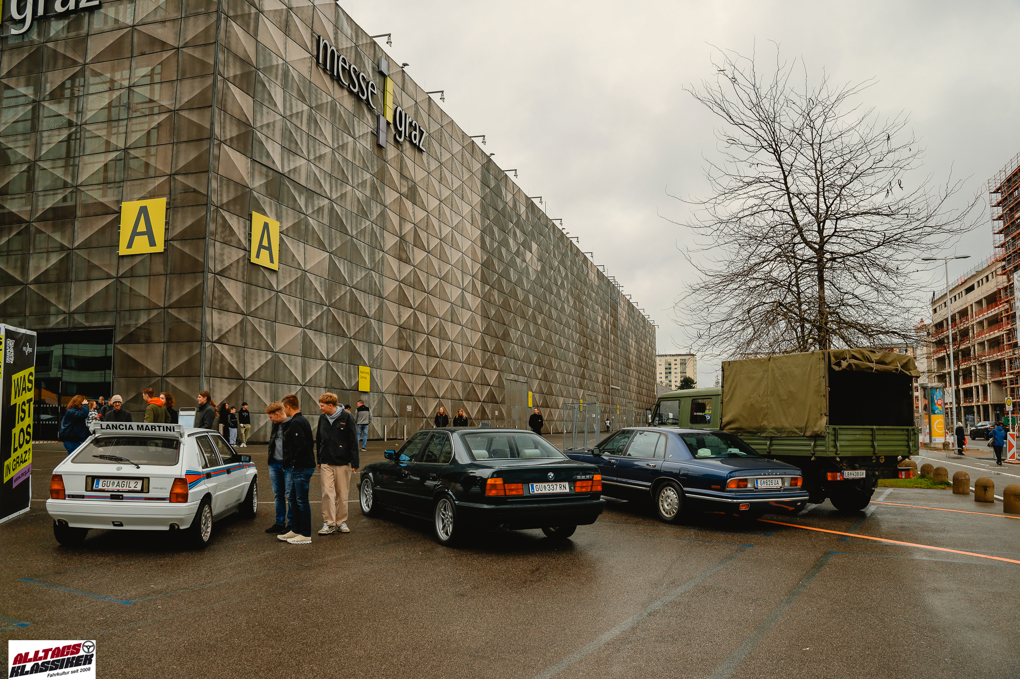Die Einladung der Messe Graz nehmen wir immer gerne an. Einerseits, weil wir unsere Klassiker stilvoll präsentieren können, andererseits, weil es für uns Petrolheads immer eine Freude ist, in die Welt der aktuellen und historischen Technik einzutauchen.