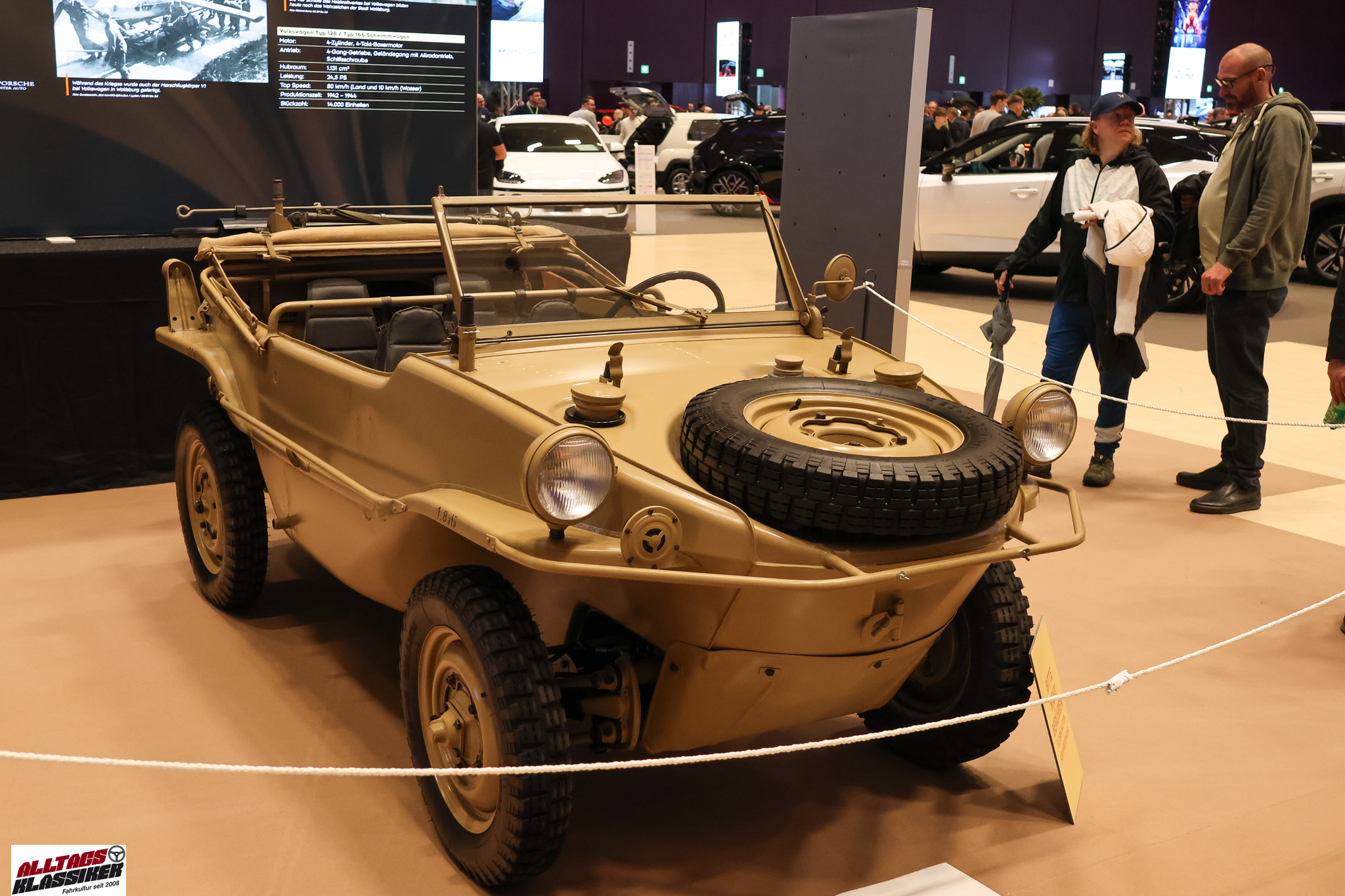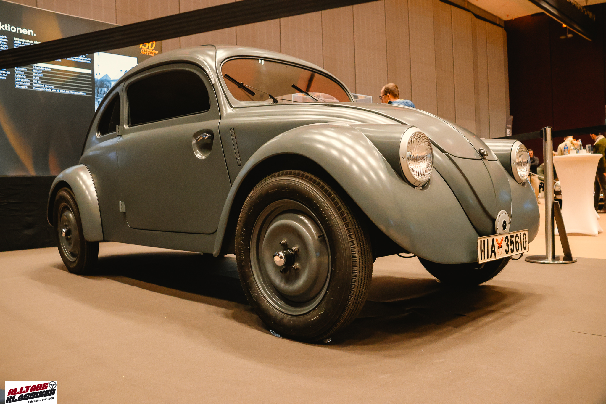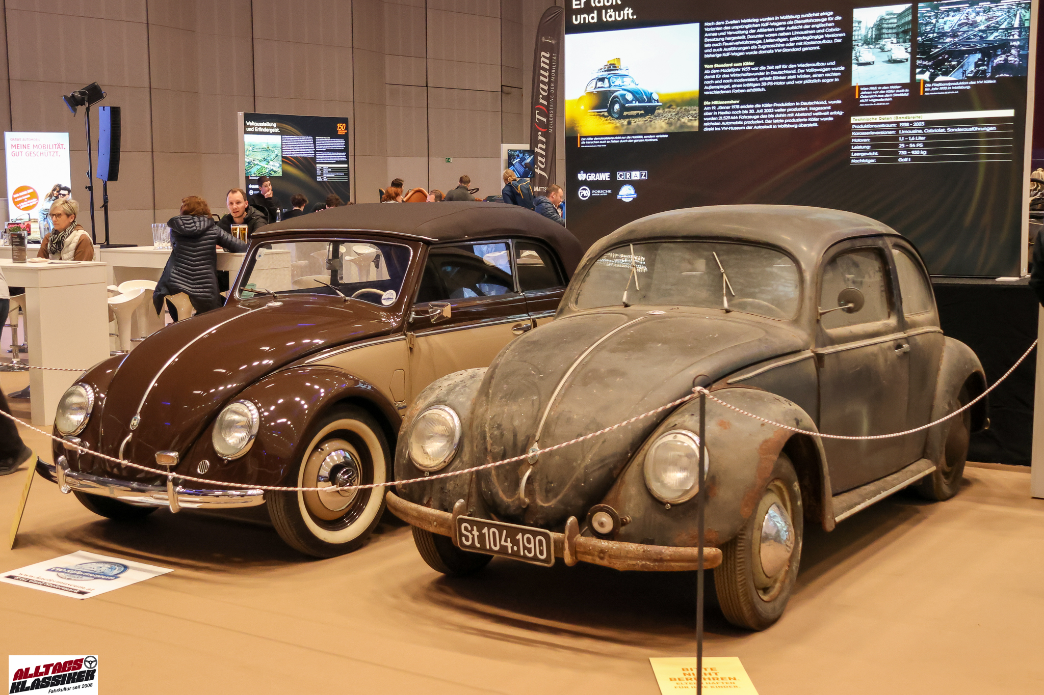 Natürlich durfte auch der VW Käfer nicht fehlen. Die Palette reichte von einem frisch rekonstruierten Käfer-Prototyp W30 (Fahrgestellnummer 26) aus der Volkswagen-Sammlung Grundmann, Schwimmwagen, über einen herrlich patinierten 49er Brezel-Käfer-Scheunenfund, bis hin zum Cabriolet im Bestzustand.