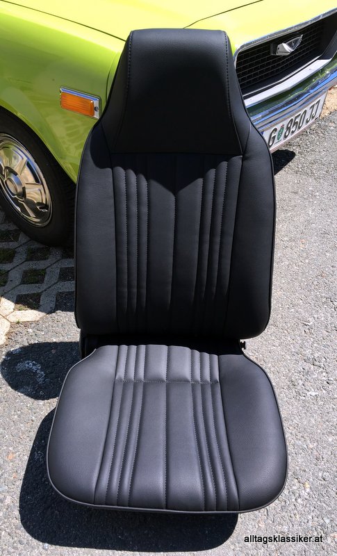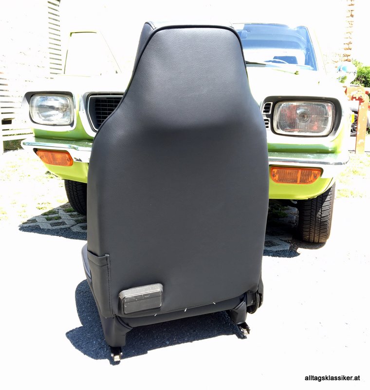 Das lange warten hat endlich ein Ende: Die frisch bezogenen Sitzgelegenheiten in meinem Mazda 818 Sedan de Luxe, bekannter als Erbse sind zurück vom Sattler. Der hat sehr gute Arbeit geleistet und die Erbse innen wieder in einen Traum aus schwarzem Kunstleder verwandelt. Die Bezüge der beiden Sitze, der Rückbank und deren Lehne wurden nach Vorlage des originalen Bezuges fachmännisch vom Sattler meines Vertrauens abgezogen und nachgeschneidert. das Kunstleder hat wie schon das originale eine leichte Struktur, ist aber matt und nicht mehr glänzend. Der Unterbau wurde neu gepolstert und mit dem frischen Kunstleder bezogen.