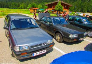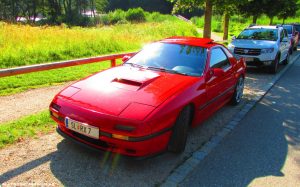 Ein kleines Highlight war, als einer der Teilnehmer am Parkplatz die Vierradlenkung seines 626 GD demonstrierte. Mazda hatte schon einige technische Leckerbissen im Programm und ist ja nach wie vor der Hersteller, der die meisten Wankelmotor-PKW gebaut hat. Nicht nur der RX7, als leistbarer Volkssportler, leistete einen großen Beitrag dazu.