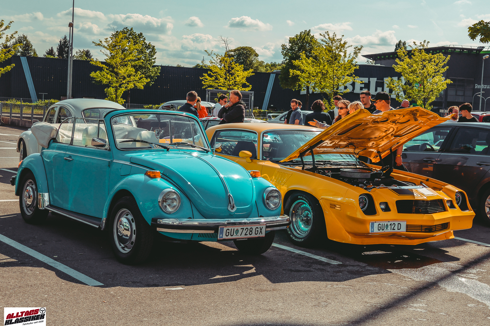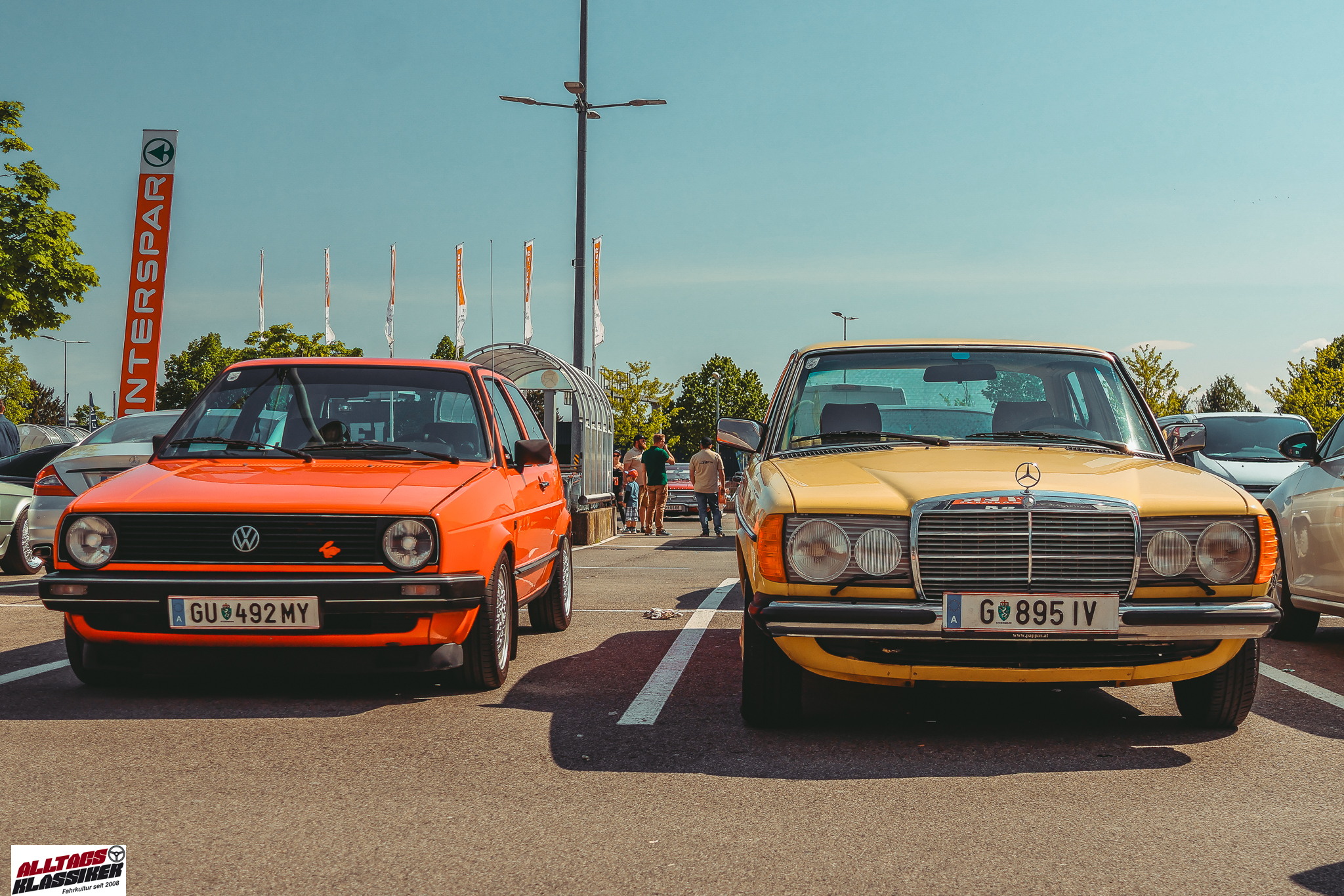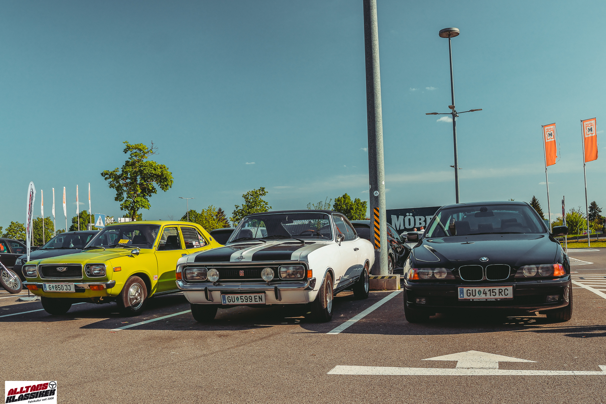 Ein gut gefüllter Parkplatz voller Klassiker und Youngtimer bei frühsommerlichen Temperaturen und Sonnenschein rechtfertigten dieses Bonus-Alltagsklassiker-Treffen an einem Sonntag im Grazer Westen voll und ganz.